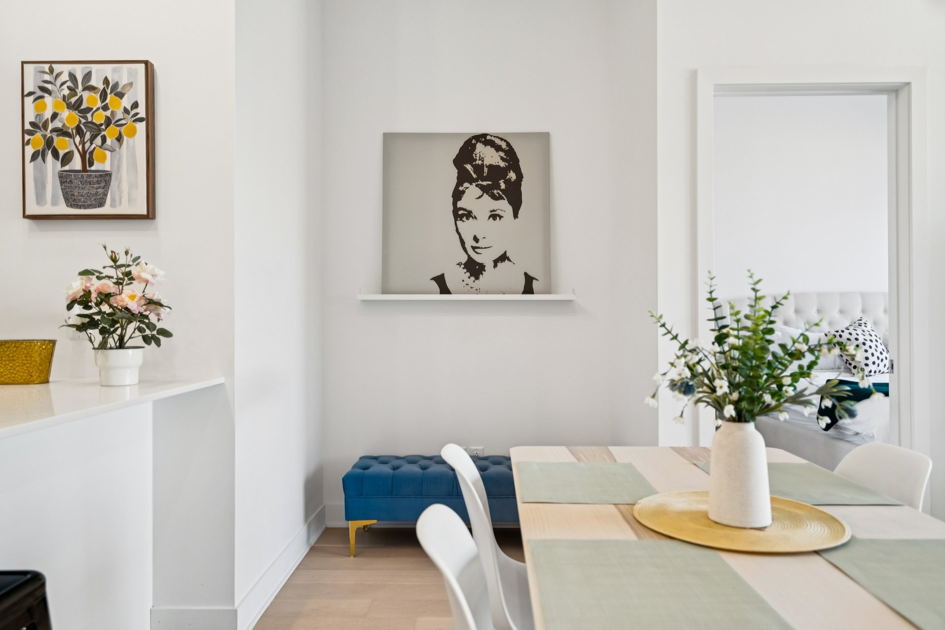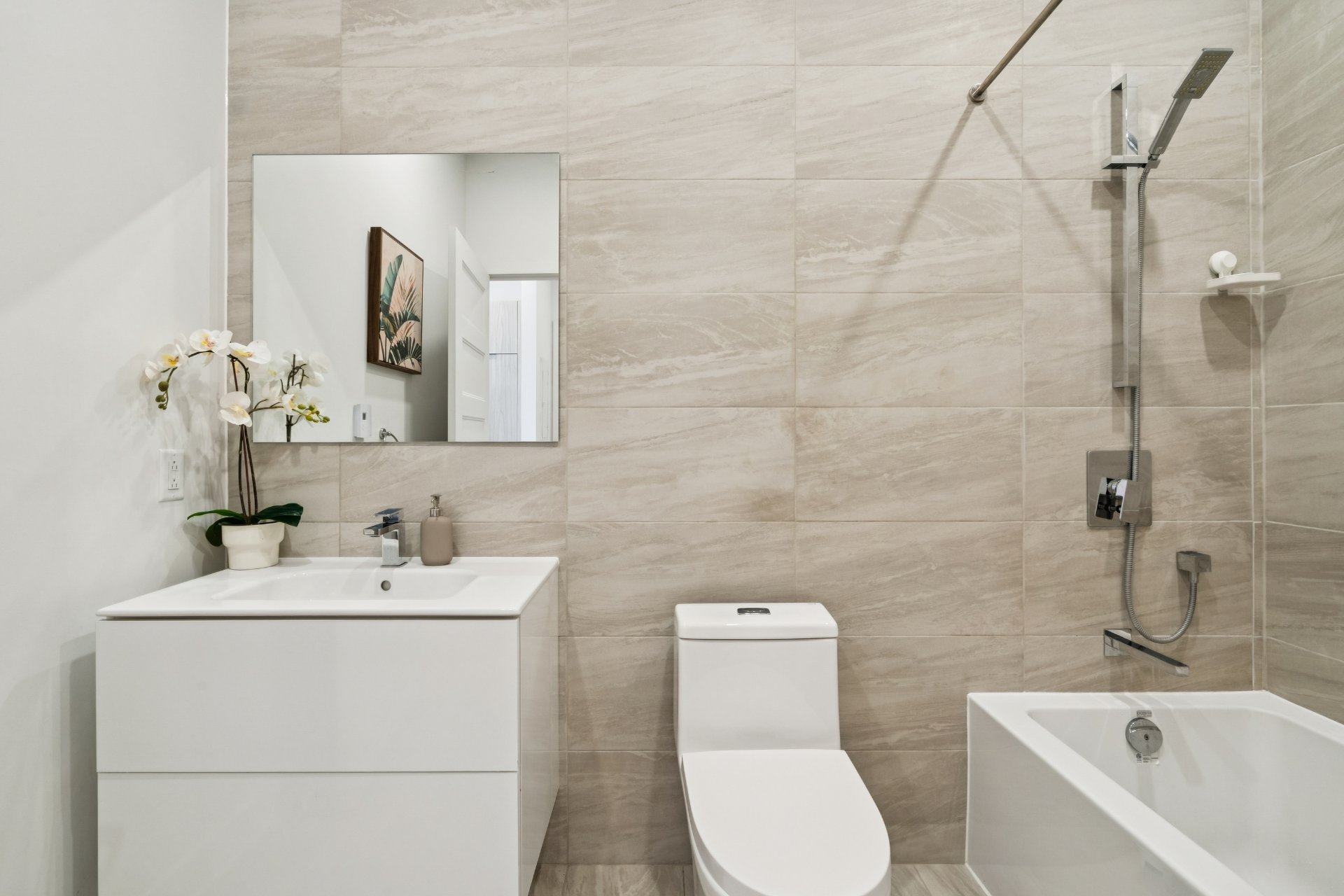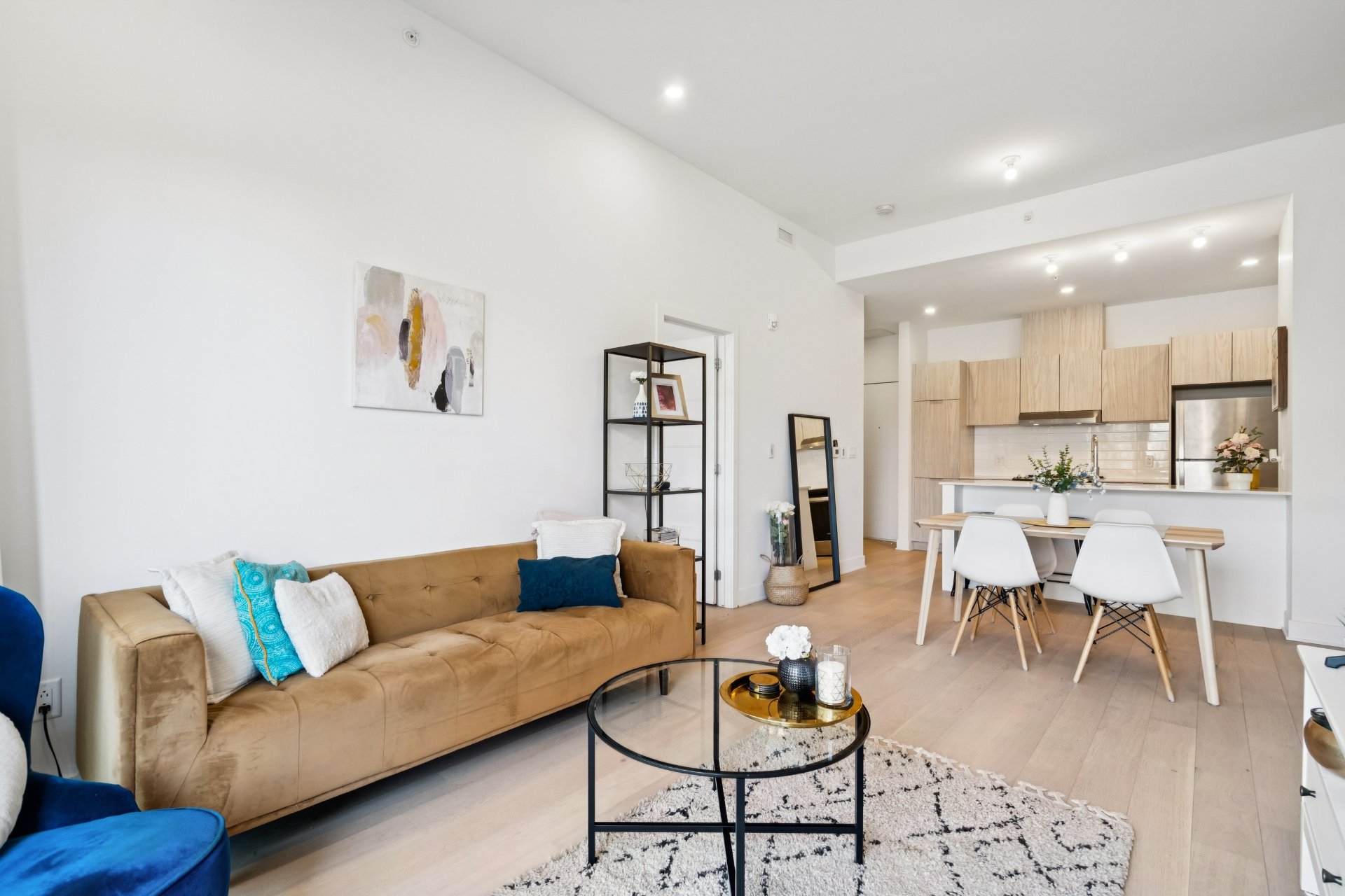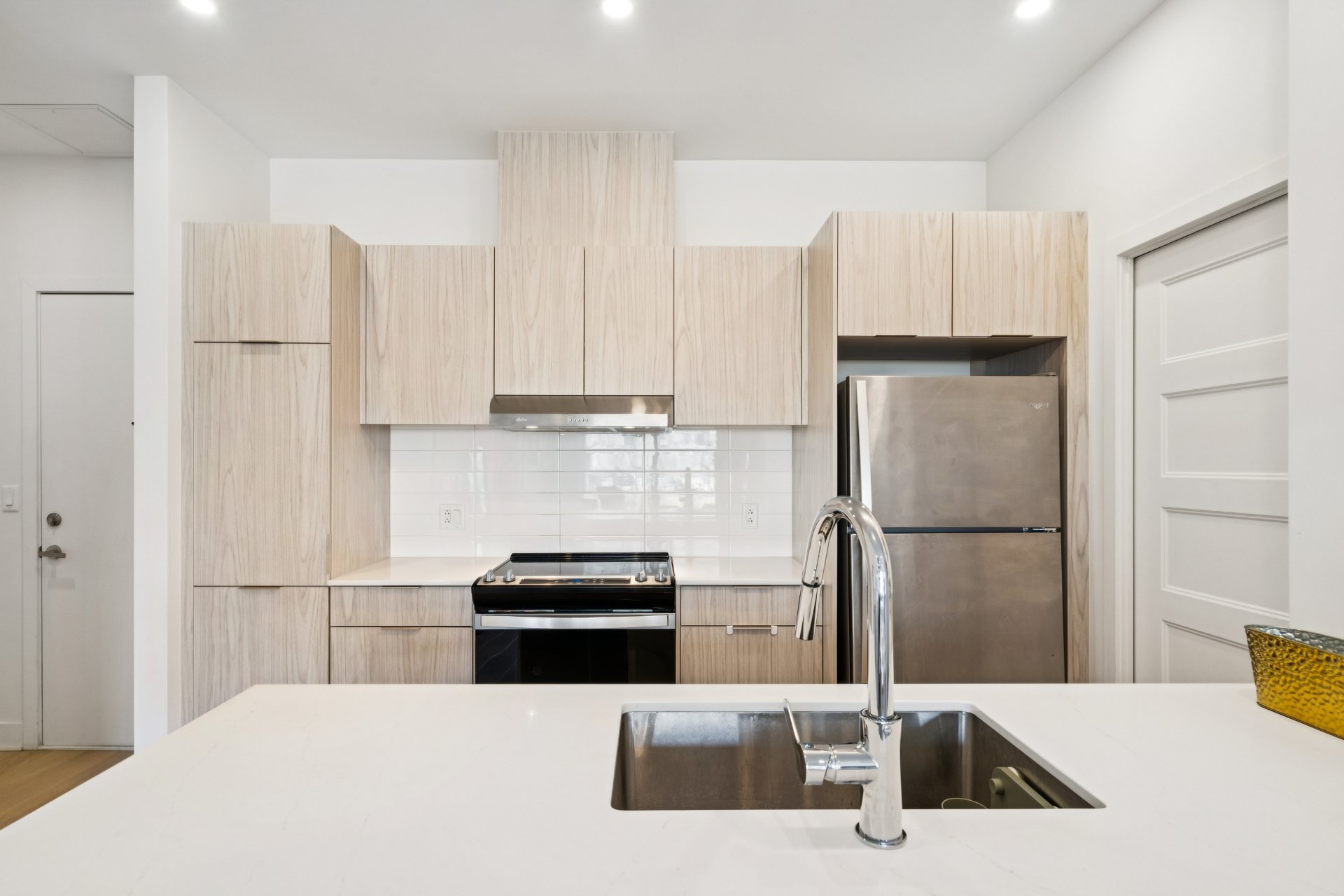 Stunning modern condo in Ahuntsic, steps from Saint-Benoît Park and a 5-minute walk from Fleury West. This light-filled unit features an open-concept living space with a contemporary kitchen and central island, open to the living and dining room with ceilings over 10 feet. Large windows ensure abundant natural sunlight. There are two generously sized bedrooms, one with a walk-in closet, and two modern bathrooms. Enjoy a pleasant private terrace, perfect for relaxing. Garage and storage locker included. The building also offers an exercise room and a common terrace. Still under builder warranty