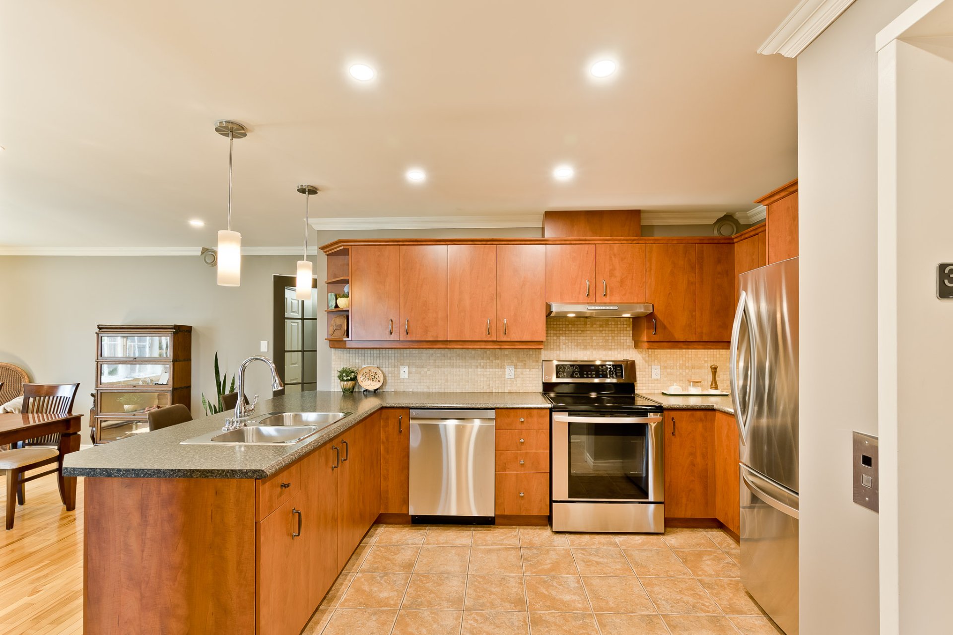 day. The hardwood and ceramic floors add a touch of