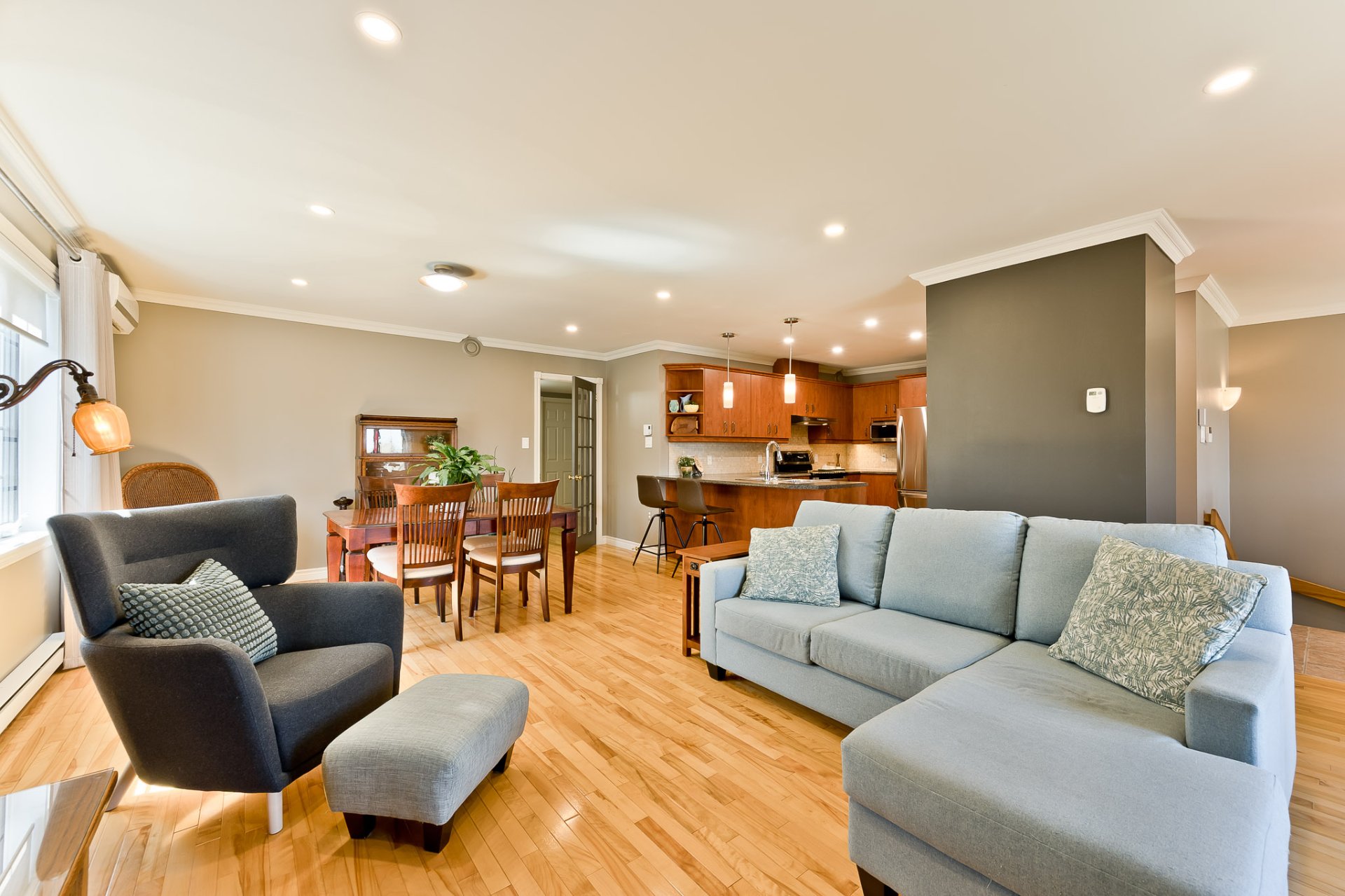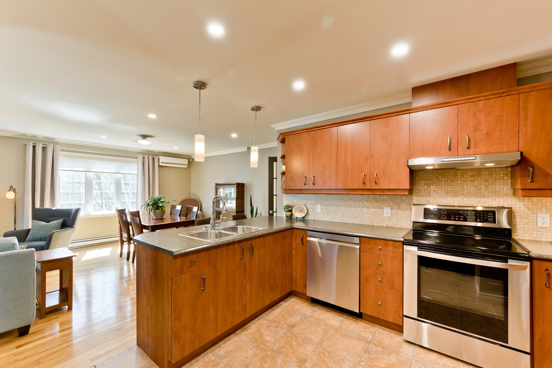 space flows harmoniously into the dining room, forming an
