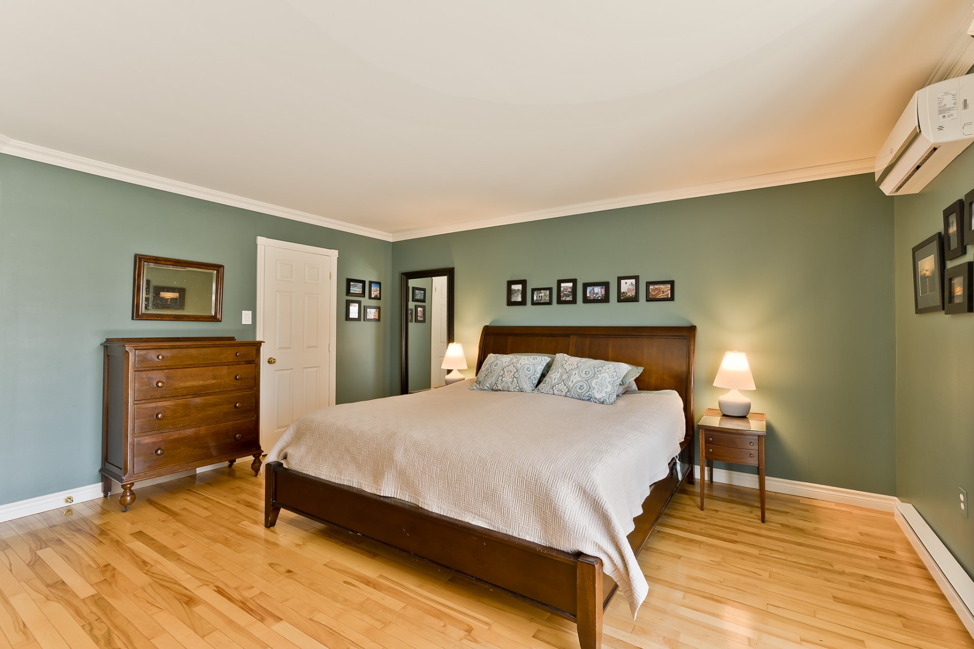 entrance, and includes a wall-mounted air conditioner.
