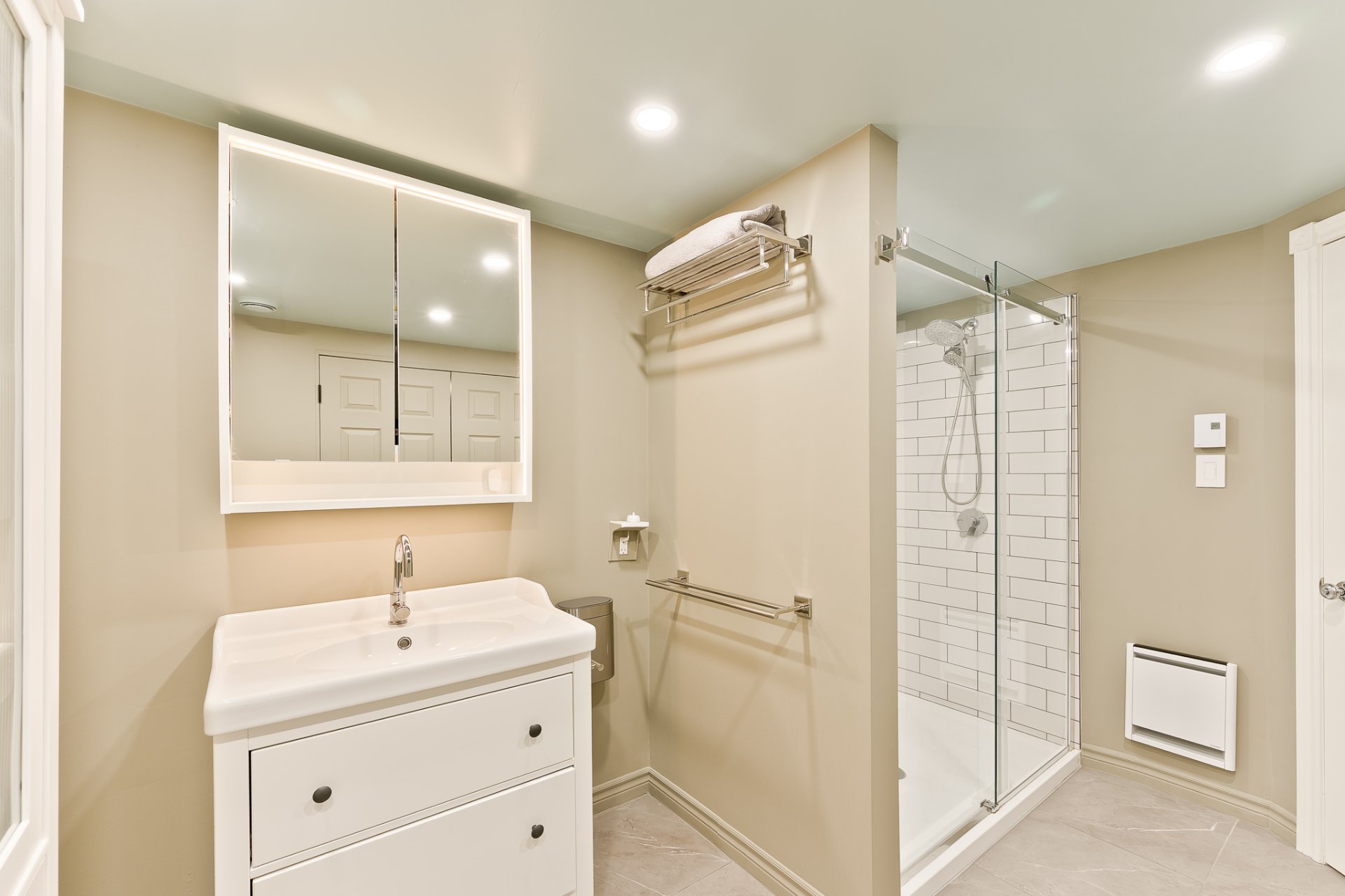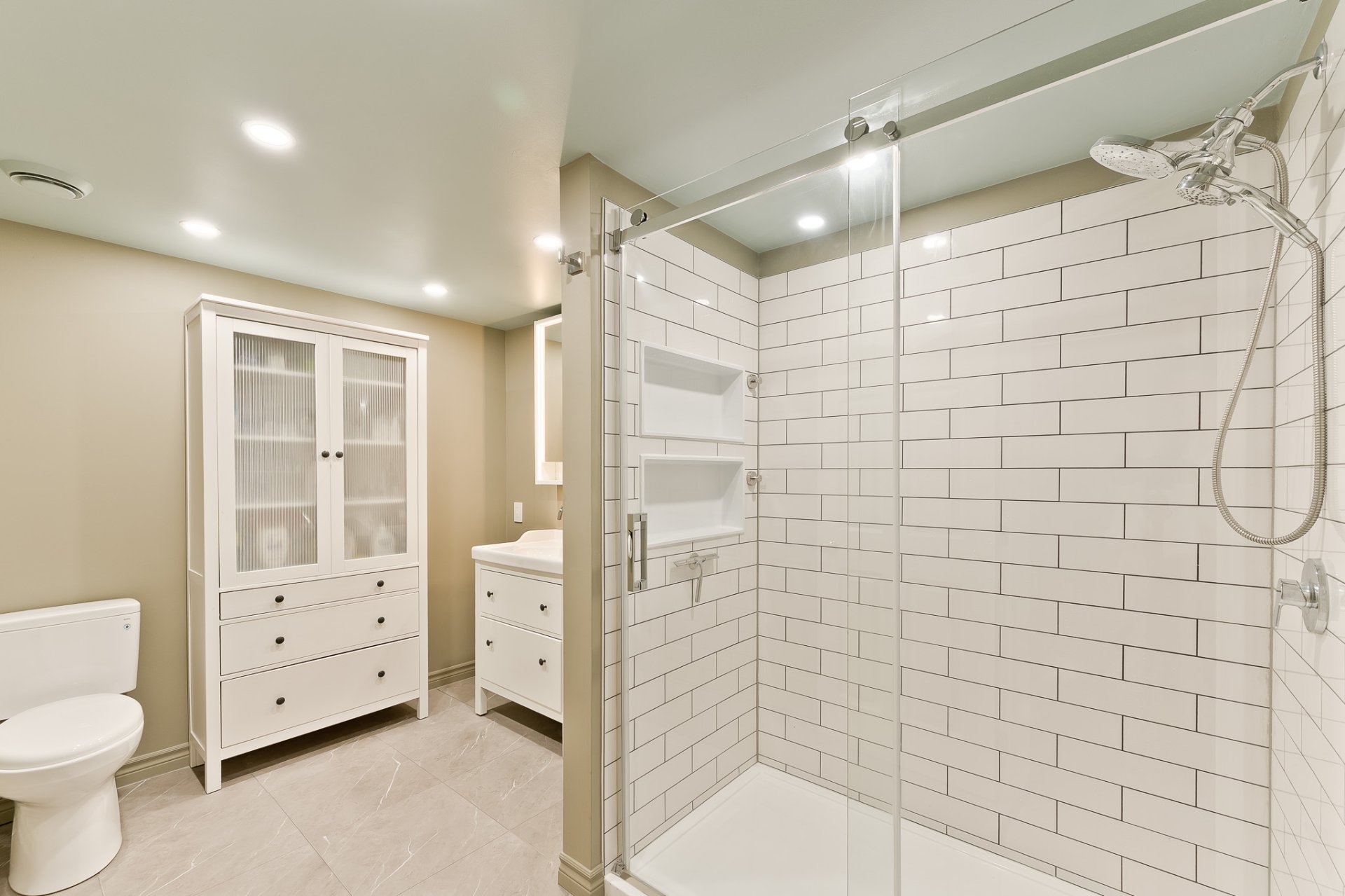 glass-enclosed shower that blends seamlessly into the