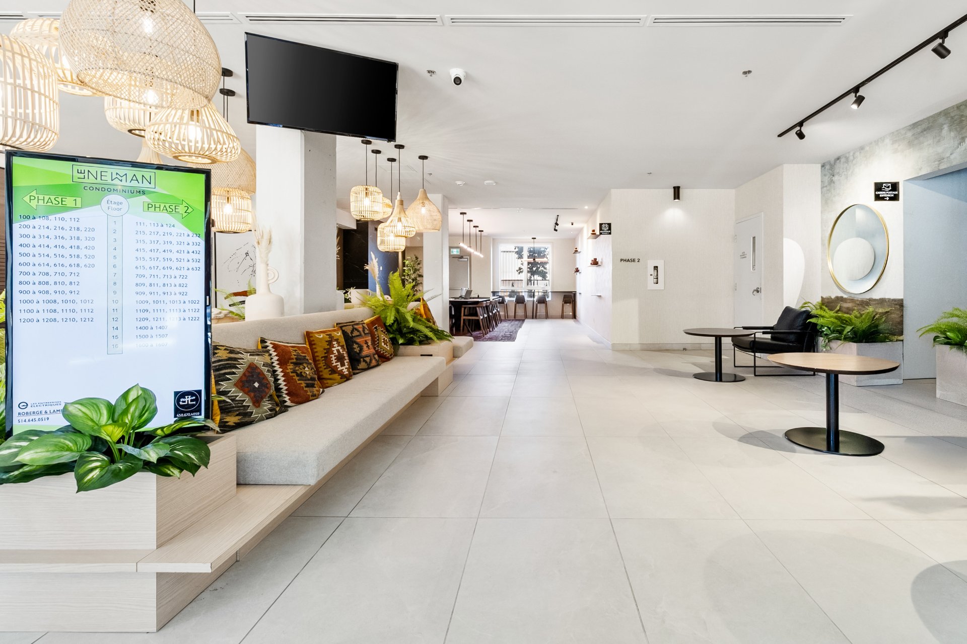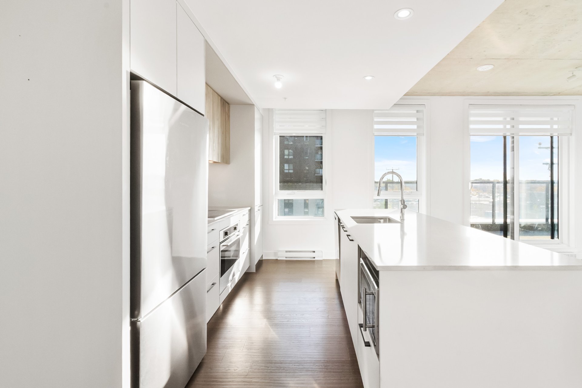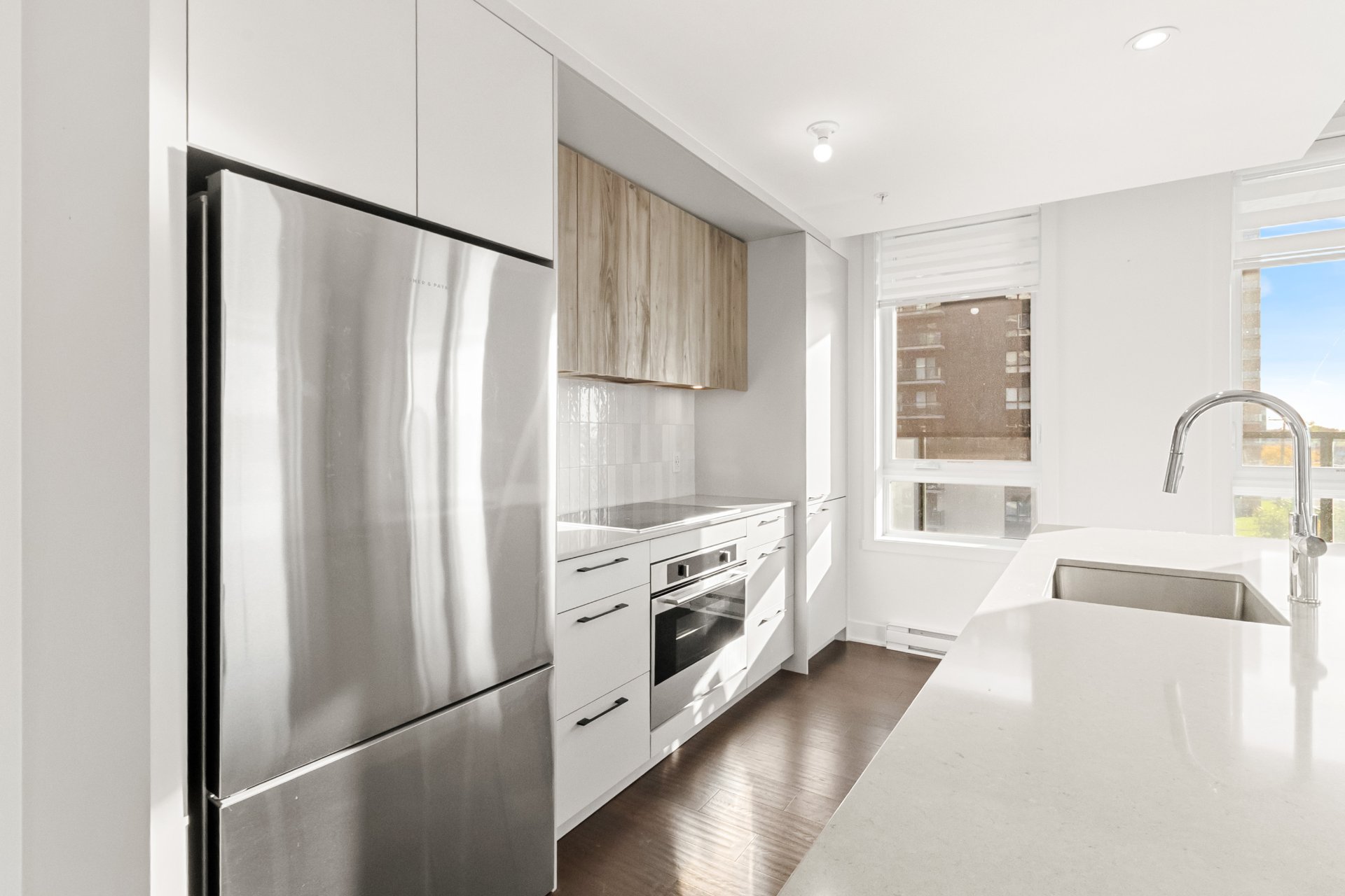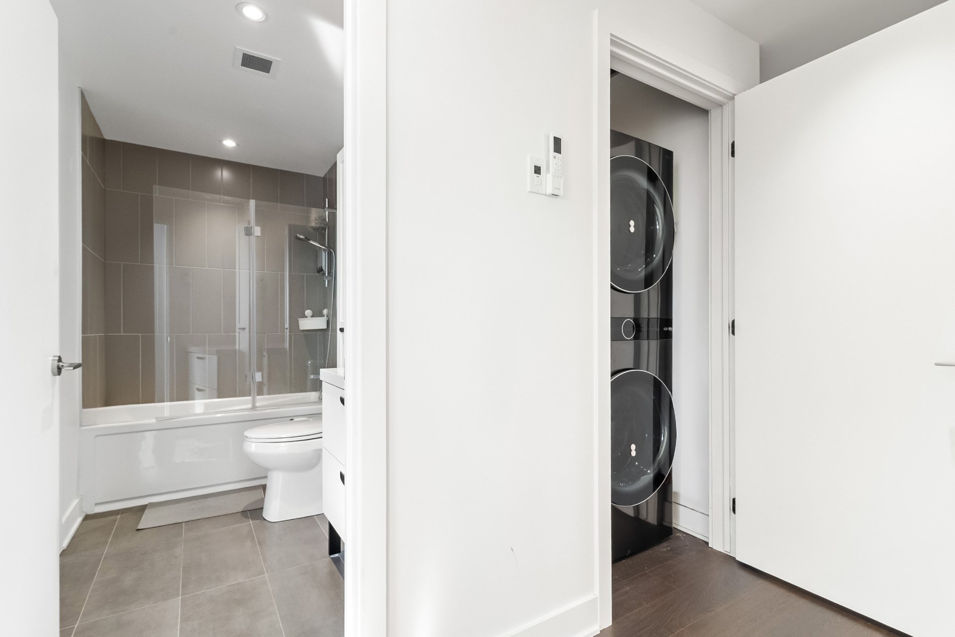 Located on the 4th floor of the Le Newman project (2023), this corner unit of 792 sq. ft. offers 2 bedrooms, including a primary with a walk-in closet and ensuite bathroom. Bright and airy, it features the largest corner balcony and the largest storage unit in the building. Corner parking provides extra space and privacy. Access to complex amenities: garden, pétanque, pickleball, gym, theater, yoga, playground, rooftop terrace with pool and BBQ. Views of LaSalle, Mount Royal, and Saint Joseph's Oratory.