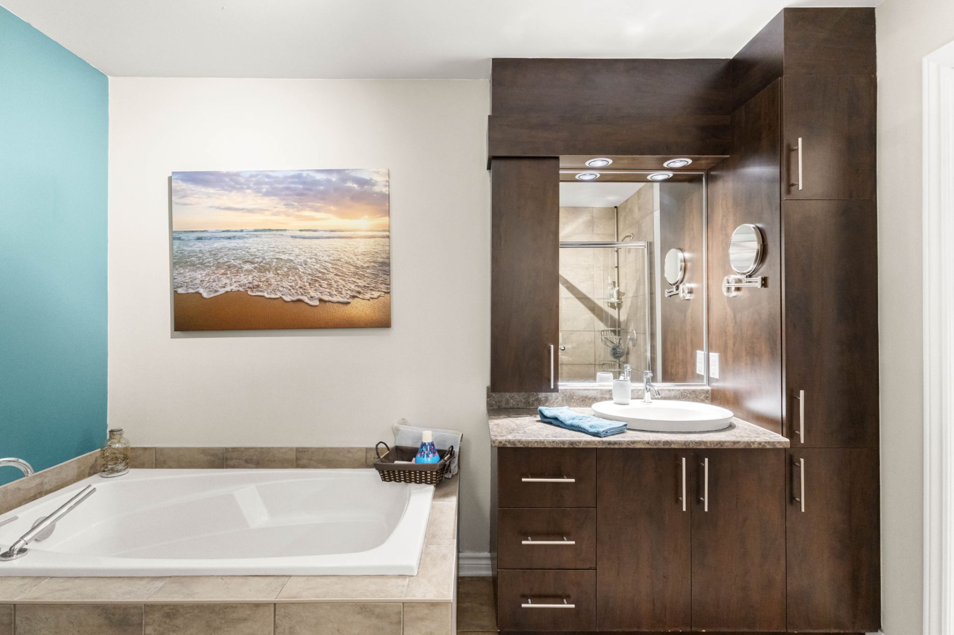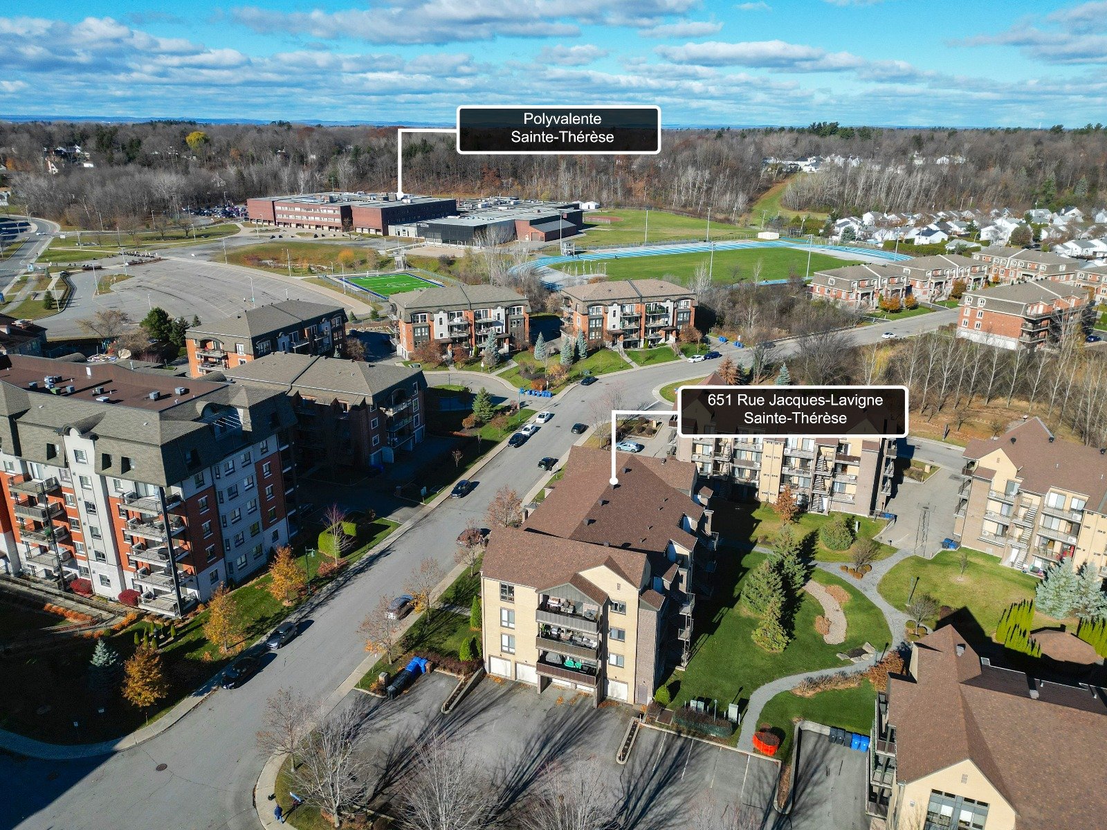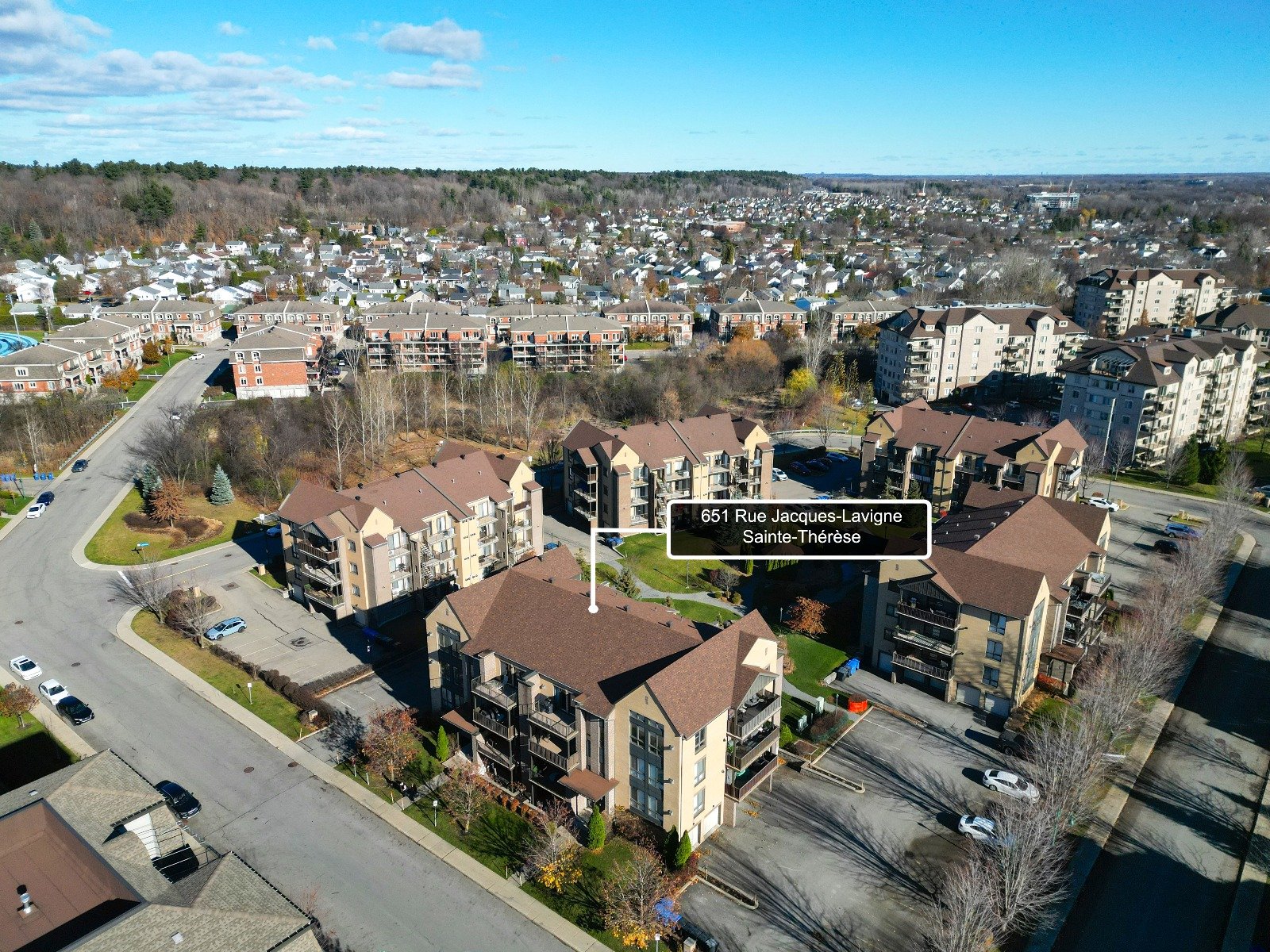 Beautiful garden-level condo in the sought-after Havres-du-Ruisseau sector of Ste-Thérèse. Offers 2 spacious bedrooms, open-concept living, bright living room with gas fireplace, and 2 private terraces with no rear neighbors. Easy ground-level access with no stairs, ensuite bathroom, heated floors, wall-mounted heat pump, air exchanger, and 9-foot ceilings. Includes two outdoor parking spaces. Ideally located near parks, schools, shops, transit, and highways. Quick access to public transit, including Ste-Thérèse and Rosemère train stations. Move-in ready, well-managed with solid contingency fund. A truly unique quality of life!