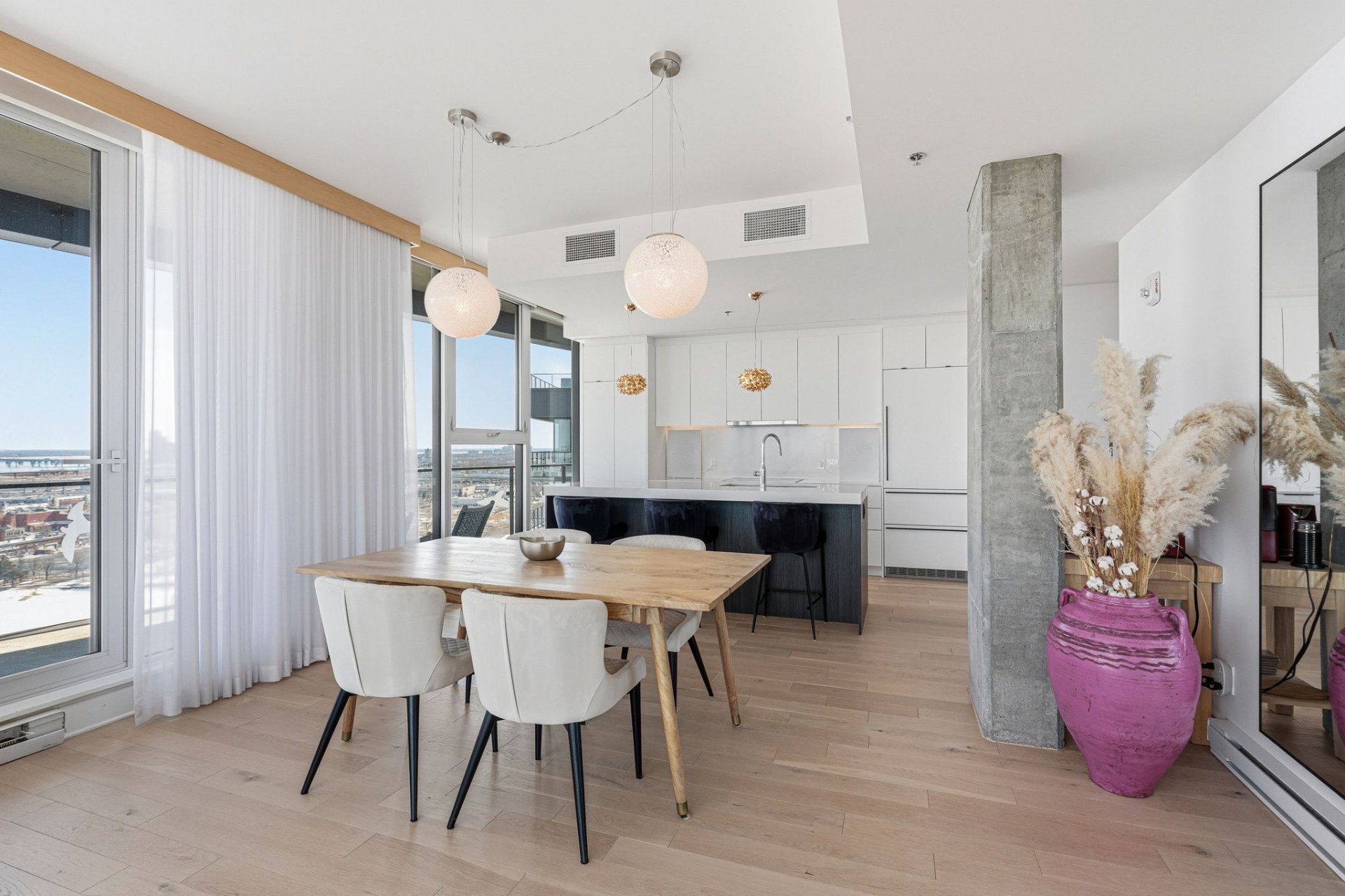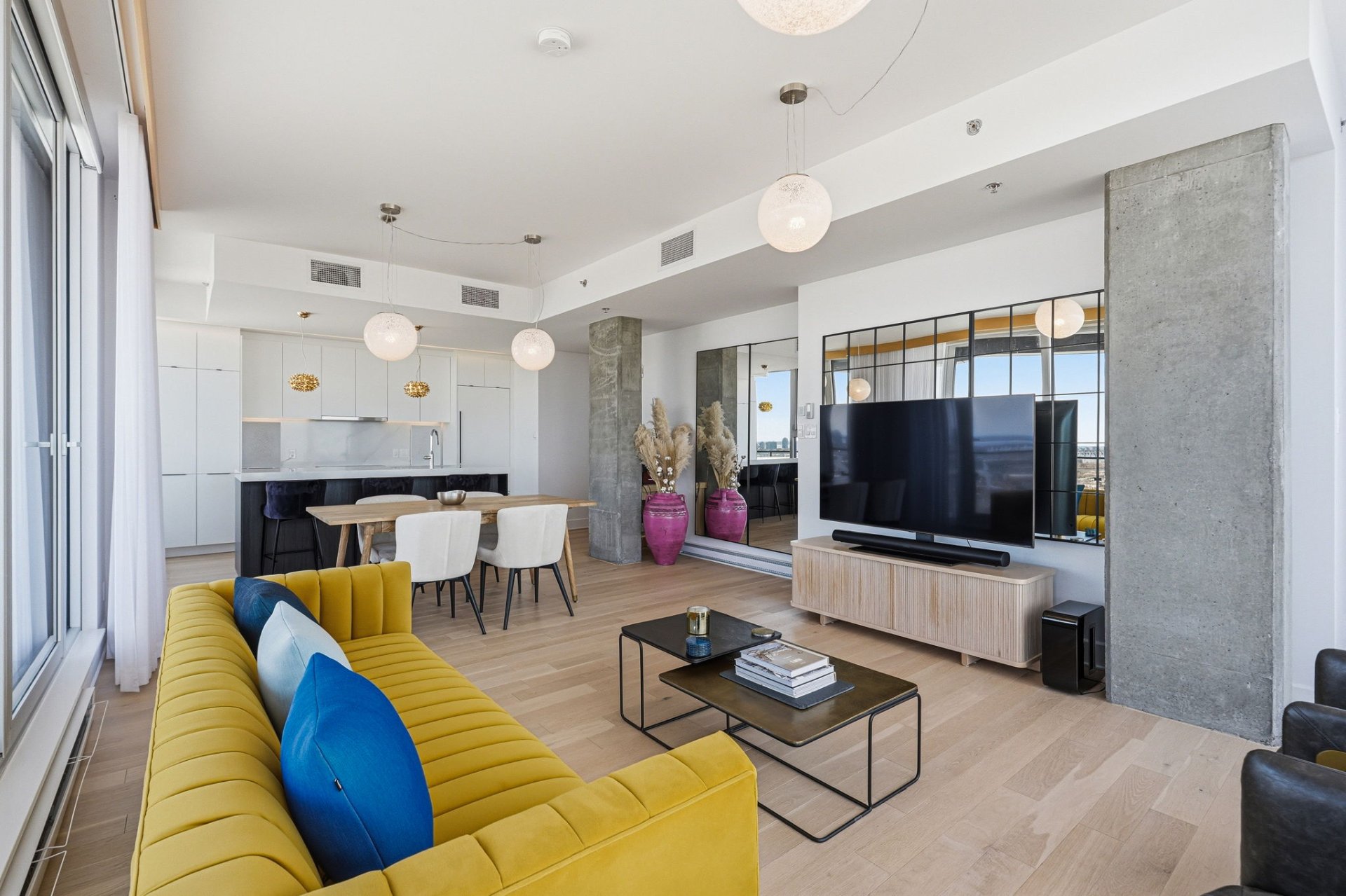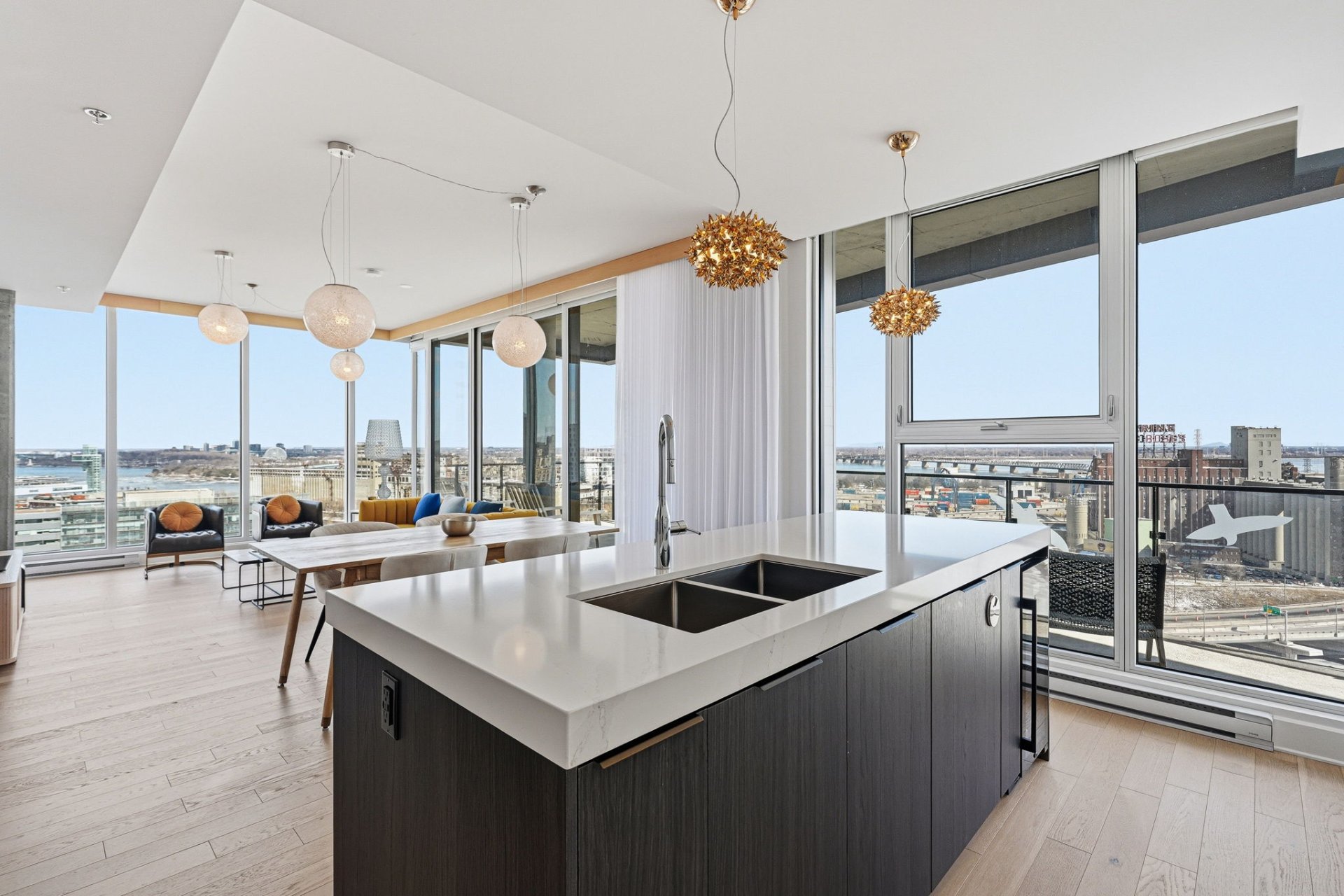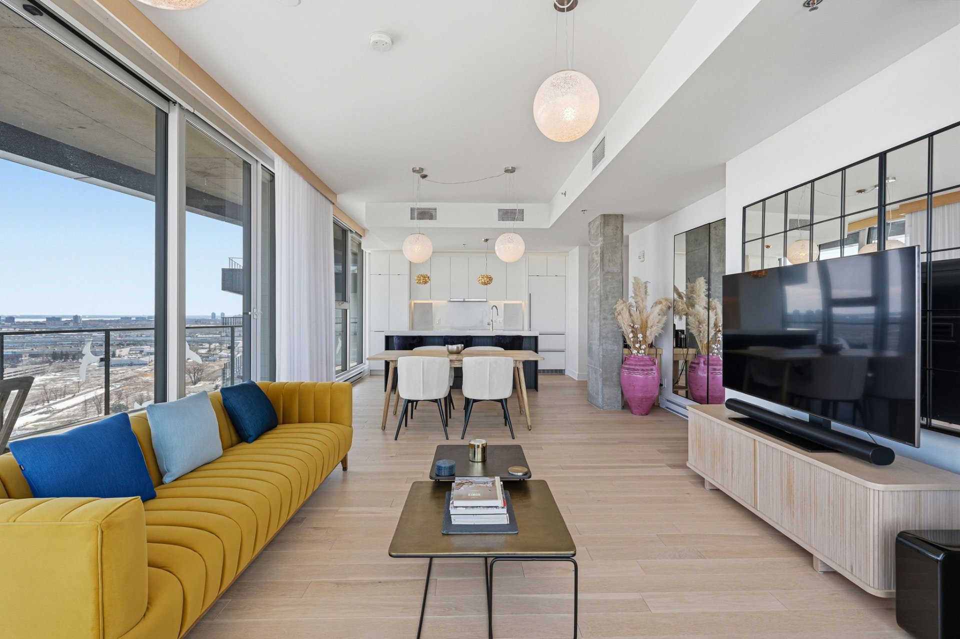open-concept layout enhanced by floor-to-ceiling windows