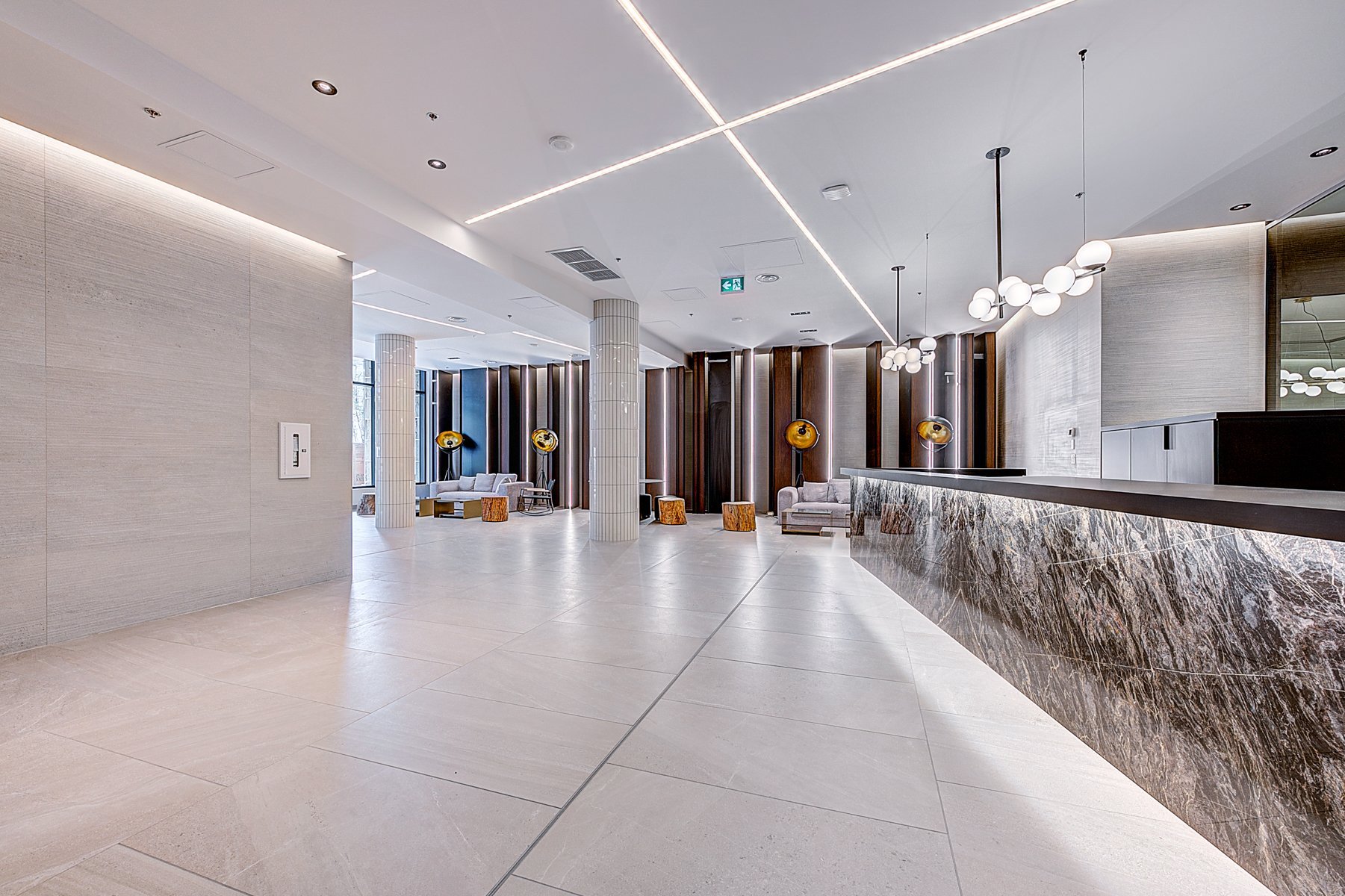 meticulously designed common areas reflect the building's