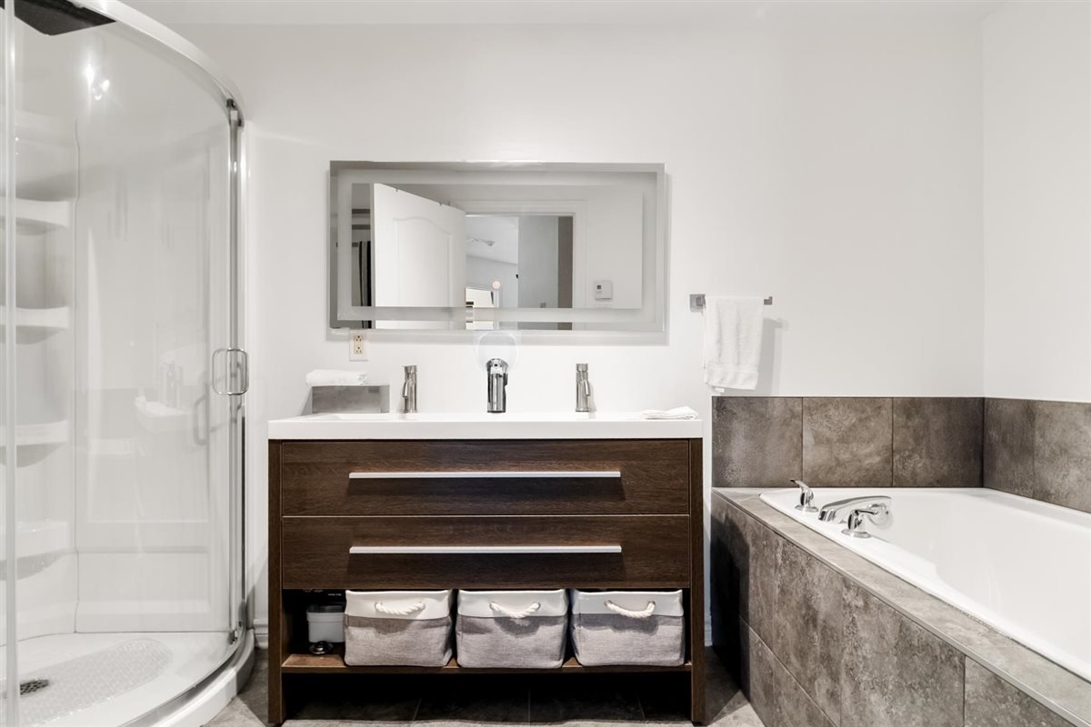 Beautifully renovated garden level condo with an abundance of windows offering lots of natural light. Plenty of privacy nestled in a tranquil area of Auteuil, Laval. Includes 2 spacious bedrooms with one walk-in, an open concept living area, private outdoor terrase, renovated bathroom with separate laundry area with an additional locker right across the hall indoors at your convenience. Also includes 1 parking outdoors with easy parking access on the street all year round. Not to miss!