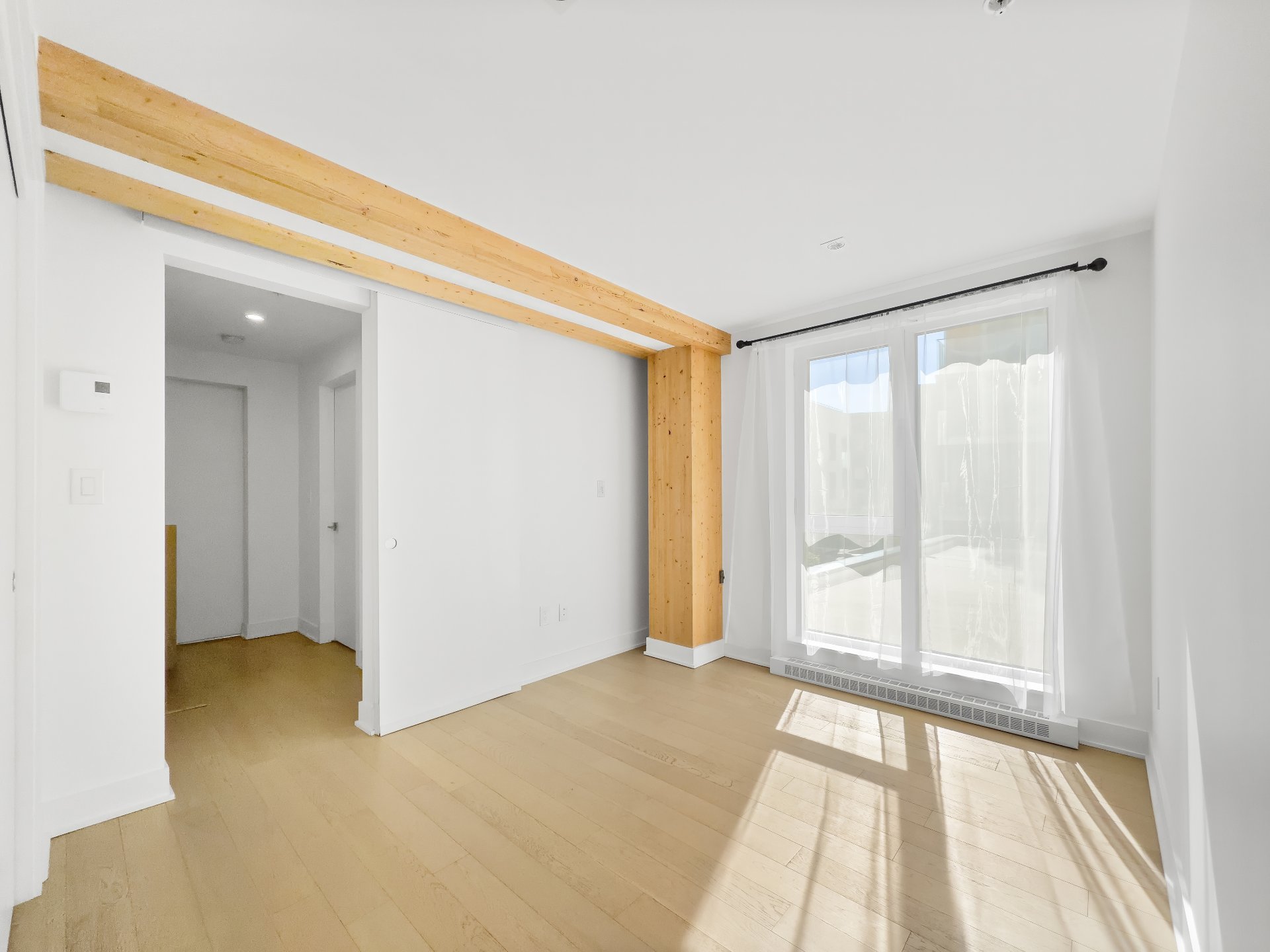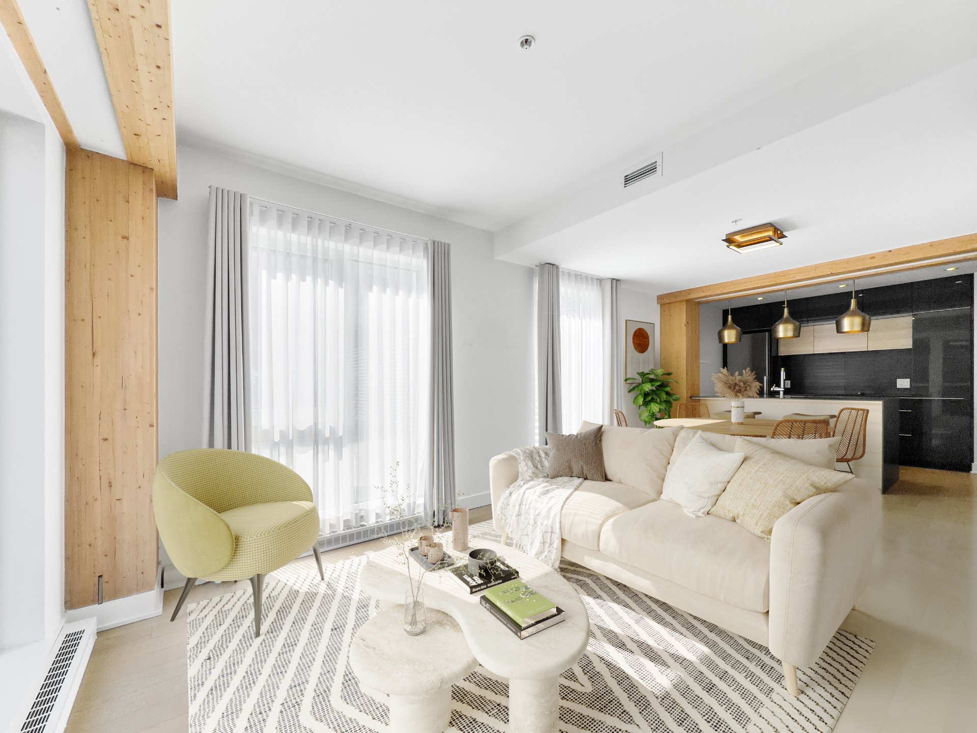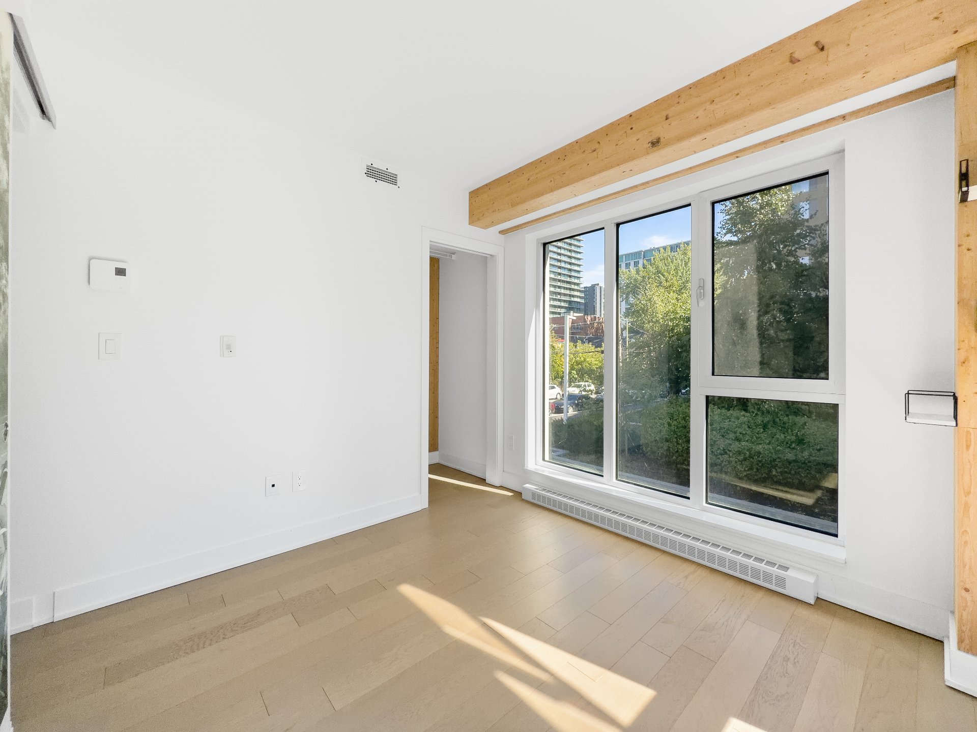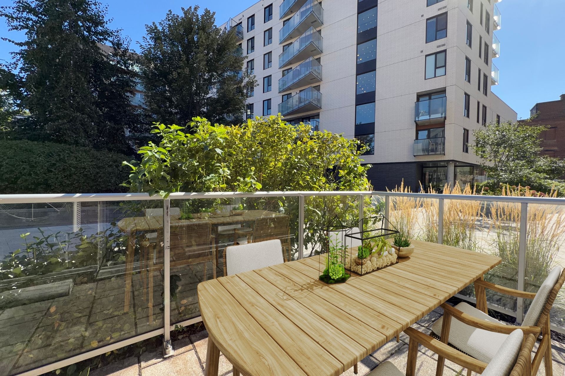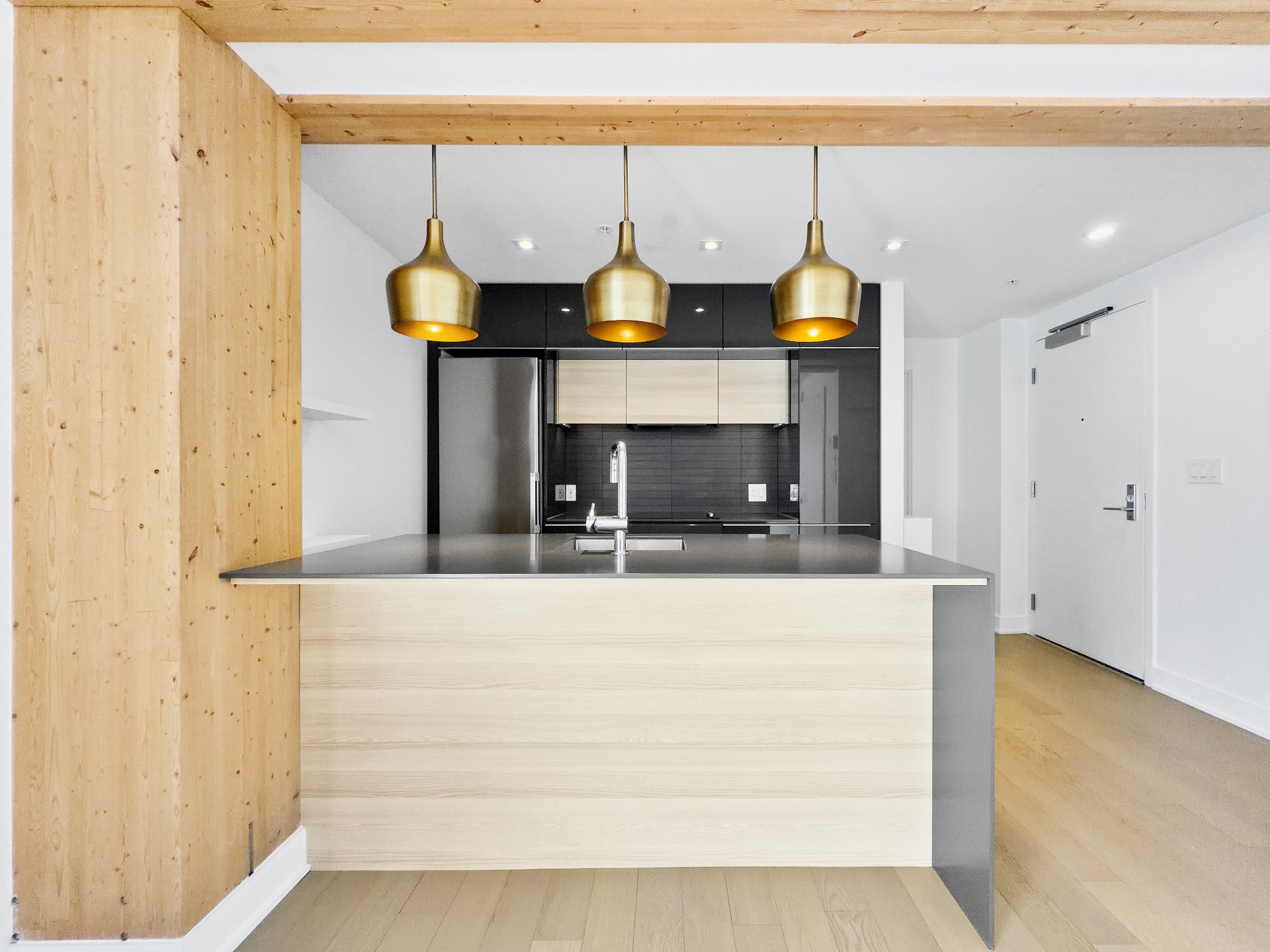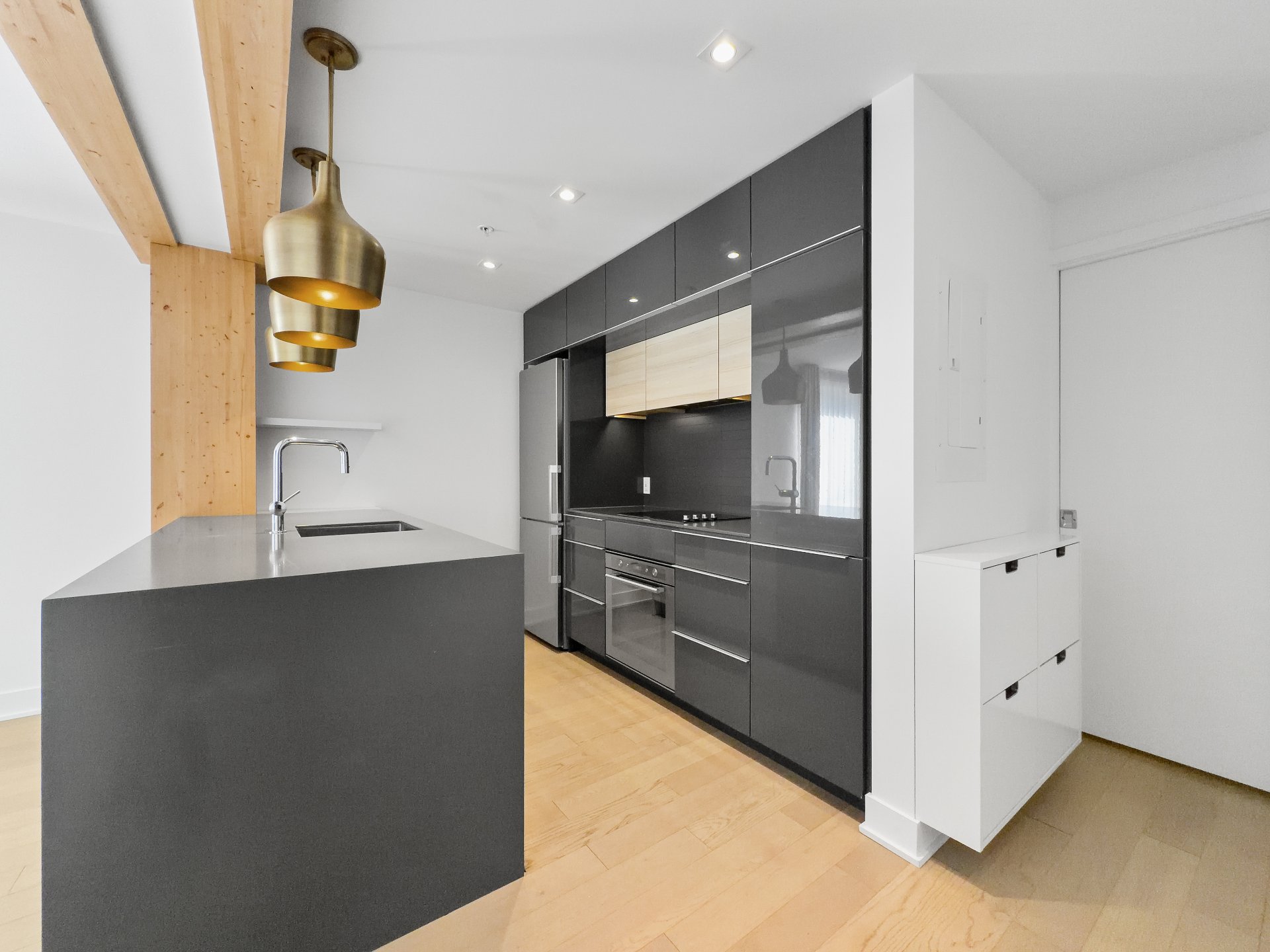 Over two bright floors, this rare corner townhouse in the LEED Arbora 2 project offers a unit with natural design, ecological awareness, and contemporary elegance. The solid wood beams, refined Corian kitchen, and large south-facing windows create a serene and inspiring atmosphere. The private patio opens onto a landscaped courtyard -- a green haven in the vibrant heart of Griffintown. Two bedrooms, two bathrooms, a powder room, storage space, and indoor parking complete the package. The building also offers an outdoor pool, gym, and dog wash station. Come visit while it's still avail