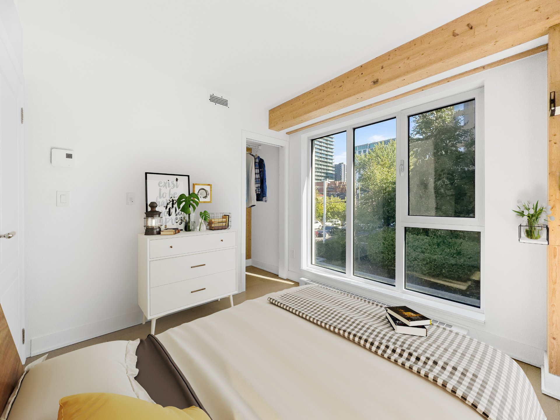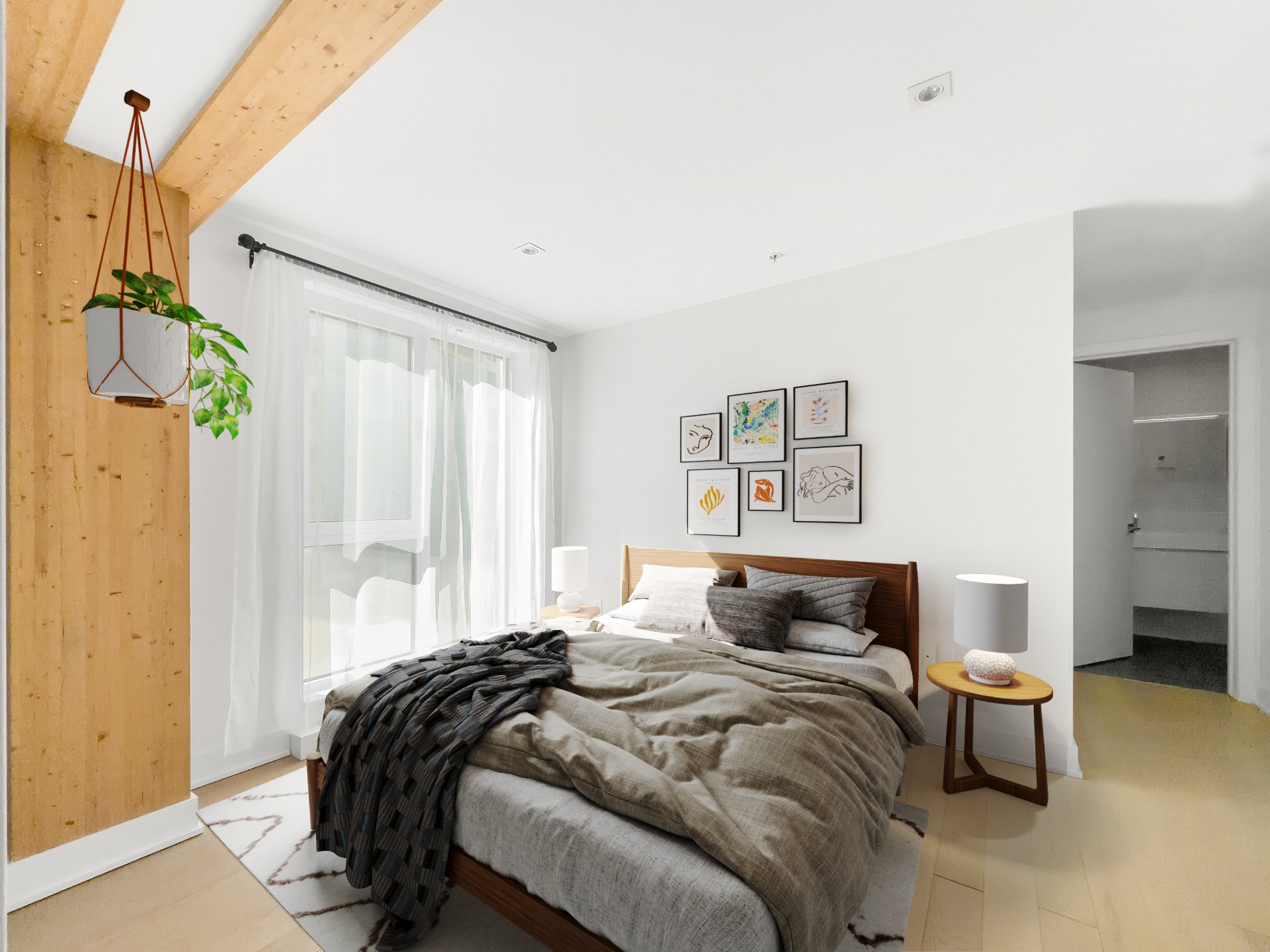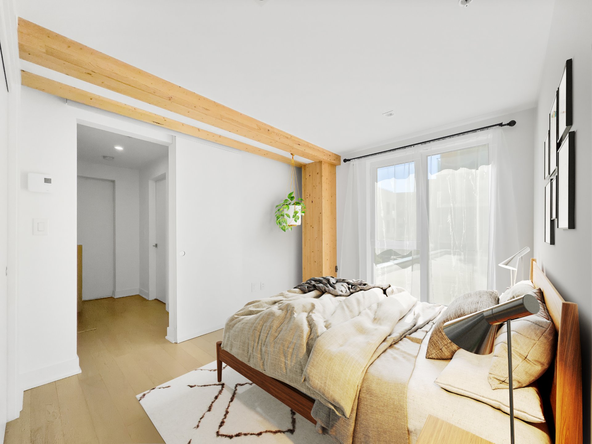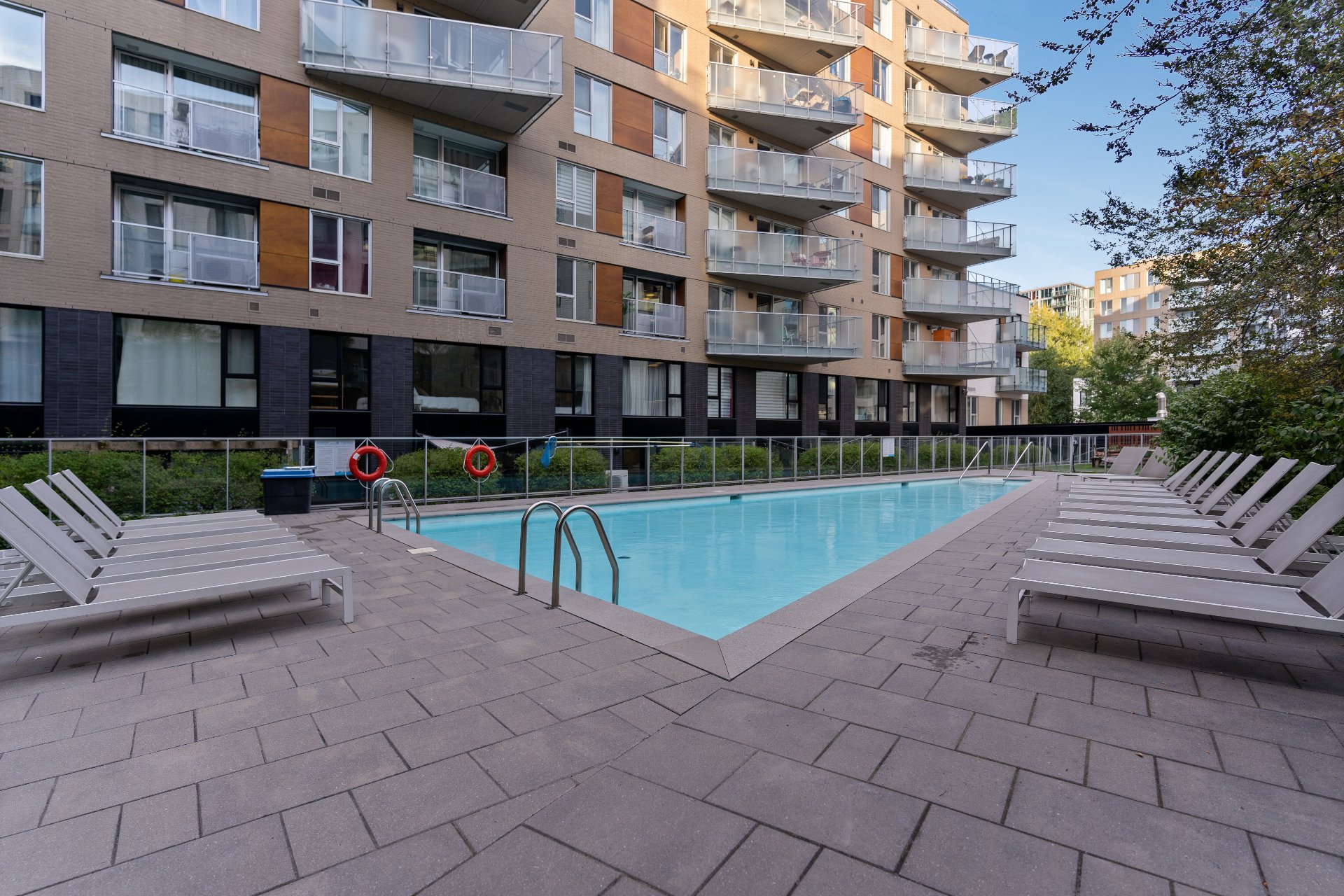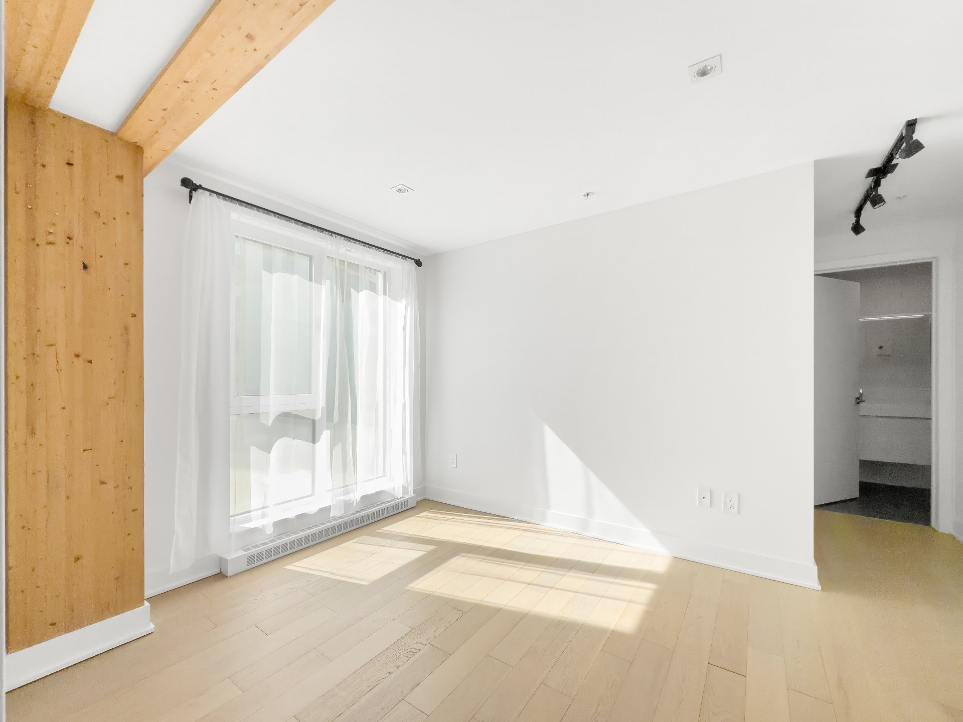 Over two bright floors, this rare corner townhouse in the LEED Arbora 2 project offers a unit with natural design, ecological awareness, and contemporary elegance. The solid wood beams, refined Corian kitchen, and large south-facing windows create a serene and inspiring atmosphere. The private patio opens onto a landscaped courtyard -- a green haven in the vibrant heart of Griffintown. Two bedrooms, two bathrooms, a powder room, storage space, and indoor parking complete the package. The building also offers an outdoor pool, gym, and dog wash station. Come visit while it's still avail