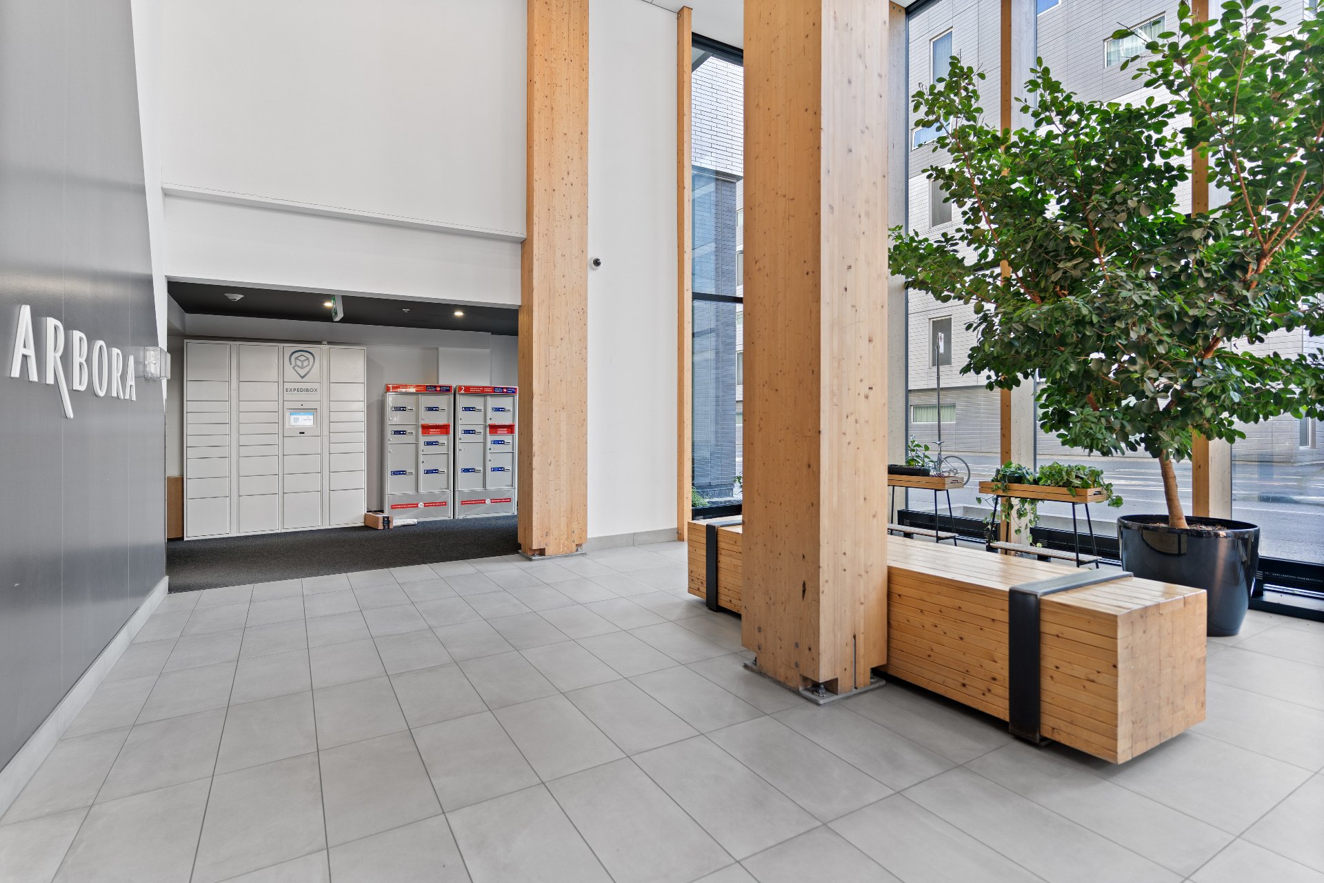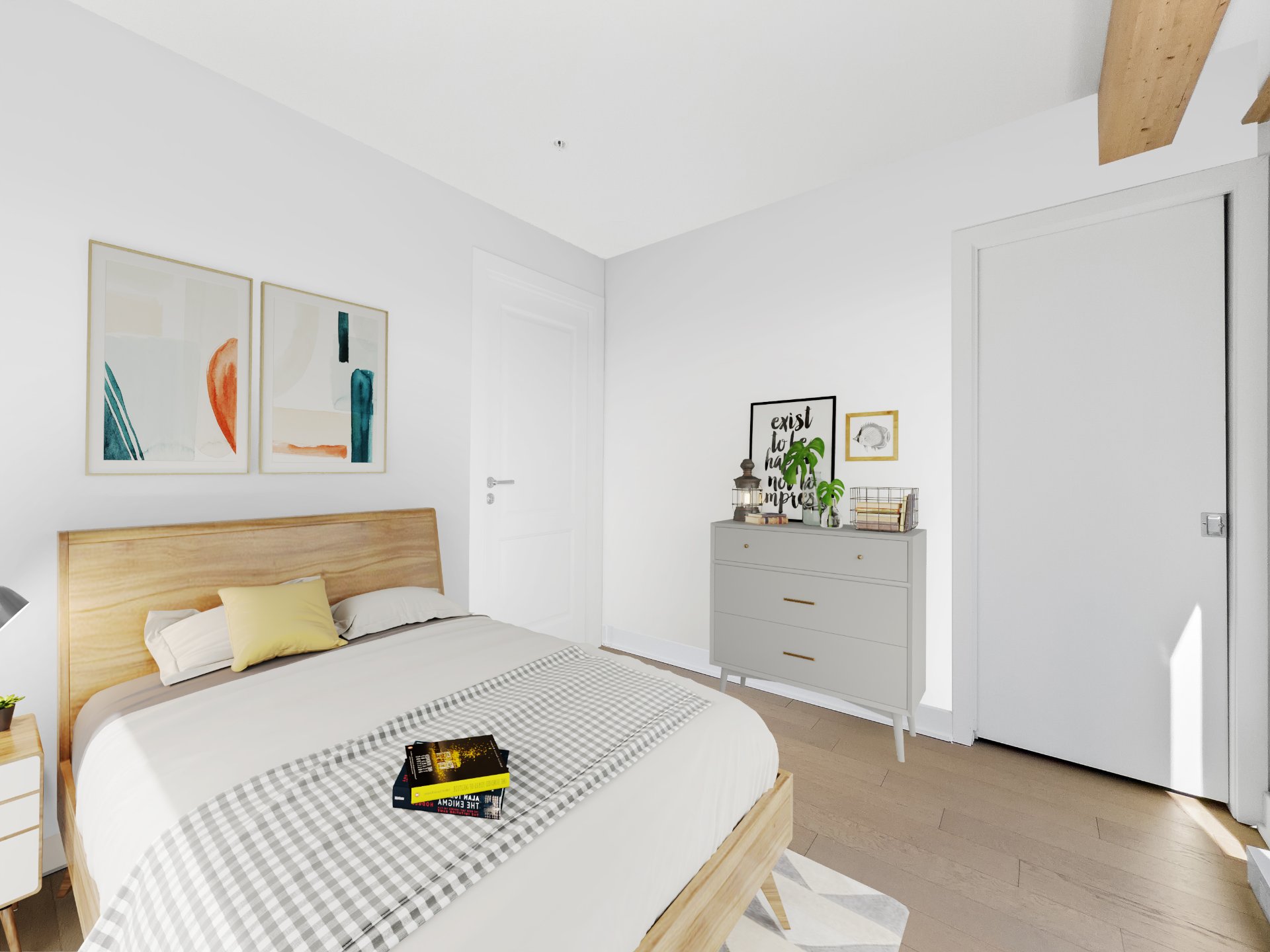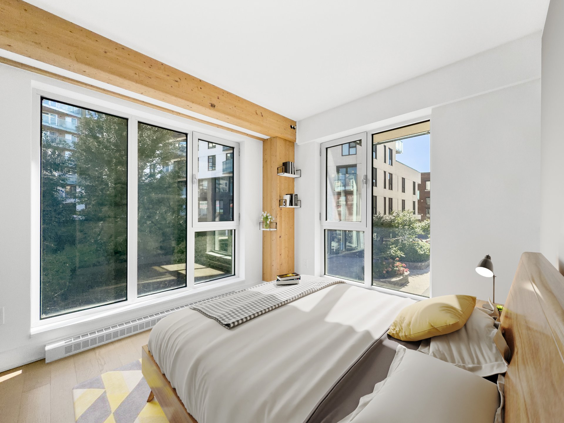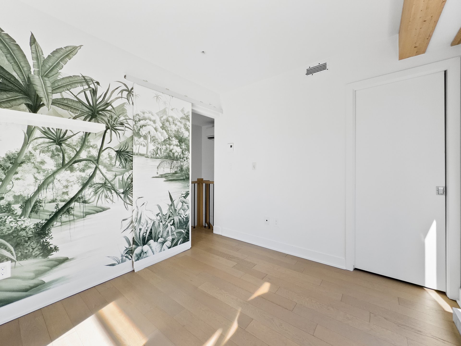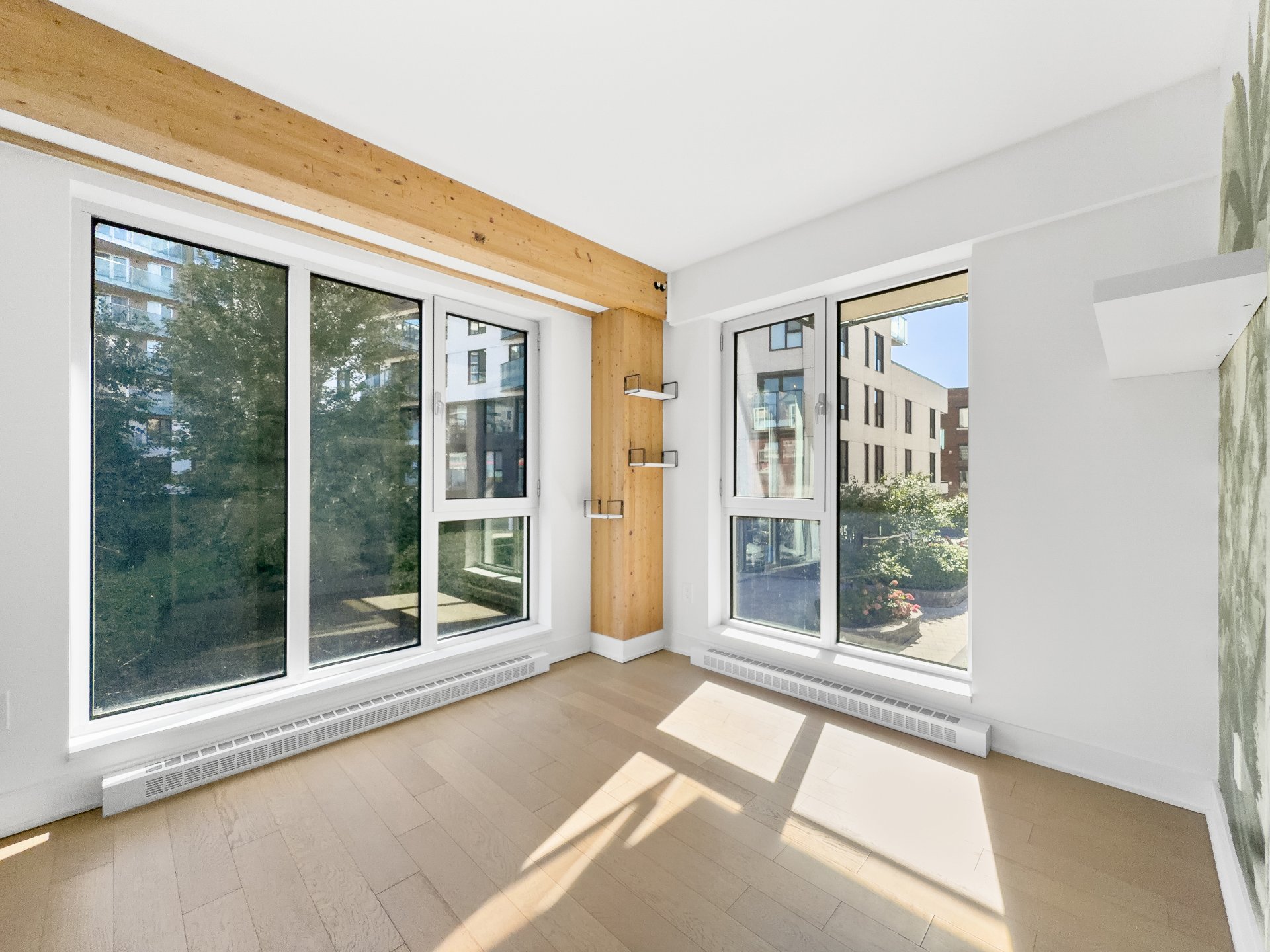 Over two bright floors, this rare corner townhouse in the LEED Arbora 2 project offers a unit with natural design, ecological awareness, and contemporary elegance. The solid wood beams, refined Corian kitchen, and large south-facing windows create a serene and inspiring atmosphere. The private patio opens onto a landscaped courtyard -- a green haven in the vibrant heart of Griffintown. Two bedrooms, two bathrooms, a powder room, storage space, and indoor parking complete the package. The building also offers an outdoor pool, gym, and dog wash station. Come visit while it's still avail