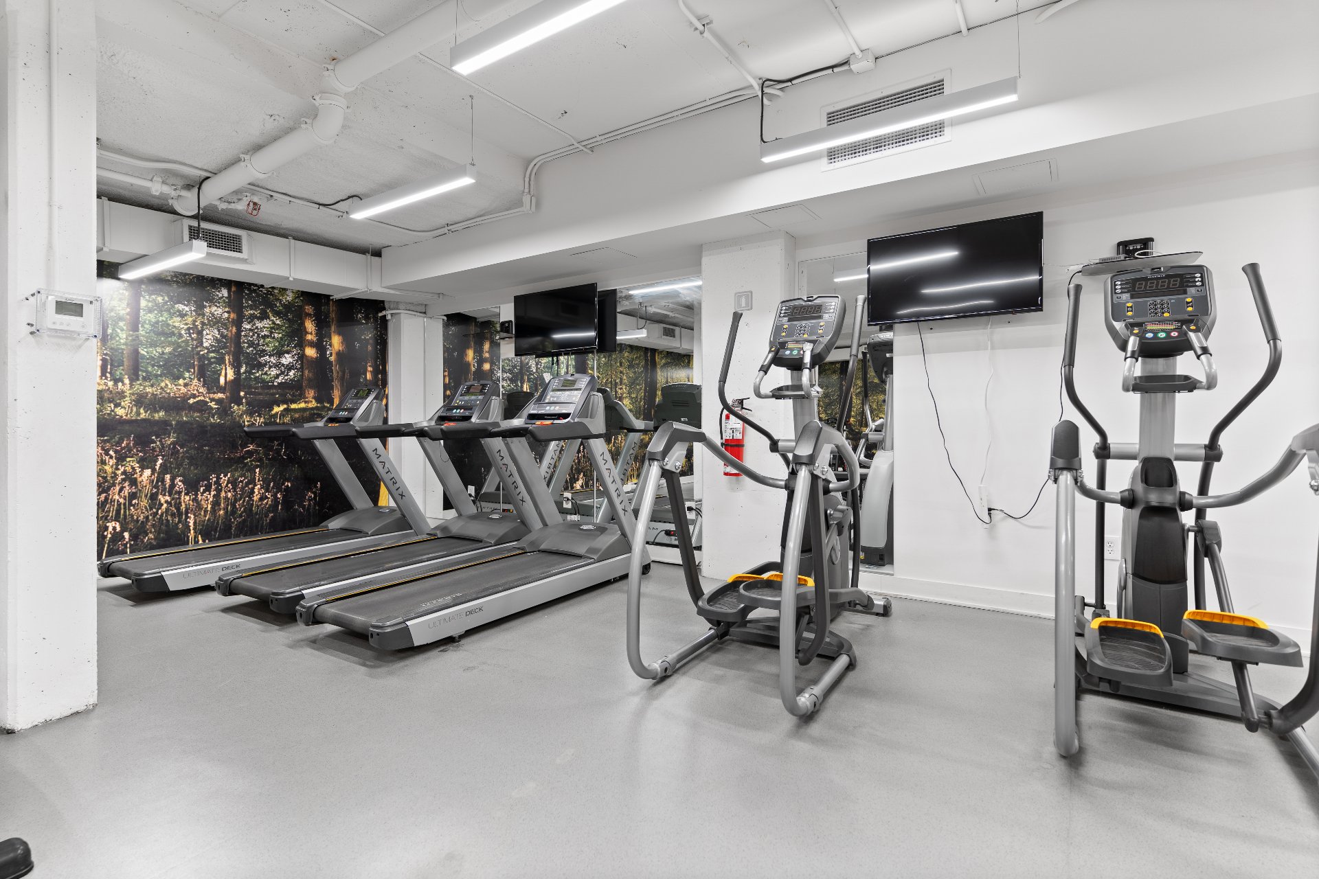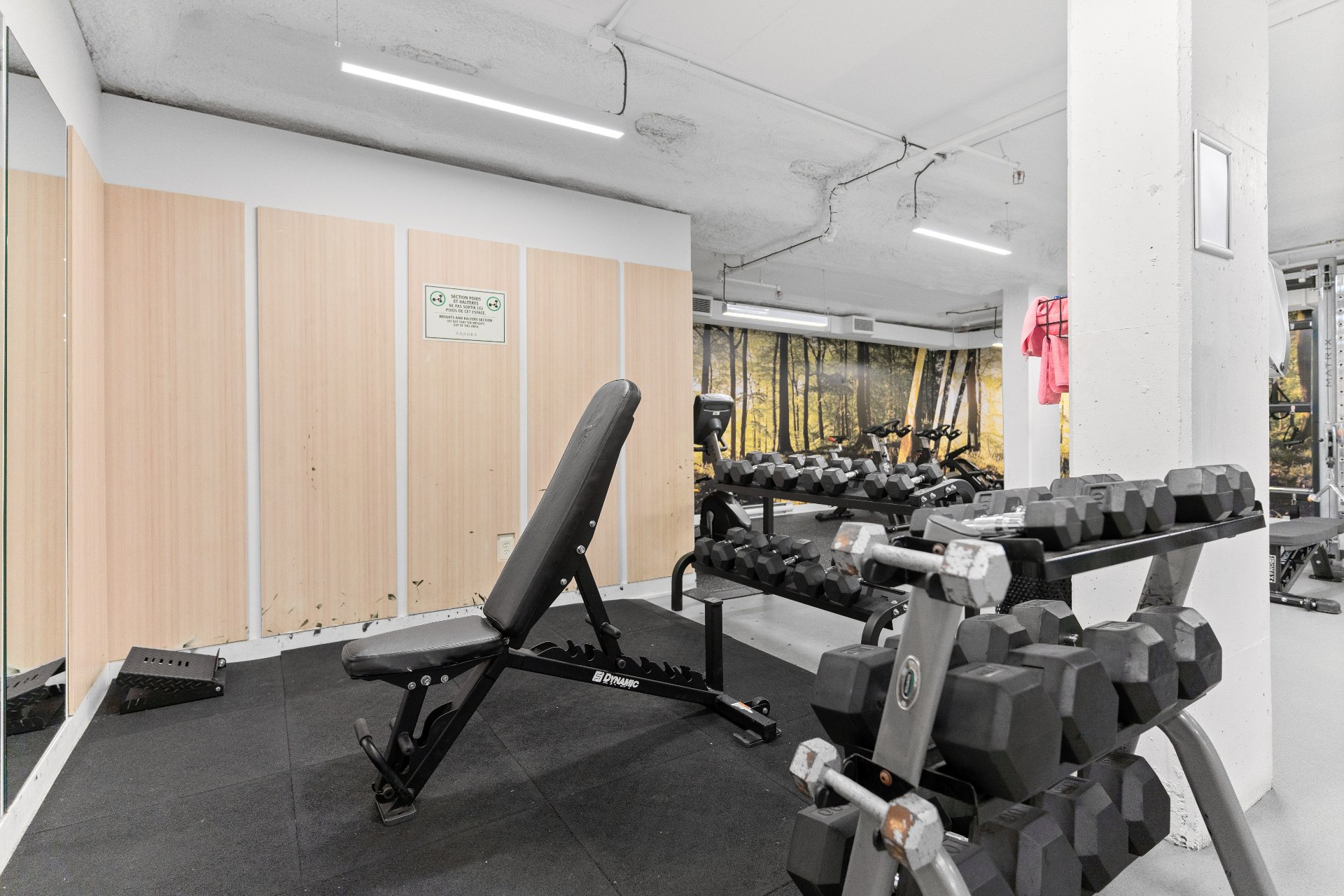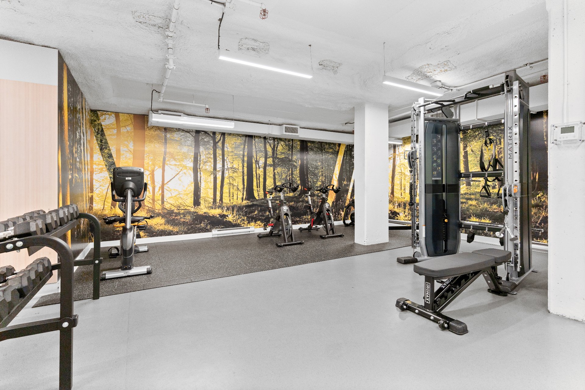 Bicycle storage area, Common areas, Exercise room, Fire detector, Garbage chute, Multiplex pay-per-use EV charging station, Outdoor pool, Sauna, Yard