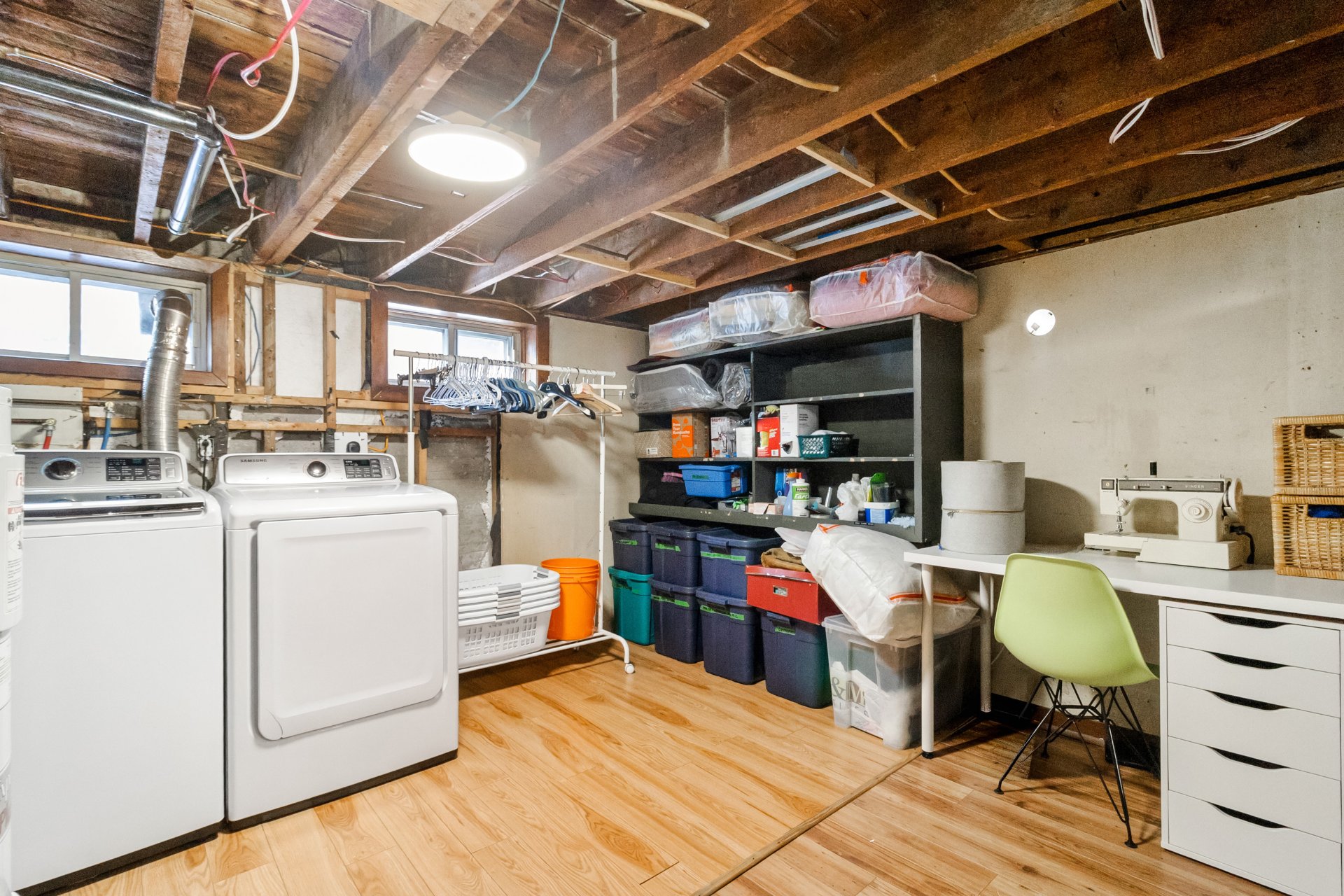 family room, a laundry room, a workshop, and a storage