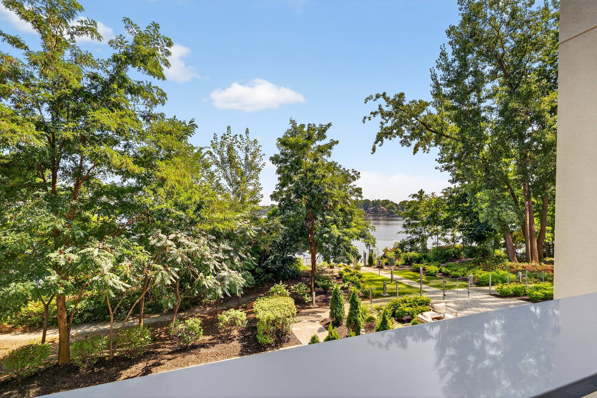 framed by water views. The designer kitchen is a chef's