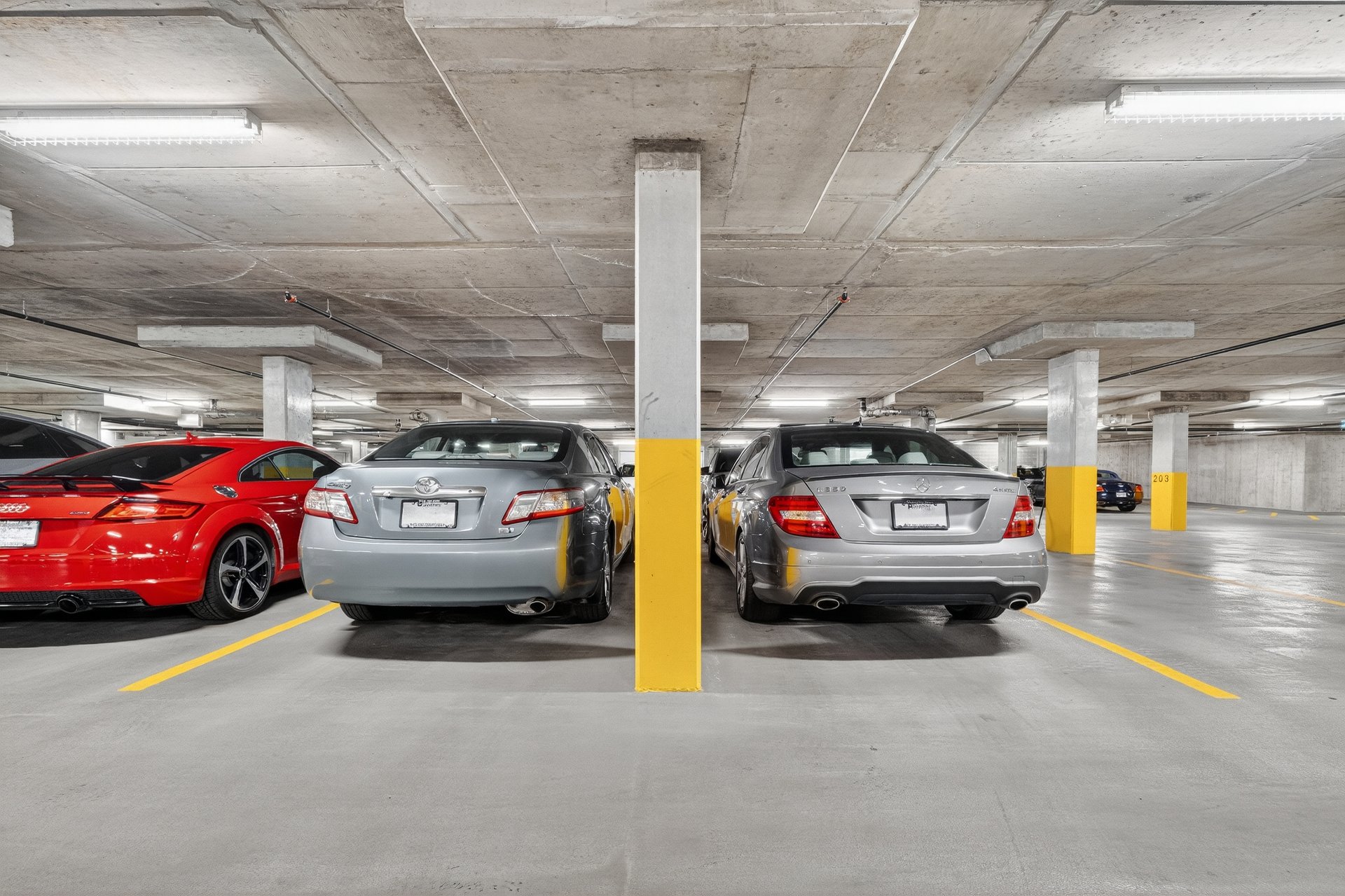 indoor parking spaces, two outdoor parking spots, storage