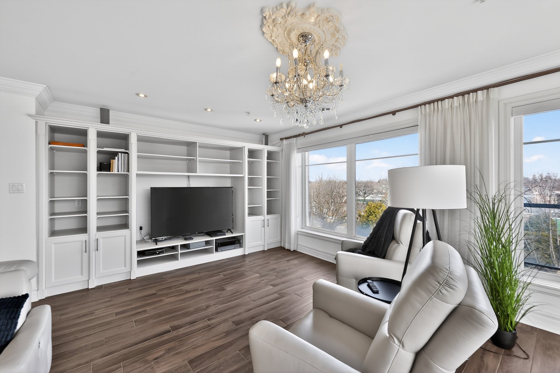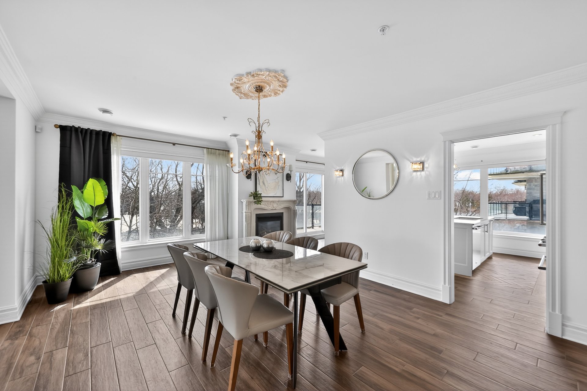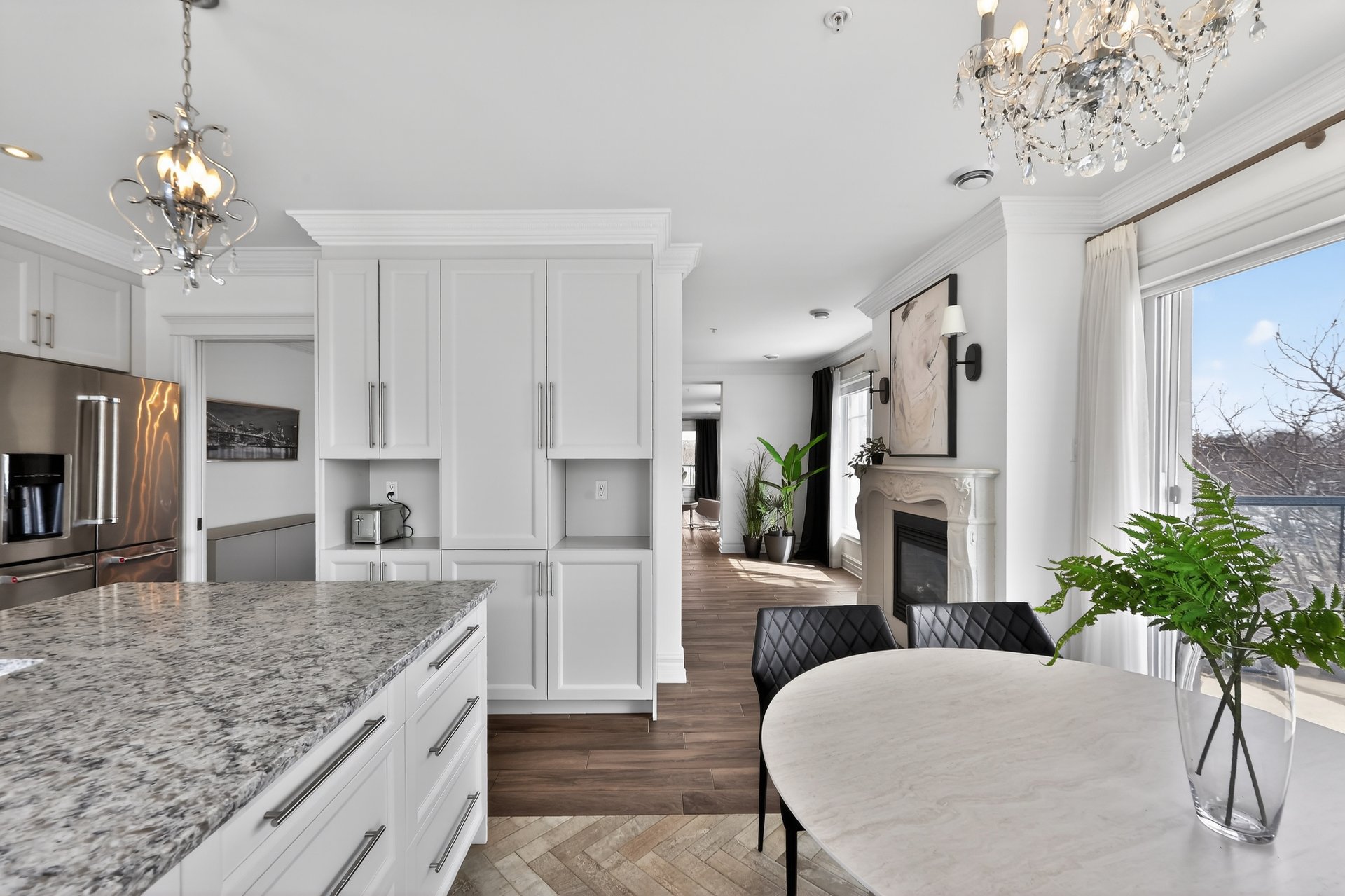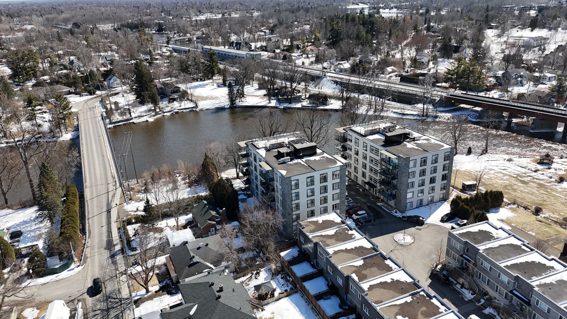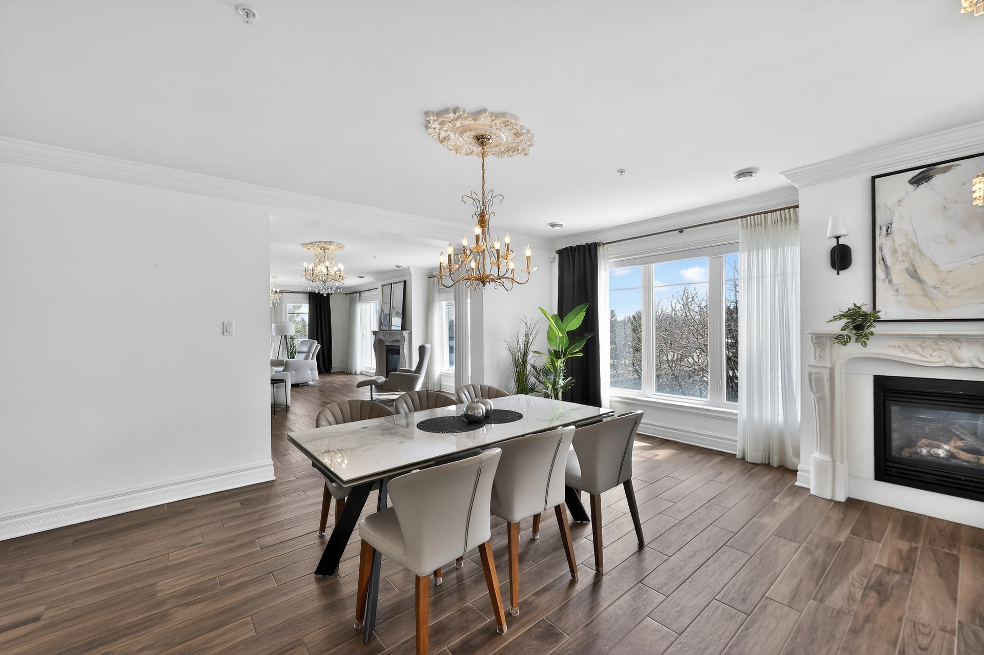 Boasting an exceptional location along the Rivière des Prairies, this 4th-floor condo offers breathtaking views and remarkable natural light thanks to its abundant windows. Spacious living area with an open-concept living and dining room, a gas fireplace, and access to the balcony. Modern kitchen with quartz countertops and a large island. Includes 3 bedrooms, 2 full bathrooms, and 1 half-bath. Master bedroom with walk-in closet. Two large corner balconies, central air conditioning, gas heating, BBQ outlet, 2 garages, 2 storage units, and a shared rooftop terrace.