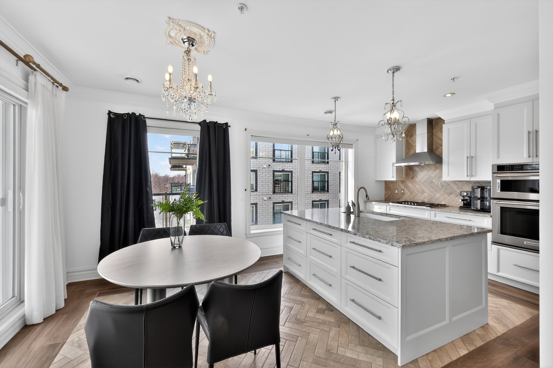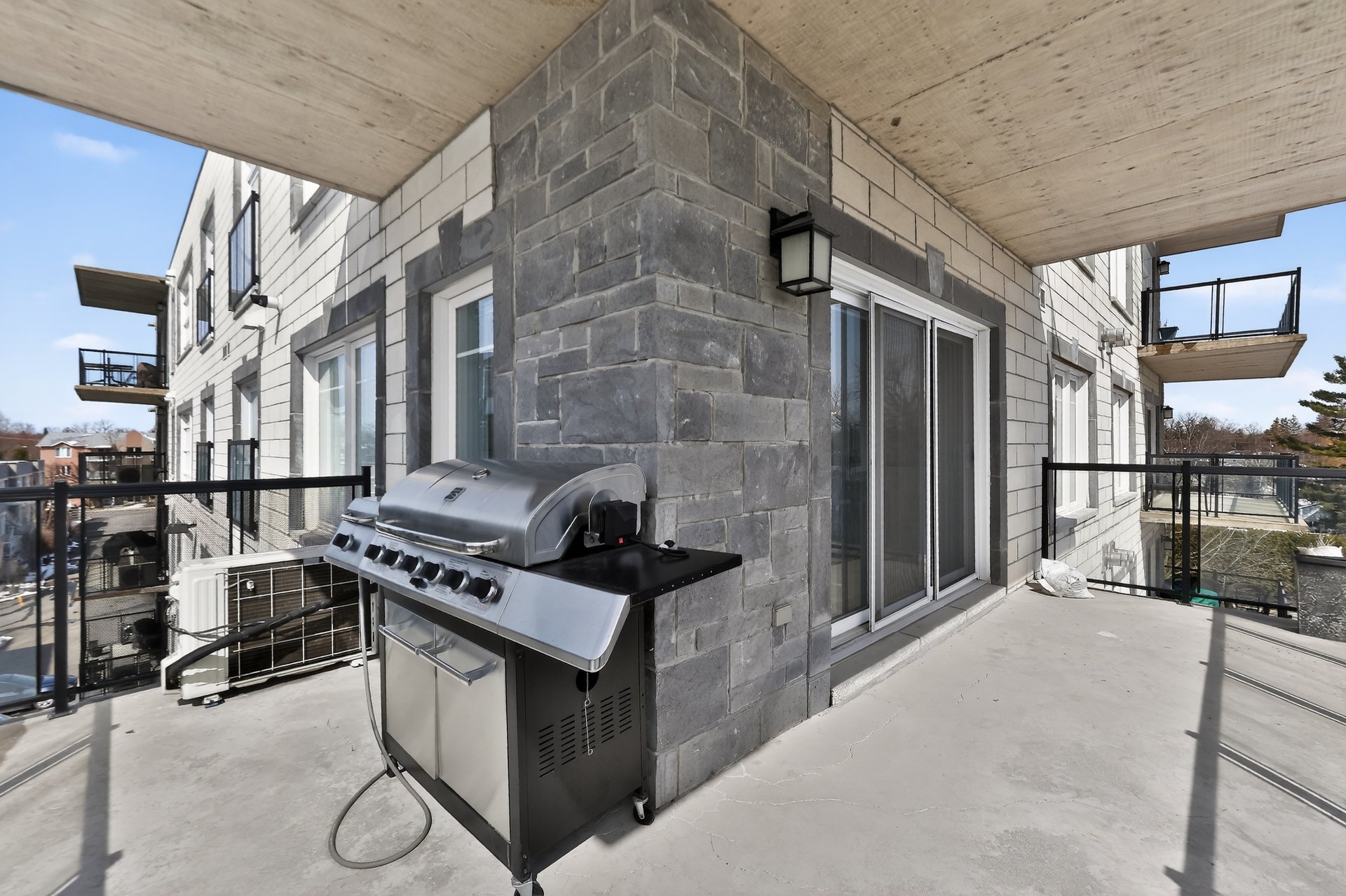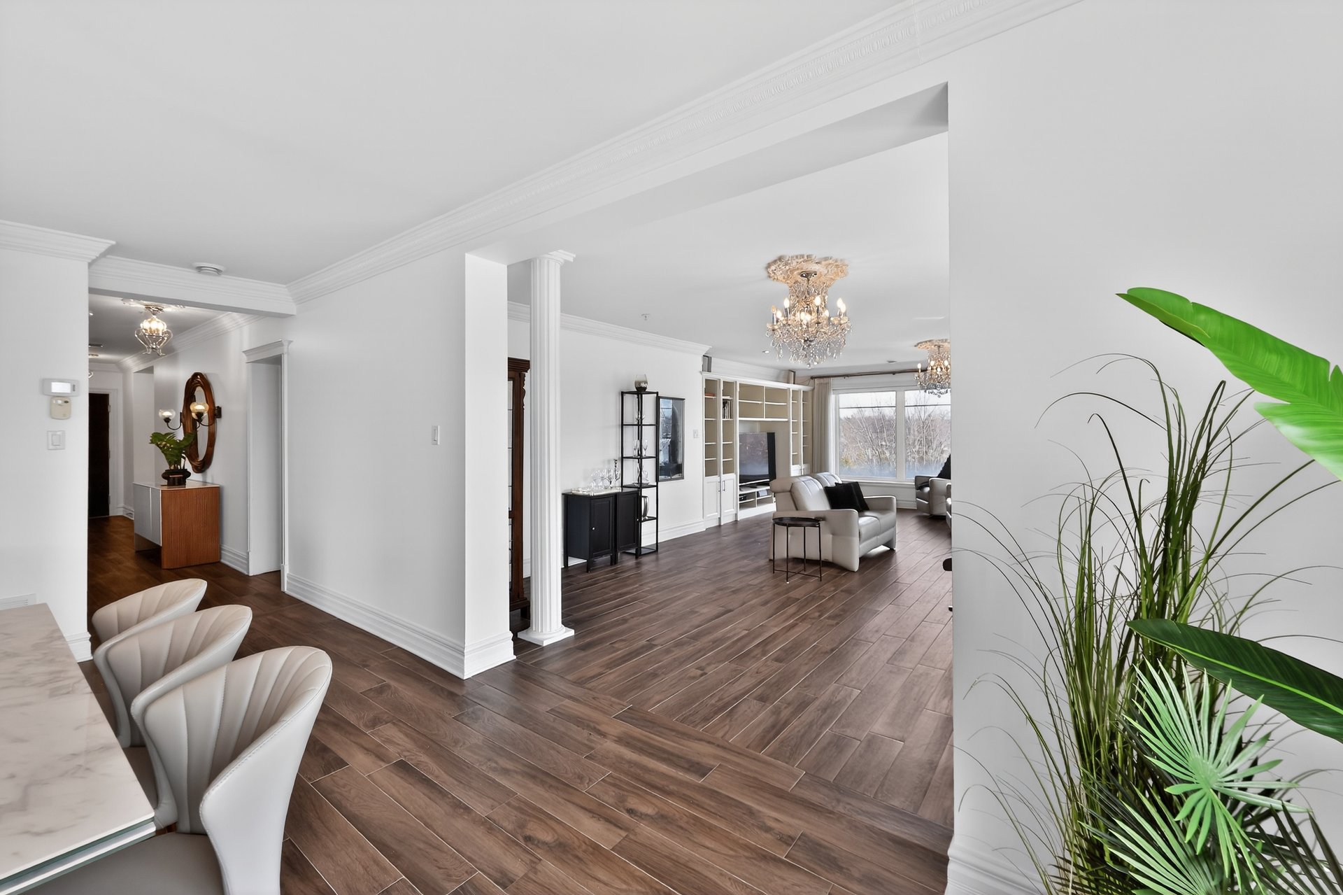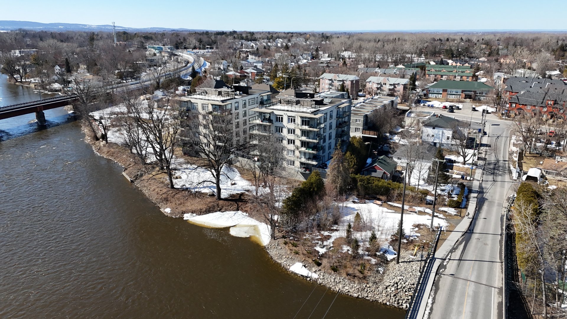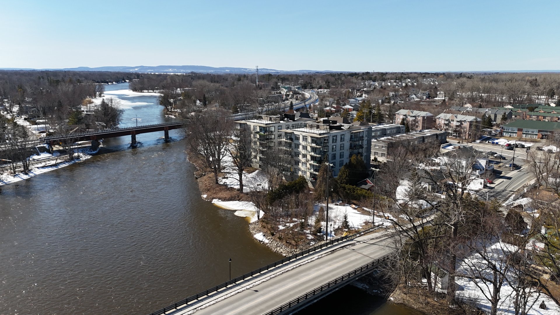 Boasting an exceptional location along the Rivière des Prairies, this 4th-floor condo offers breathtaking views and remarkable natural light thanks to its abundant windows. Spacious living area with an open-concept living and dining room, a gas fireplace, and access to the balcony. Modern kitchen with quartz countertops and a large island. Includes 3 bedrooms, 2 full bathrooms, and 1 half-bath. Master bedroom with walk-in closet. Two large corner balconies, central air conditioning, gas heating, BBQ outlet, 2 garages, 2 storage units, and a shared rooftop terrace.