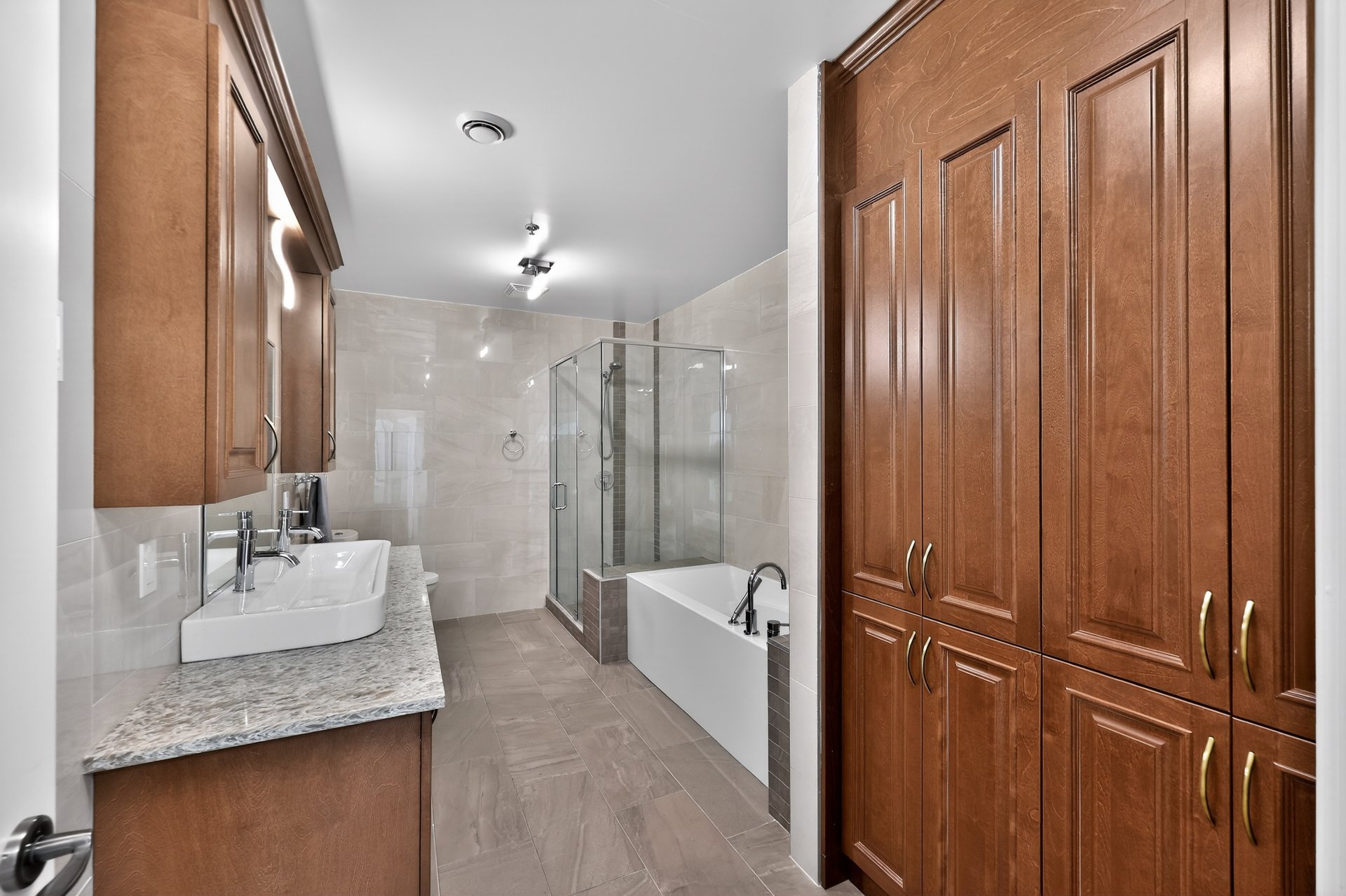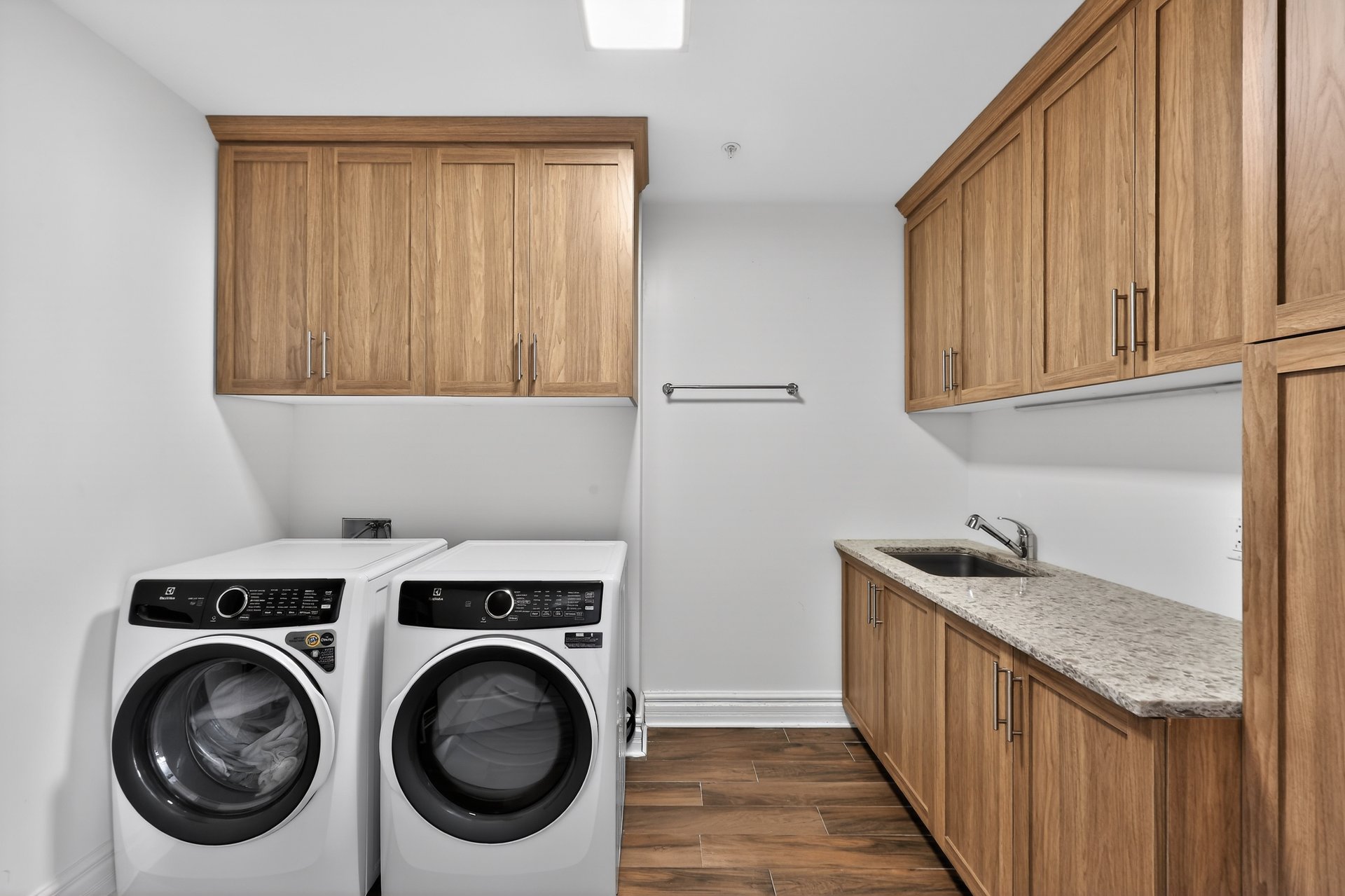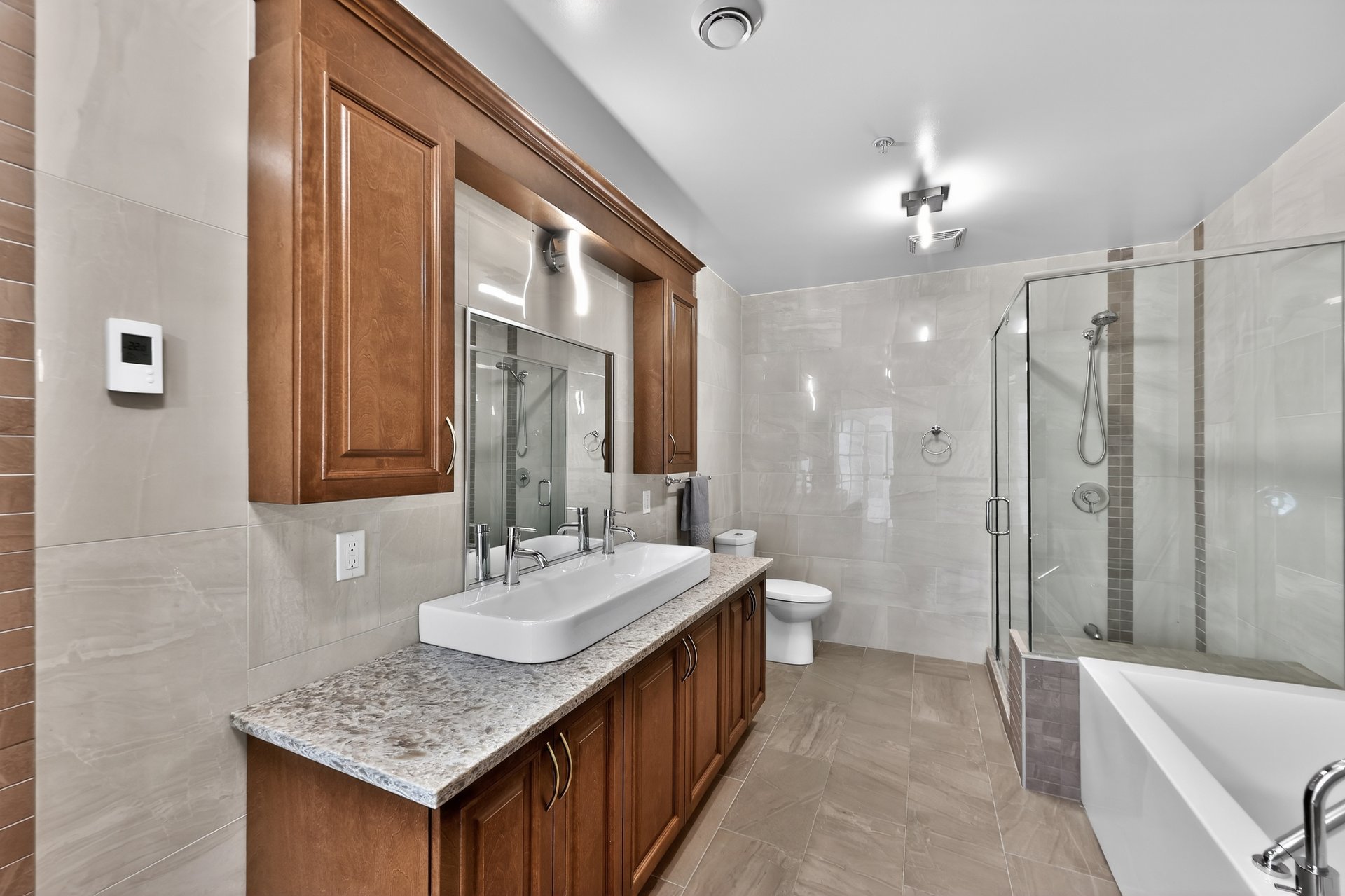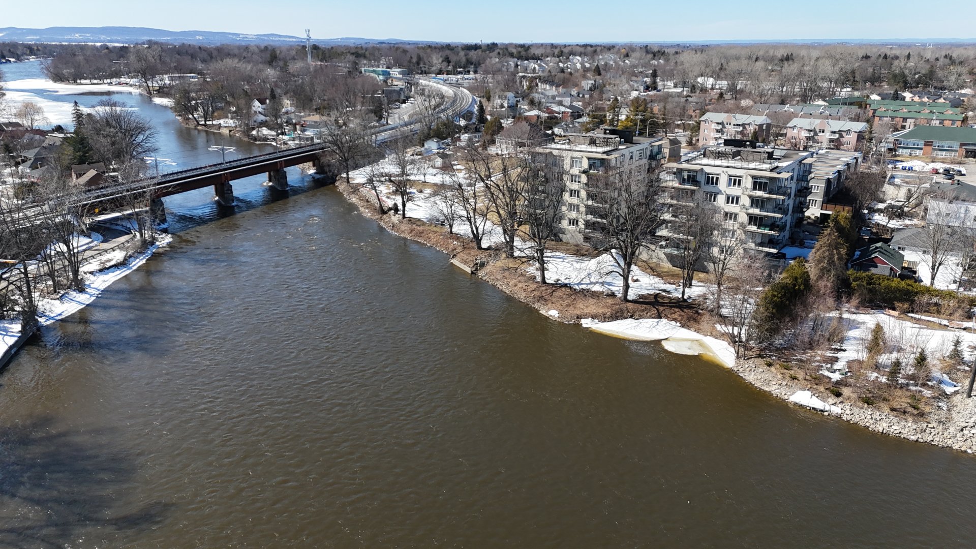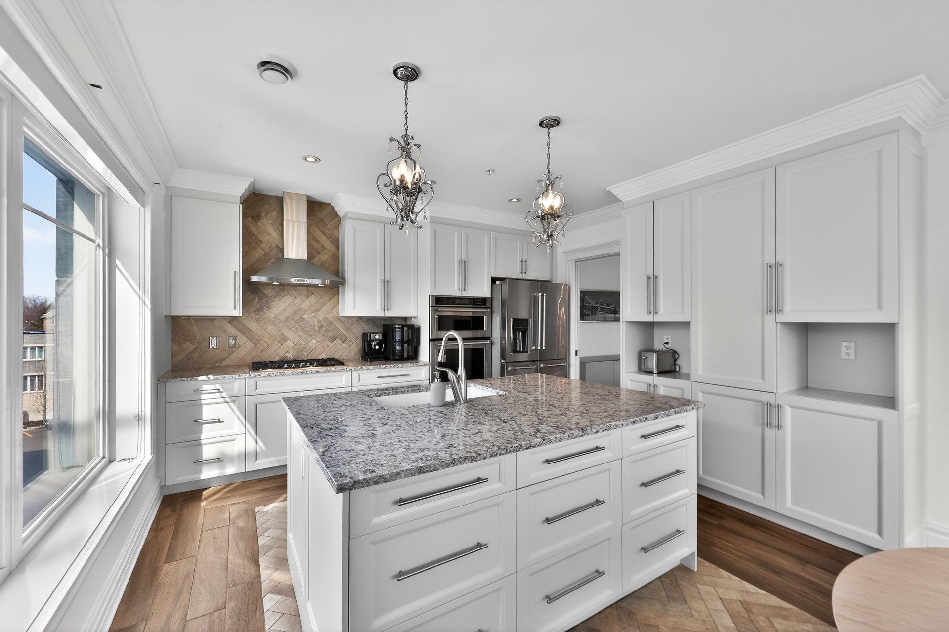 Boasting an exceptional location along the Rivière des Prairies, this 4th-floor condo offers breathtaking views and remarkable natural light thanks to its abundant windows. Spacious living area with an open-concept living and dining room, a gas fireplace, and access to the balcony. Modern kitchen with quartz countertops and a large island. Includes 3 bedrooms, 2 full bathrooms, and 1 half-bath. Master bedroom with walk-in closet. Two large corner balconies, central air conditioning, gas heating, BBQ outlet, 2 garages, 2 storage units, and a shared rooftop terrace.