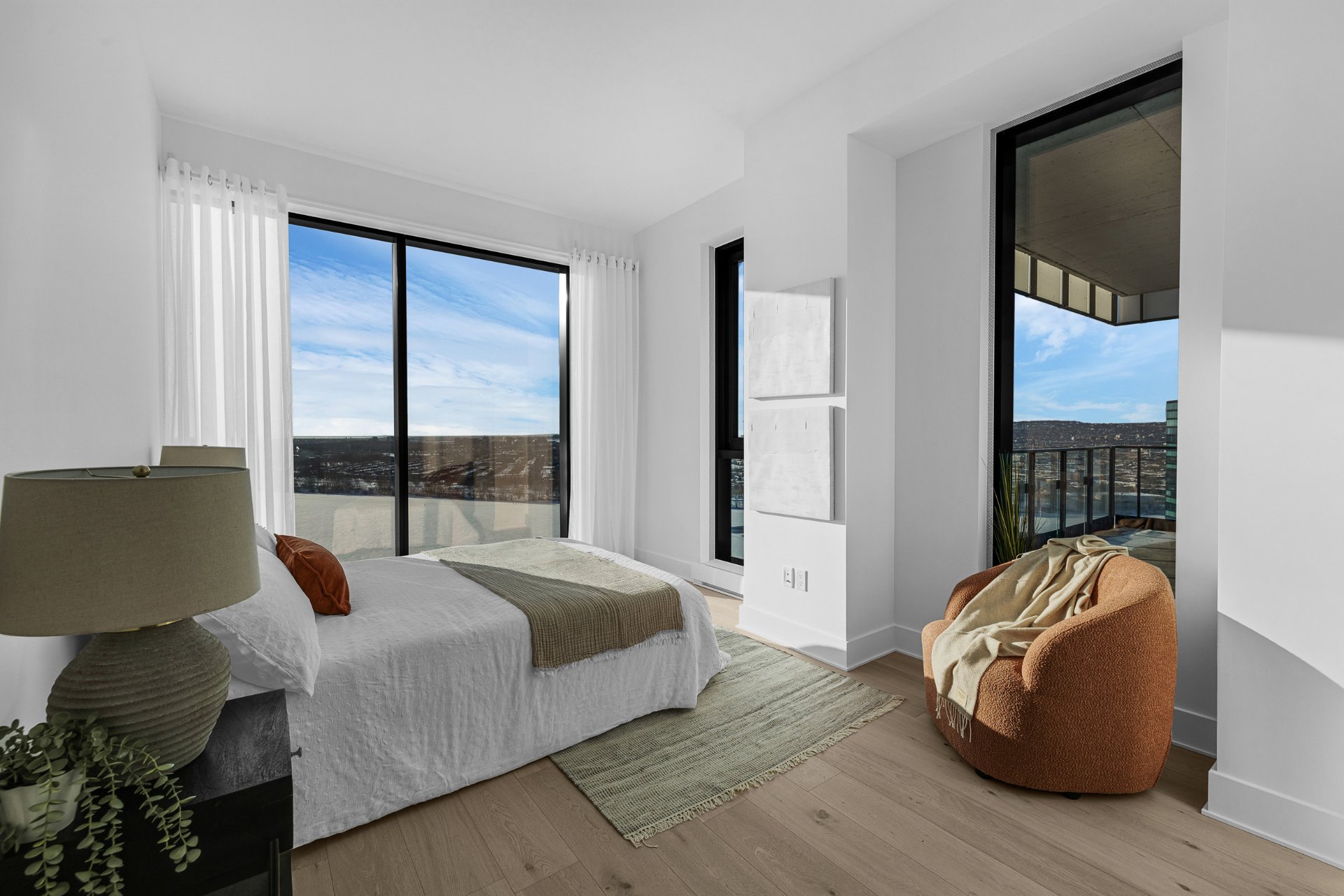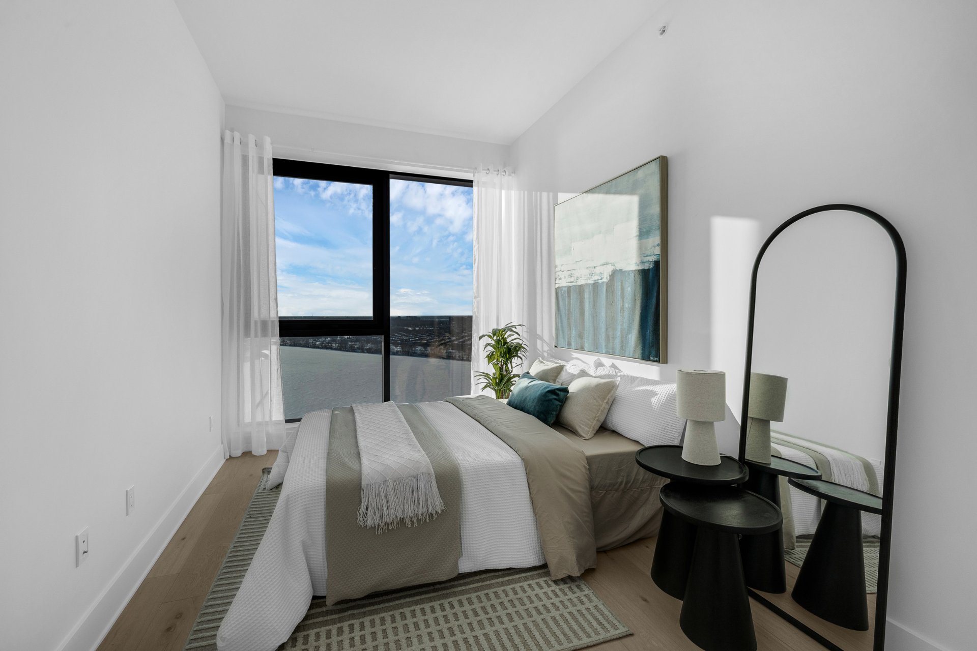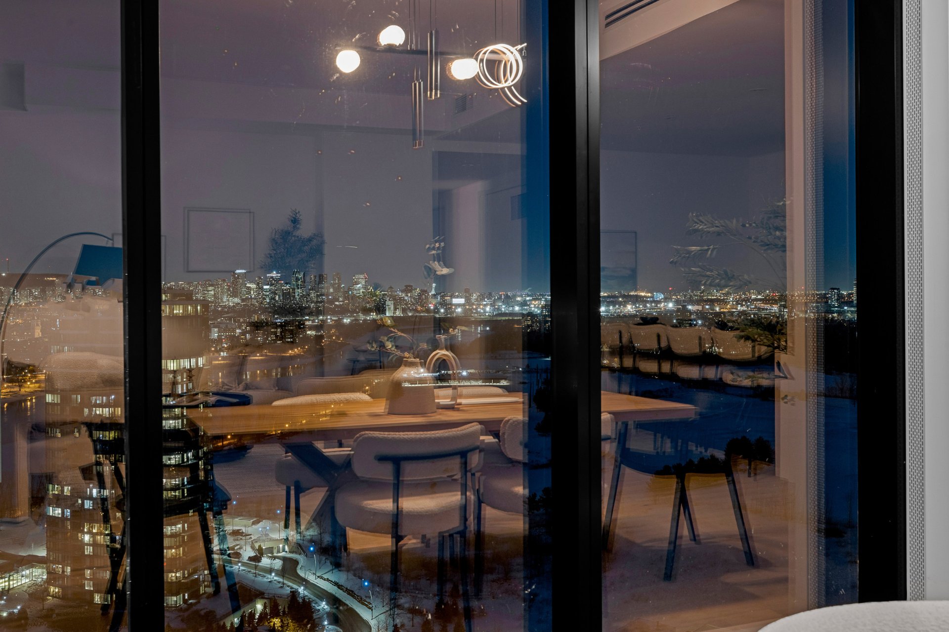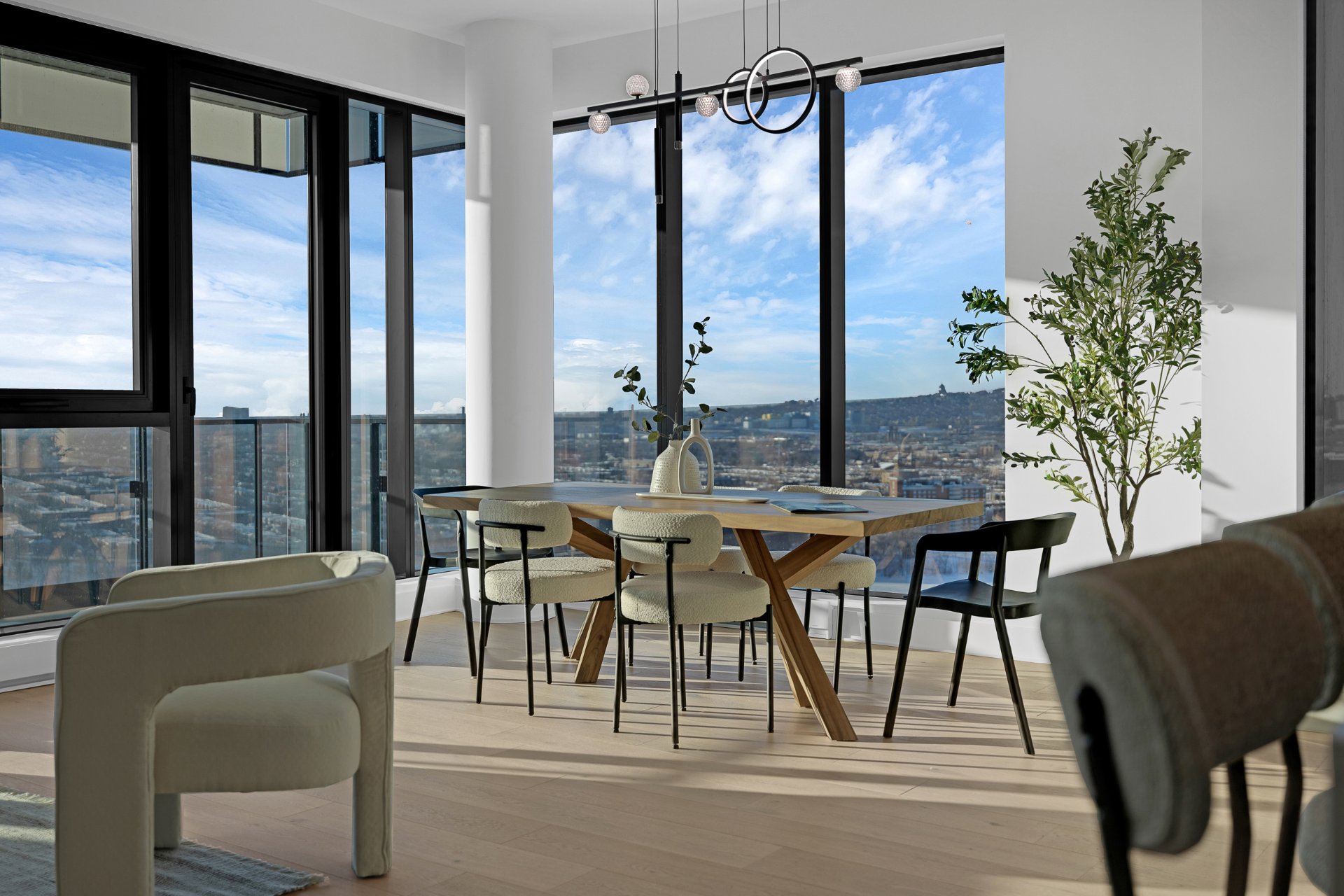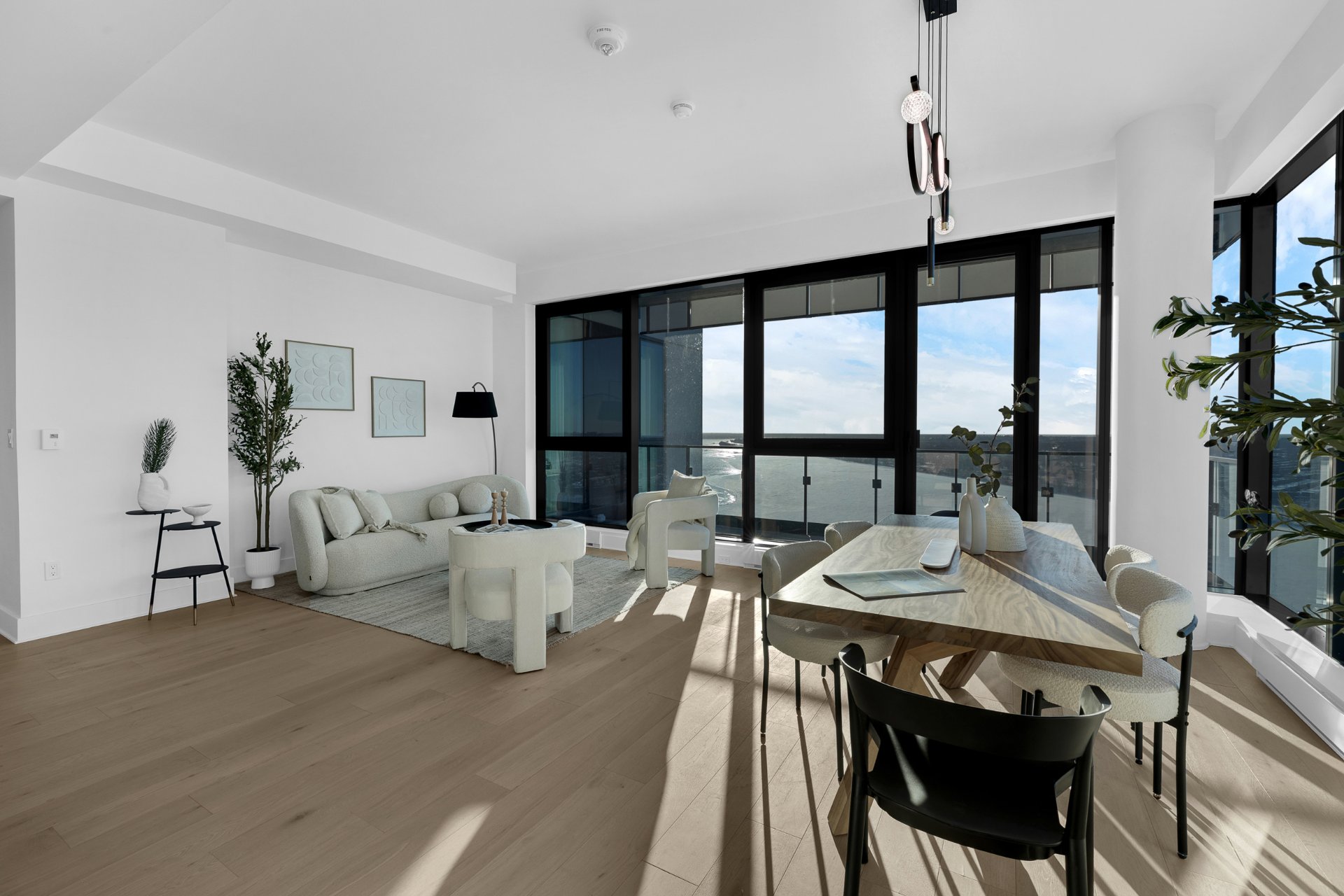 this exceptional high-floor residence at Symphonia VIU commands breathtaking, uninterrupted panoramic views of the St. Lawrence River, the golf course, and the Montréal skyline. Showcasing 10-foot ceilings and refined, penthouse-caliber finishes throughout, the residence has been thoughtfully enhanced with elegant contemporary staging, creating a sophisticated interplay of scale, natural light, and privacy. This presentation captures the true essence of the residence as it can be experienced in real life, while embodying the refined lifestyle and architectural distinction of one of Nuns' Island's most prestigious addresses.