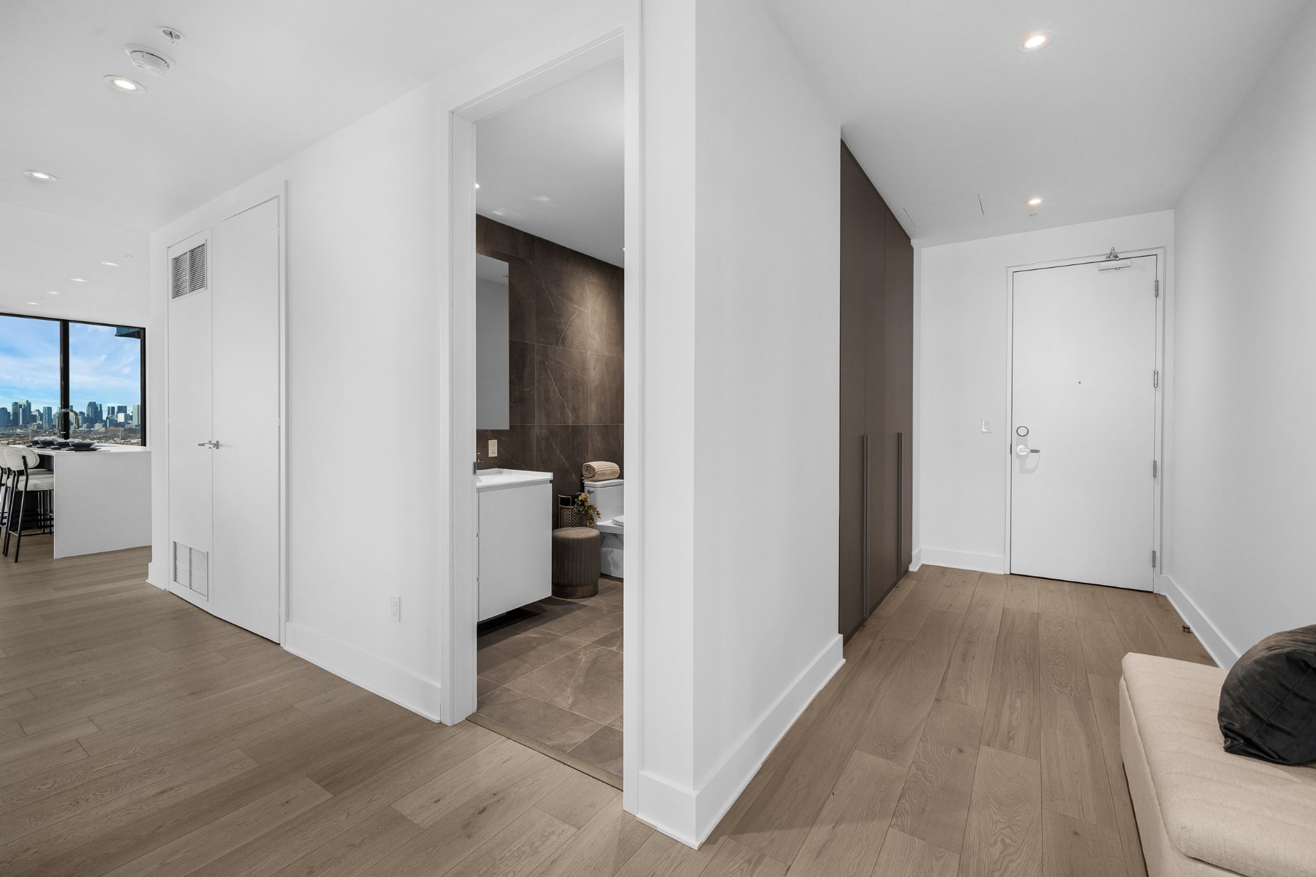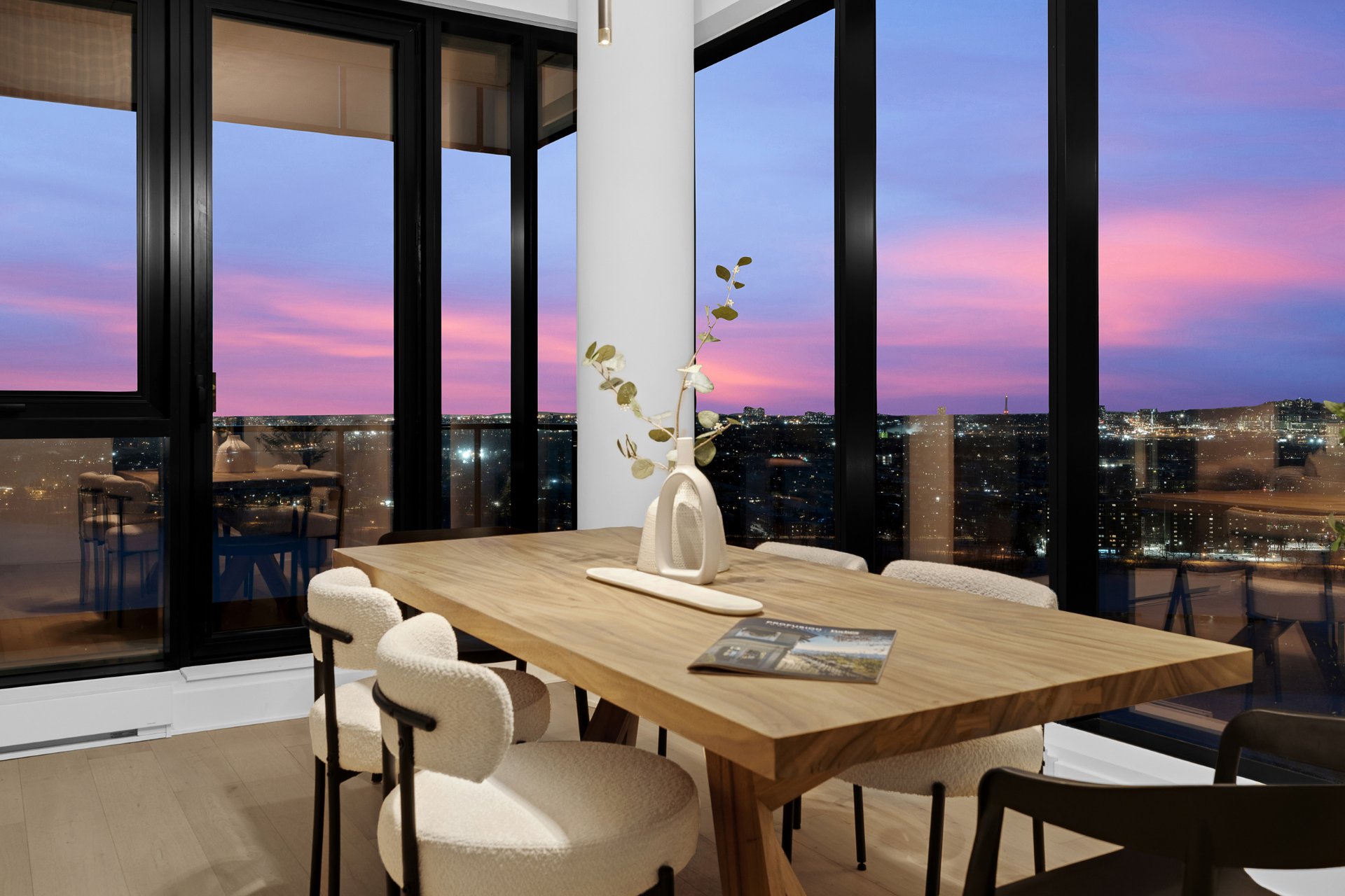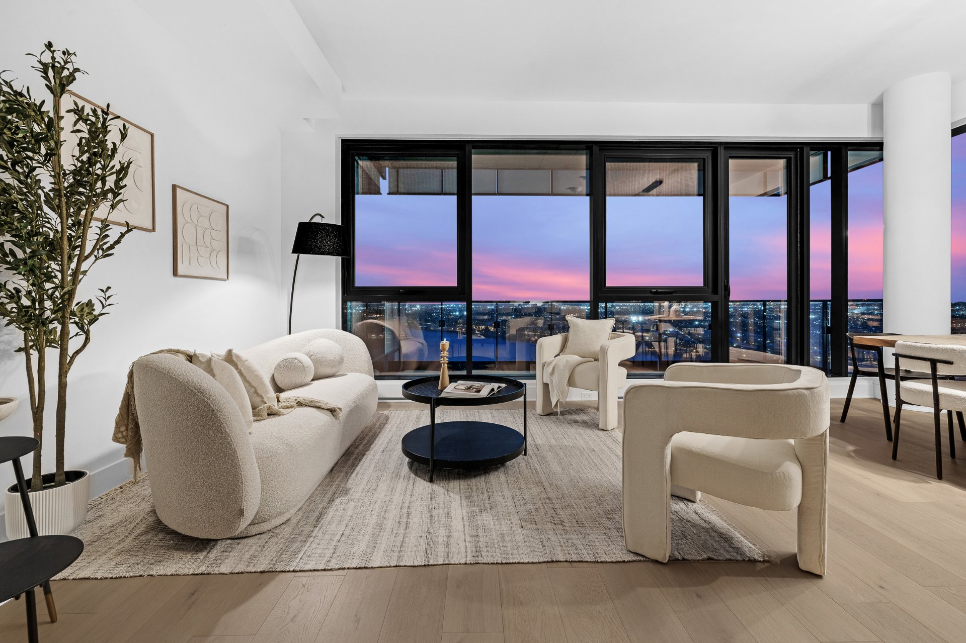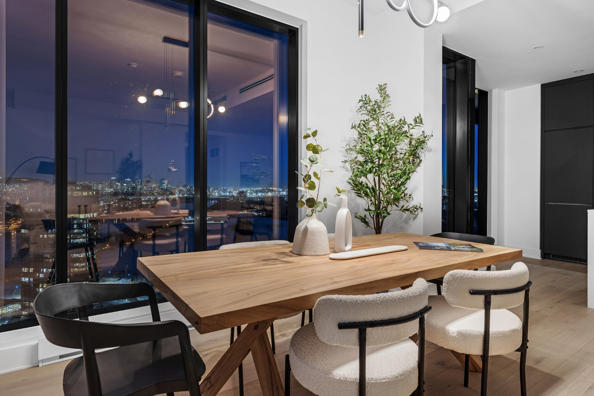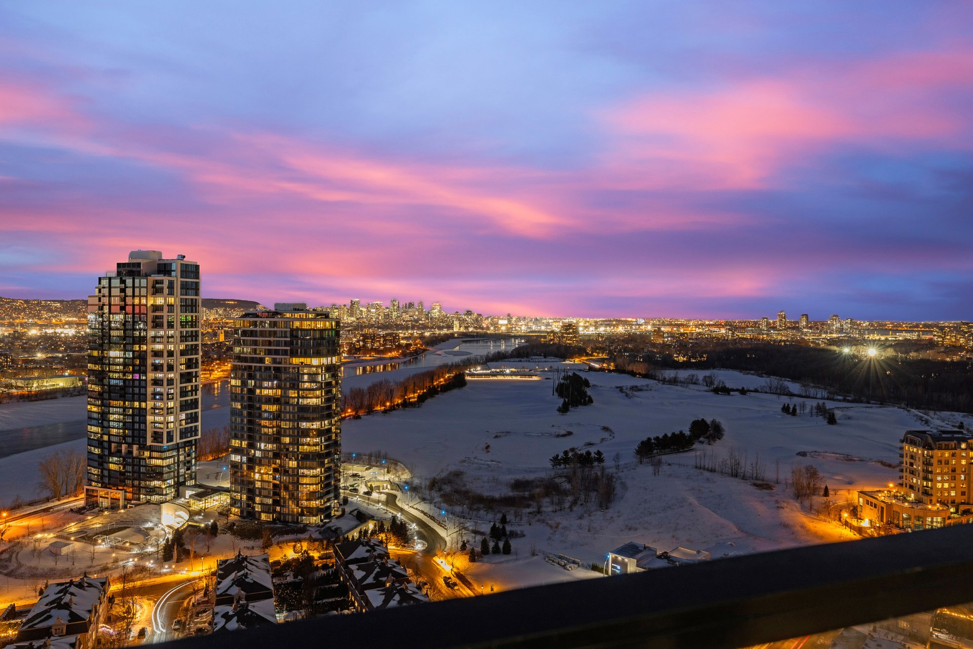 this exceptional high-floor residence at Symphonia VIU commands breathtaking, uninterrupted panoramic views of the St. Lawrence River, the golf course, and the Montréal skyline. Showcasing 10-foot ceilings and refined, penthouse-caliber finishes throughout, the residence has been thoughtfully enhanced with elegant contemporary staging, creating a sophisticated interplay of scale, natural light, and privacy. This presentation captures the true essence of the residence as it can be experienced in real life, while embodying the refined lifestyle and architectural distinction of one of Nuns' Island's most prestigious addresses.