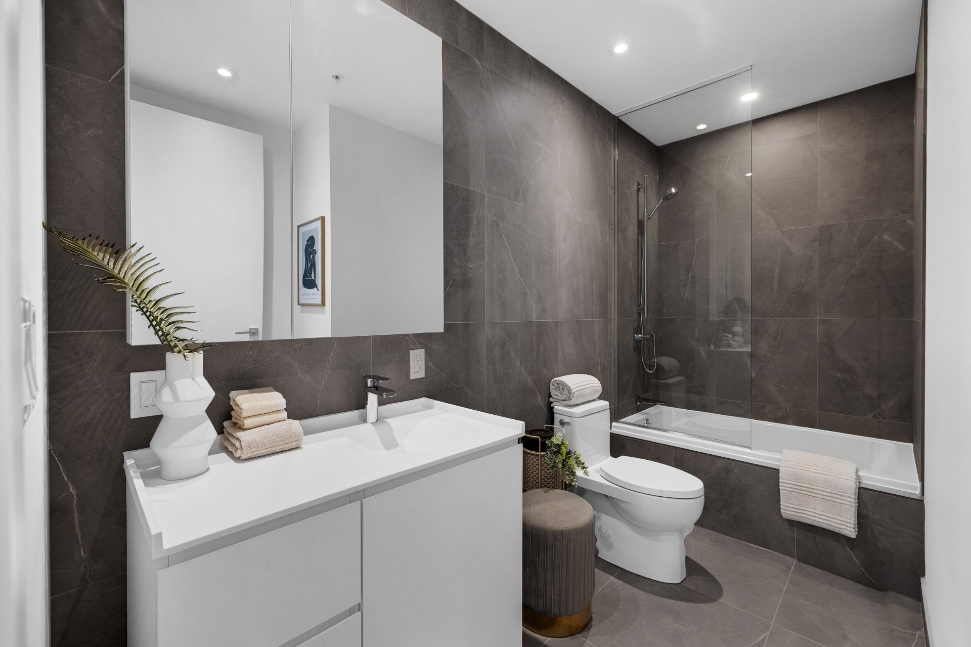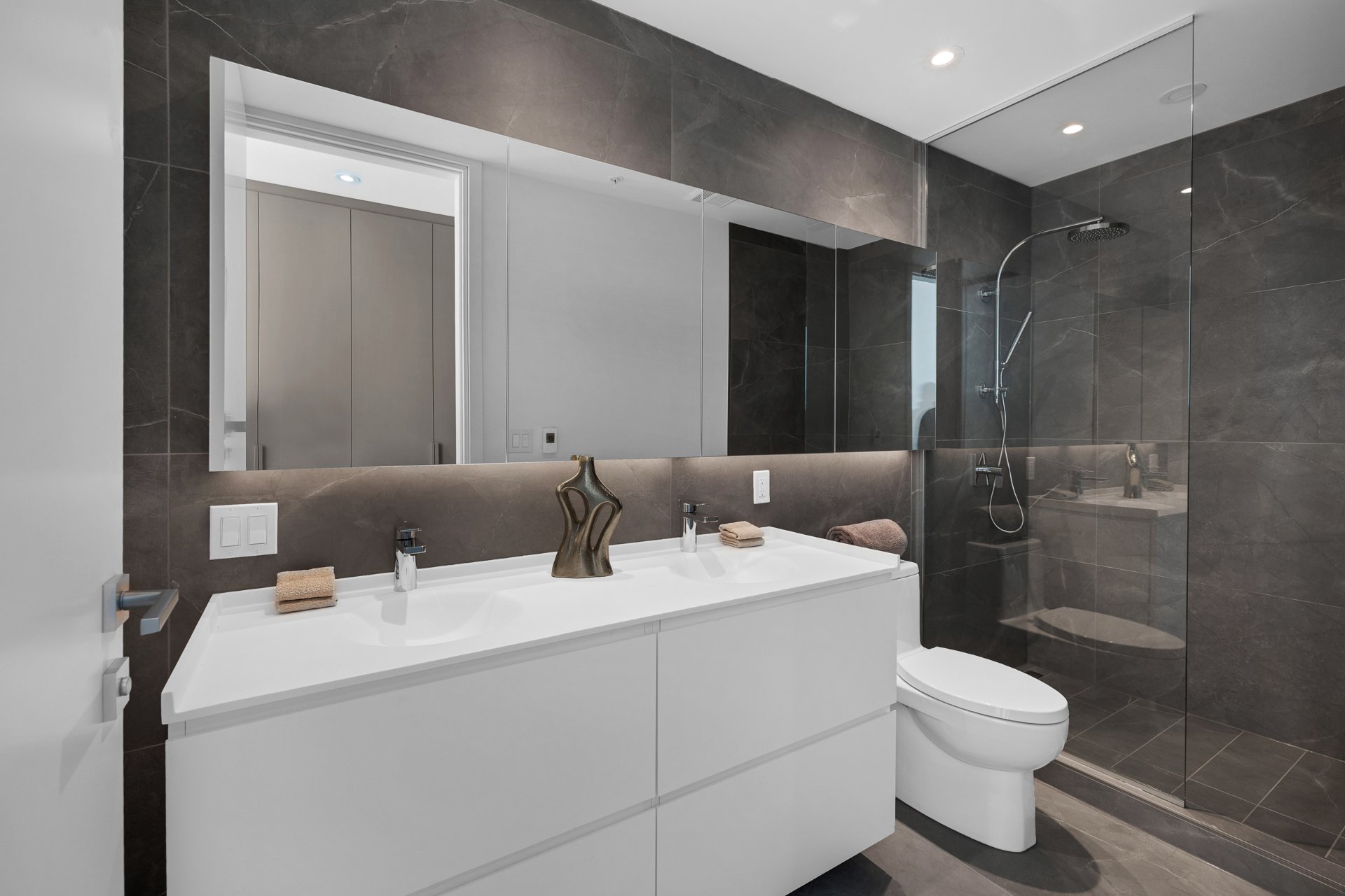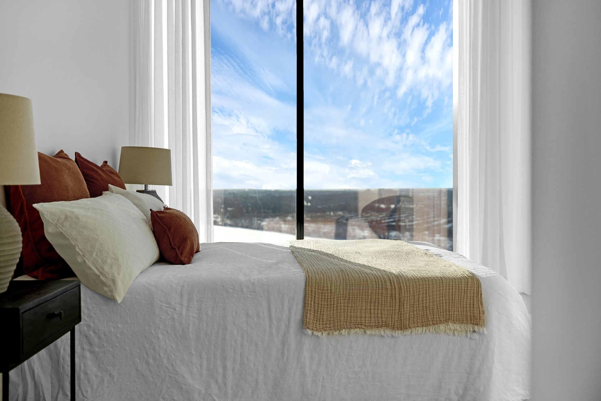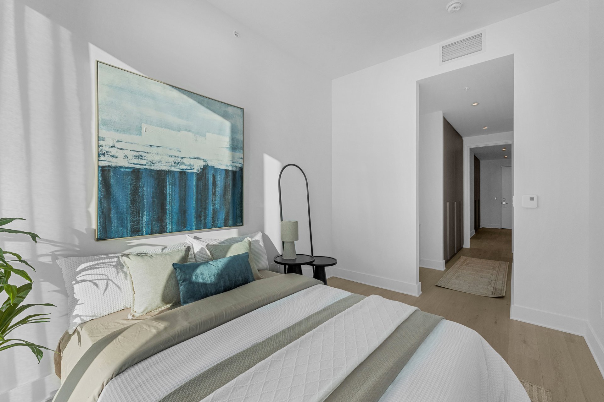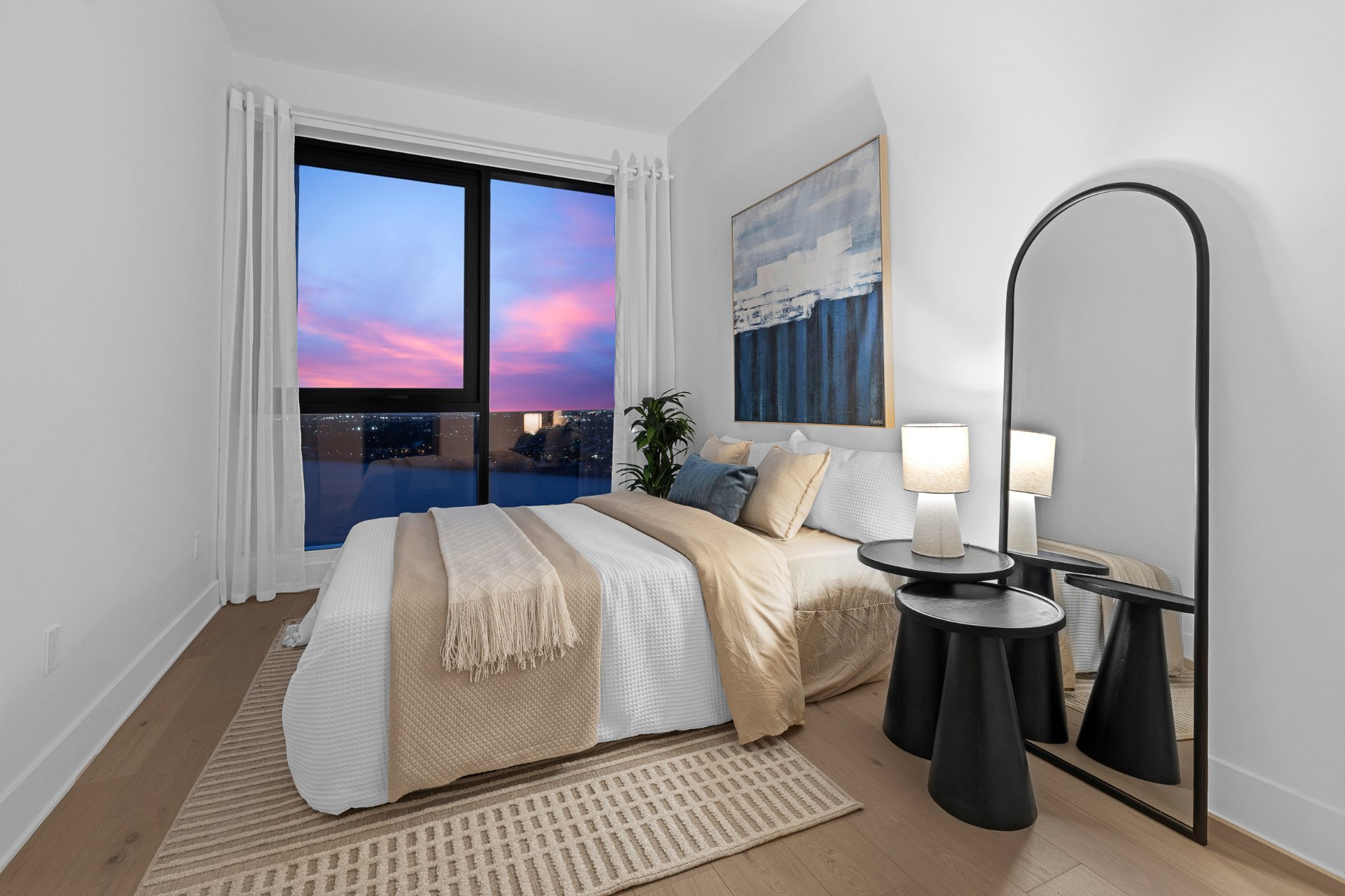 this exceptional high-floor residence at Symphonia VIU commands breathtaking, uninterrupted panoramic views of the St. Lawrence River, the golf course, and the Montréal skyline. Showcasing 10-foot ceilings and refined, penthouse-caliber finishes throughout, the residence has been thoughtfully enhanced with elegant contemporary staging, creating a sophisticated interplay of scale, natural light, and privacy. This presentation captures the true essence of the residence as it can be experienced in real life, while embodying the refined lifestyle and architectural distinction of one of Nuns' Island's most prestigious addresses.