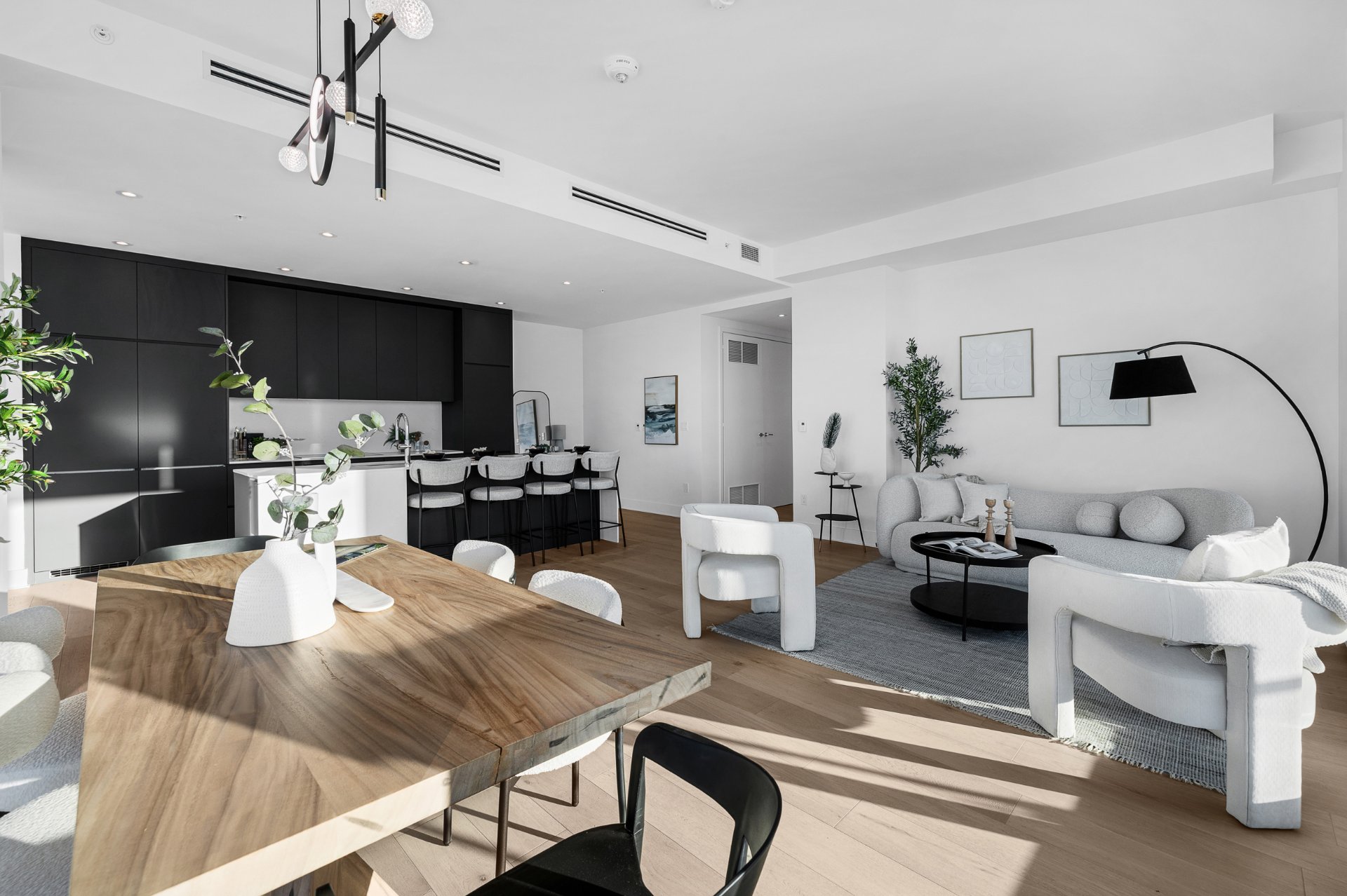 The open-concept living area impresses with its clean lines