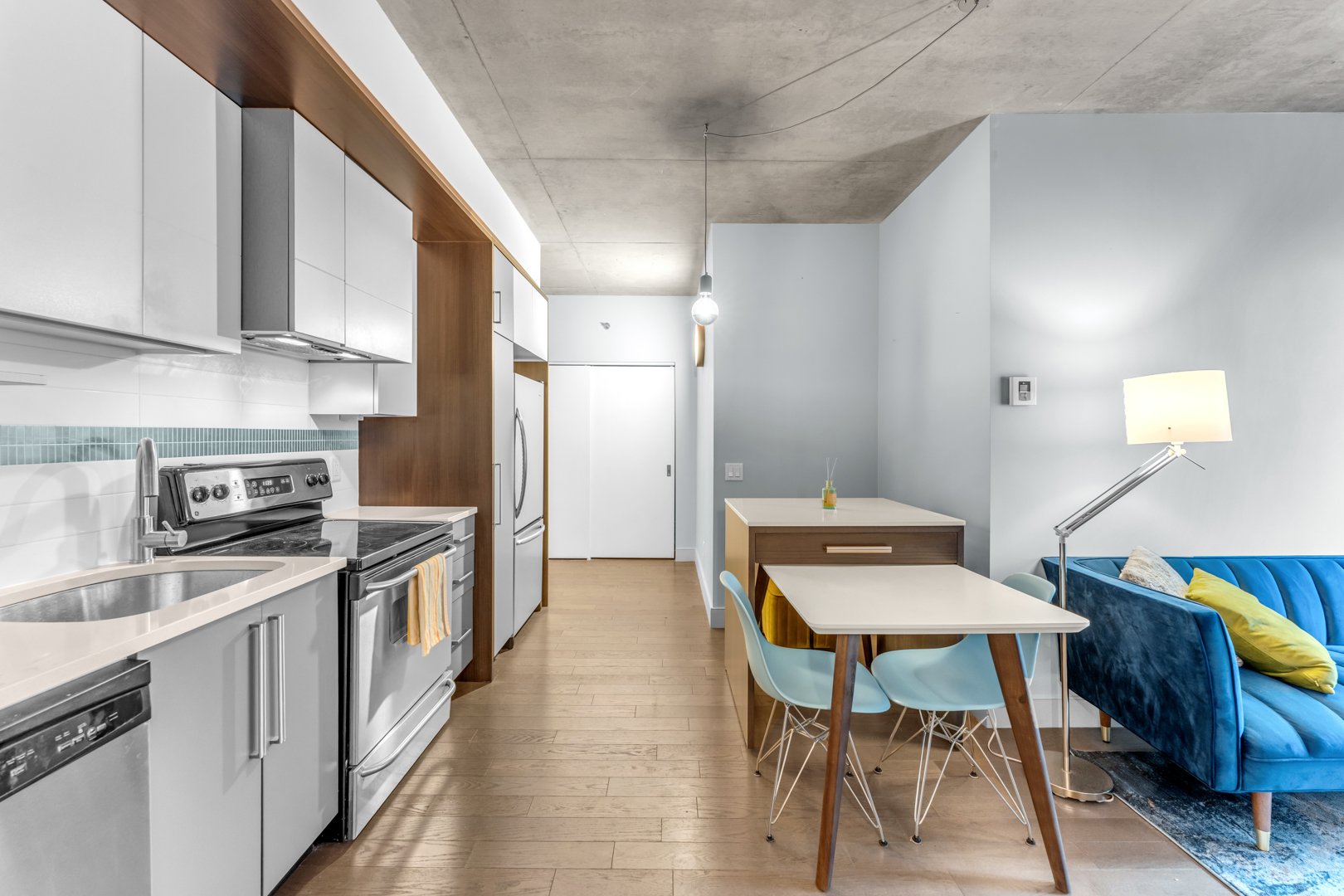 This building is located in a sought-after neighborhood of Rosemont and offers a pleasant living environment. The building features several amenities, including pet-friendly policies, a fitness center, a heated indoor pool, and a community garden.
