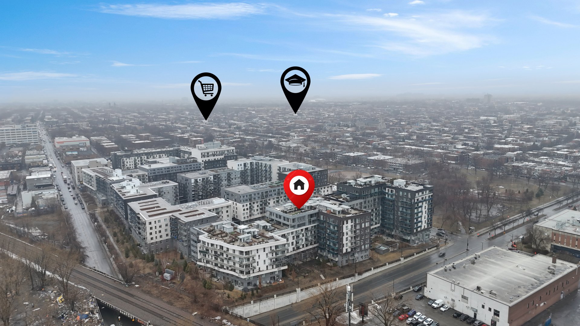 Bicycle path, Cegep, Daycare centre, Elementary school, High school, Highway, Hospital, Park - green area, Public transport