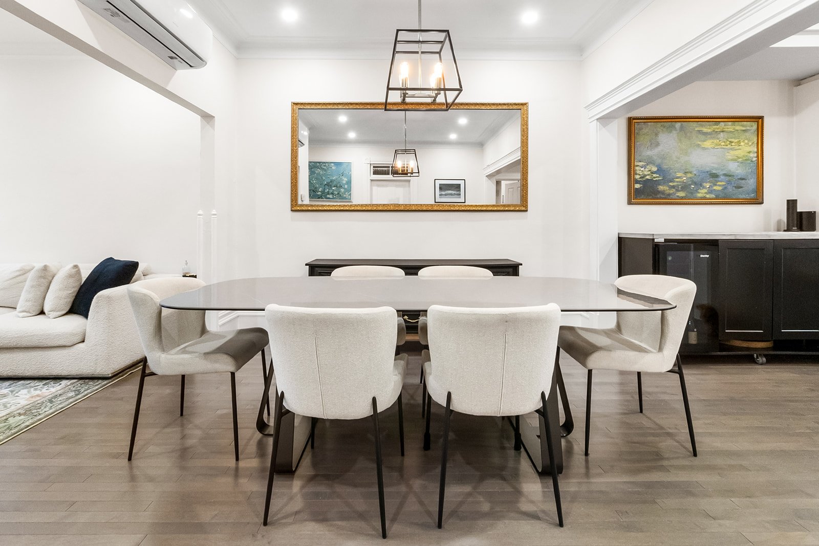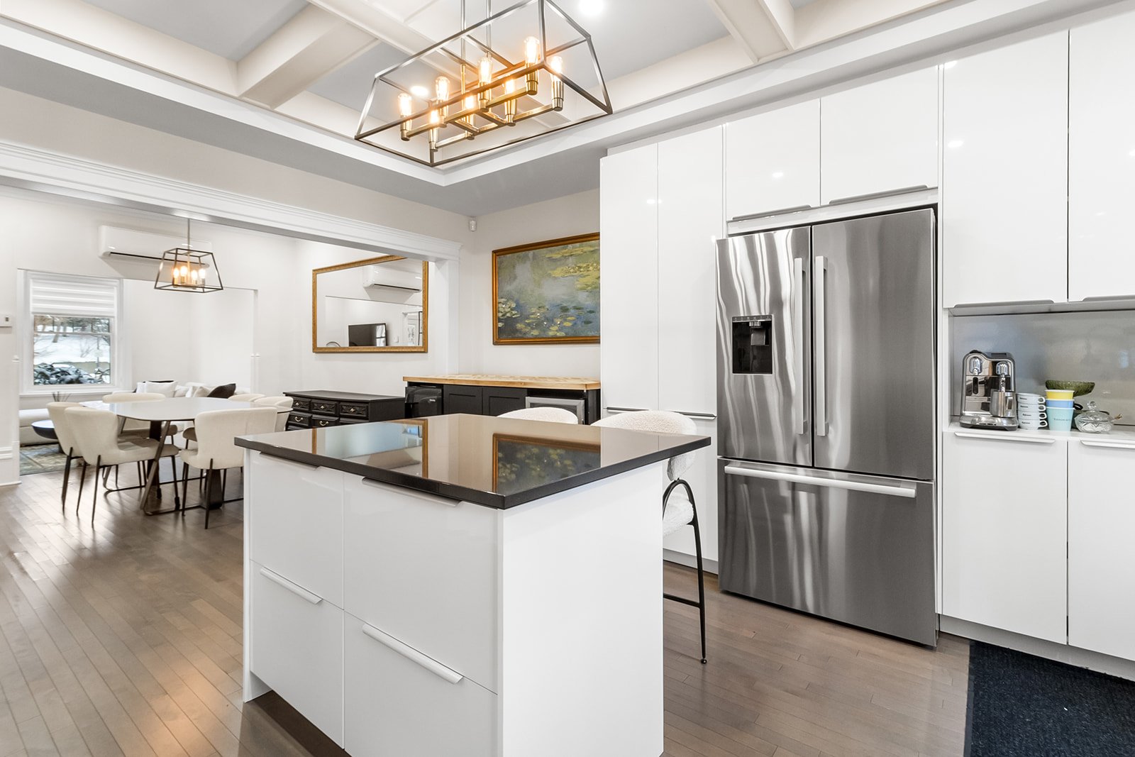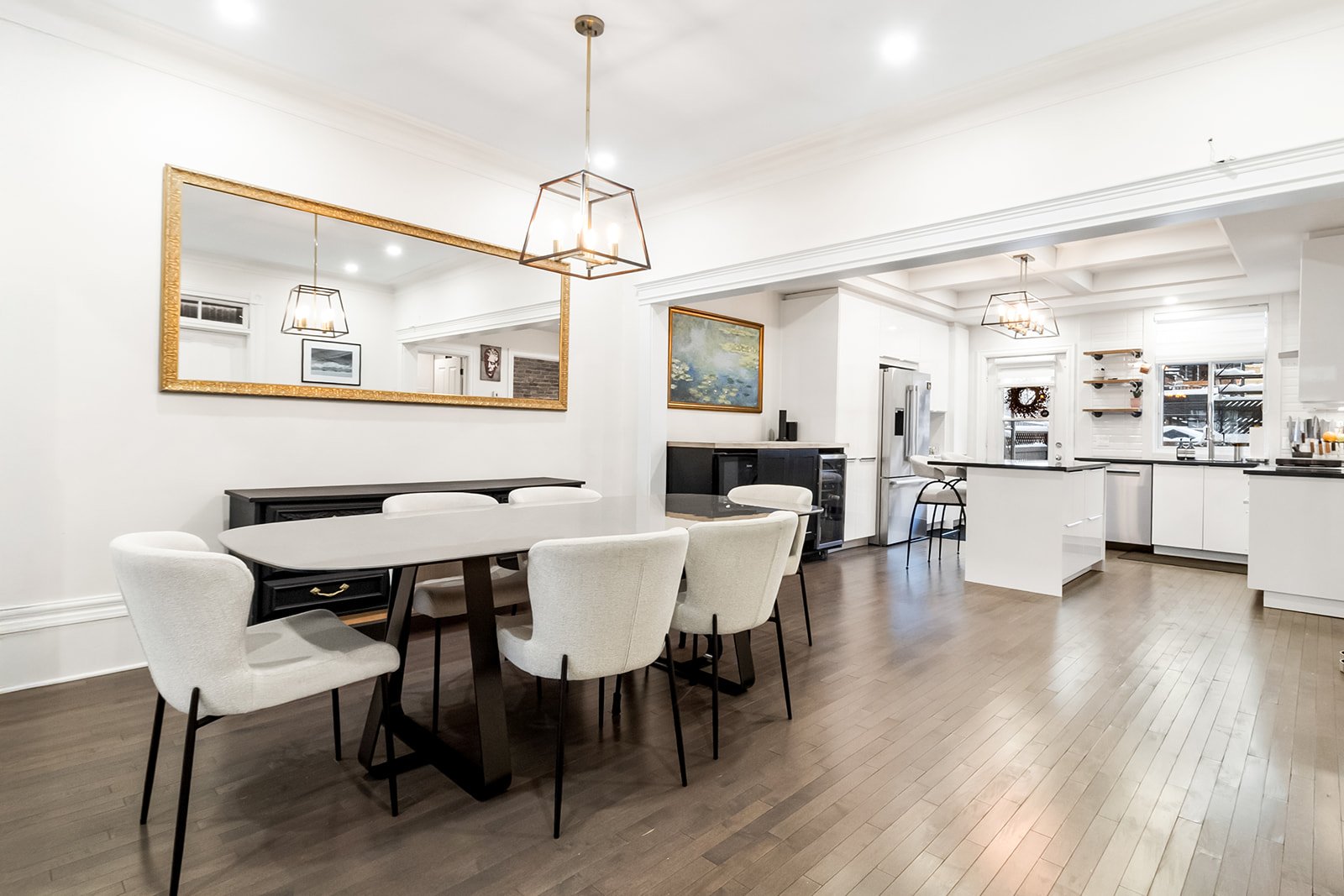 and elegant finishes. The open-concept living and dining
