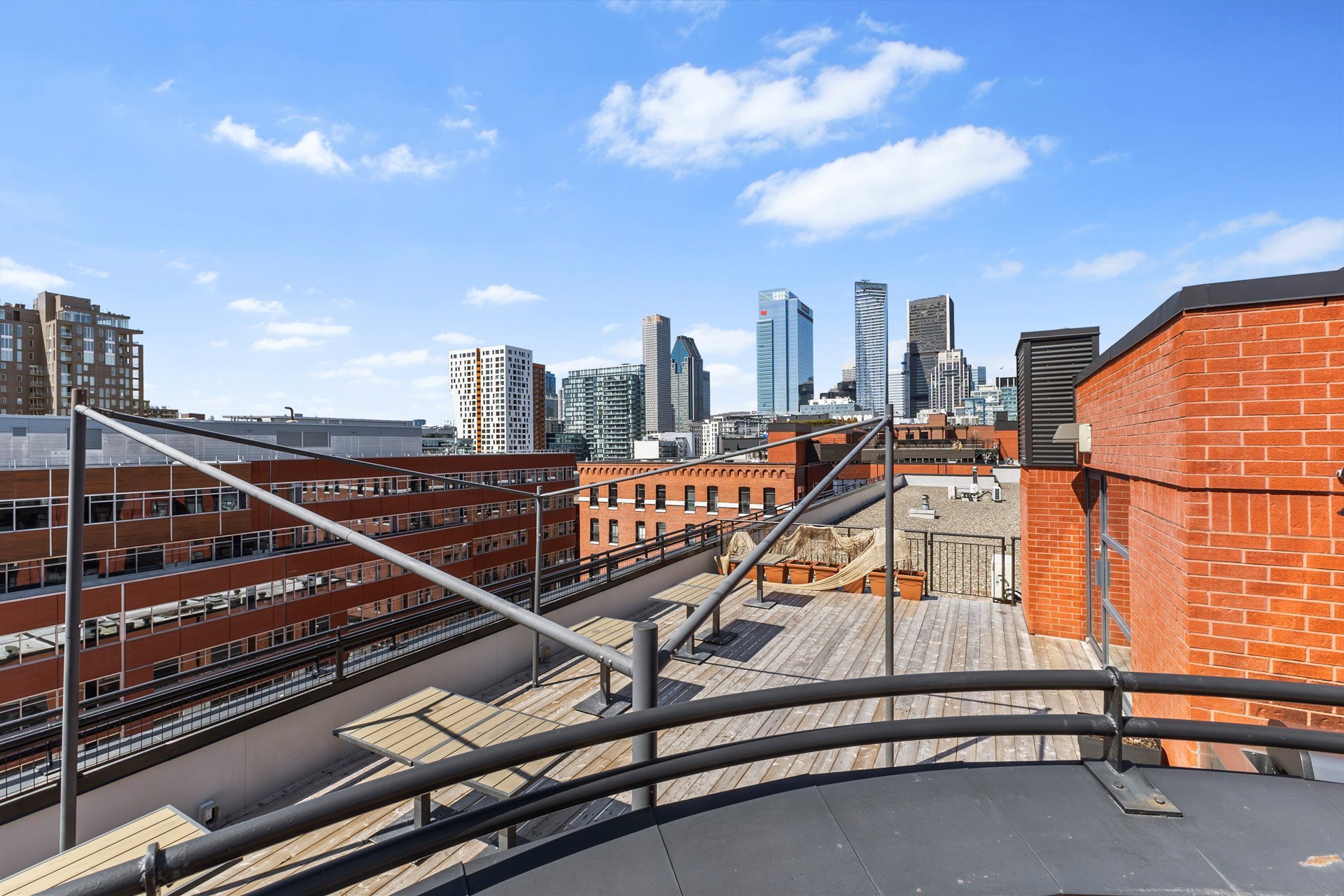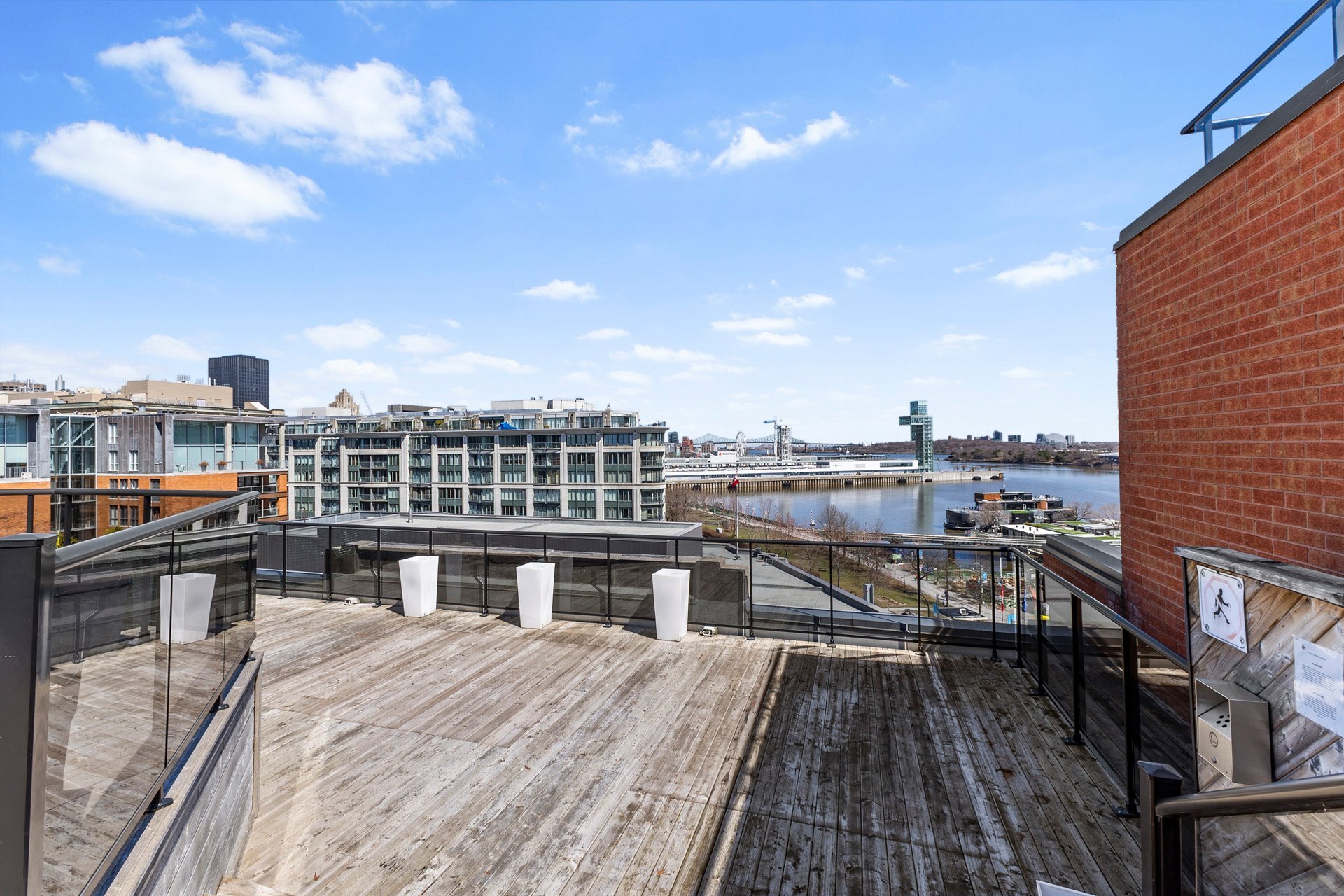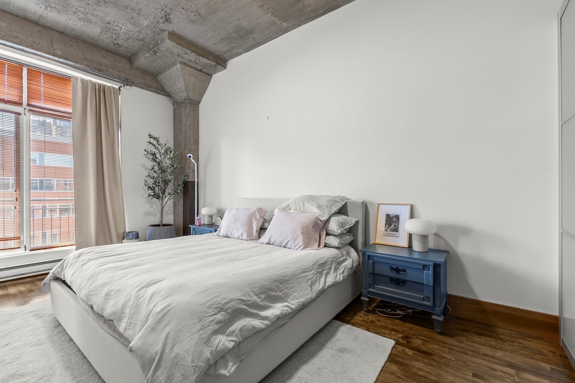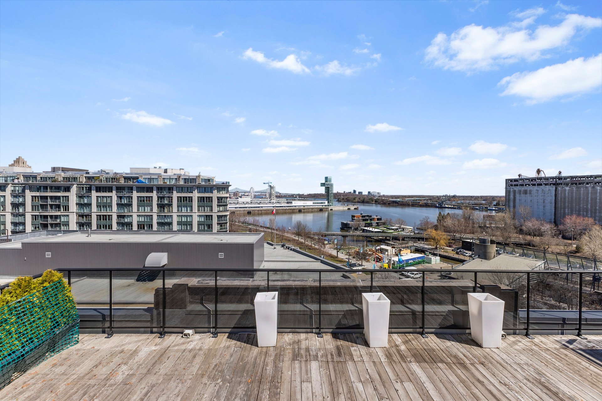 Rare 1,667 sq.ft. two-level condo in Old Montreal, created by combining 2 units. Bright upper-level living space with skylight, open concept, 10'8 concrete ceilings, gas fireplace, and balcony with west exposure. Lower level offers family room, 2 bedrooms, and 2nd bath. Includes 2 indoor parking spaces + 2 lockers. Rooftop terrace with pool and stunning water views. Walk Score 95+ near shops, dining & Bonaventure Metro Station. Unique opportunity in Montreal's sought-after Old Port.