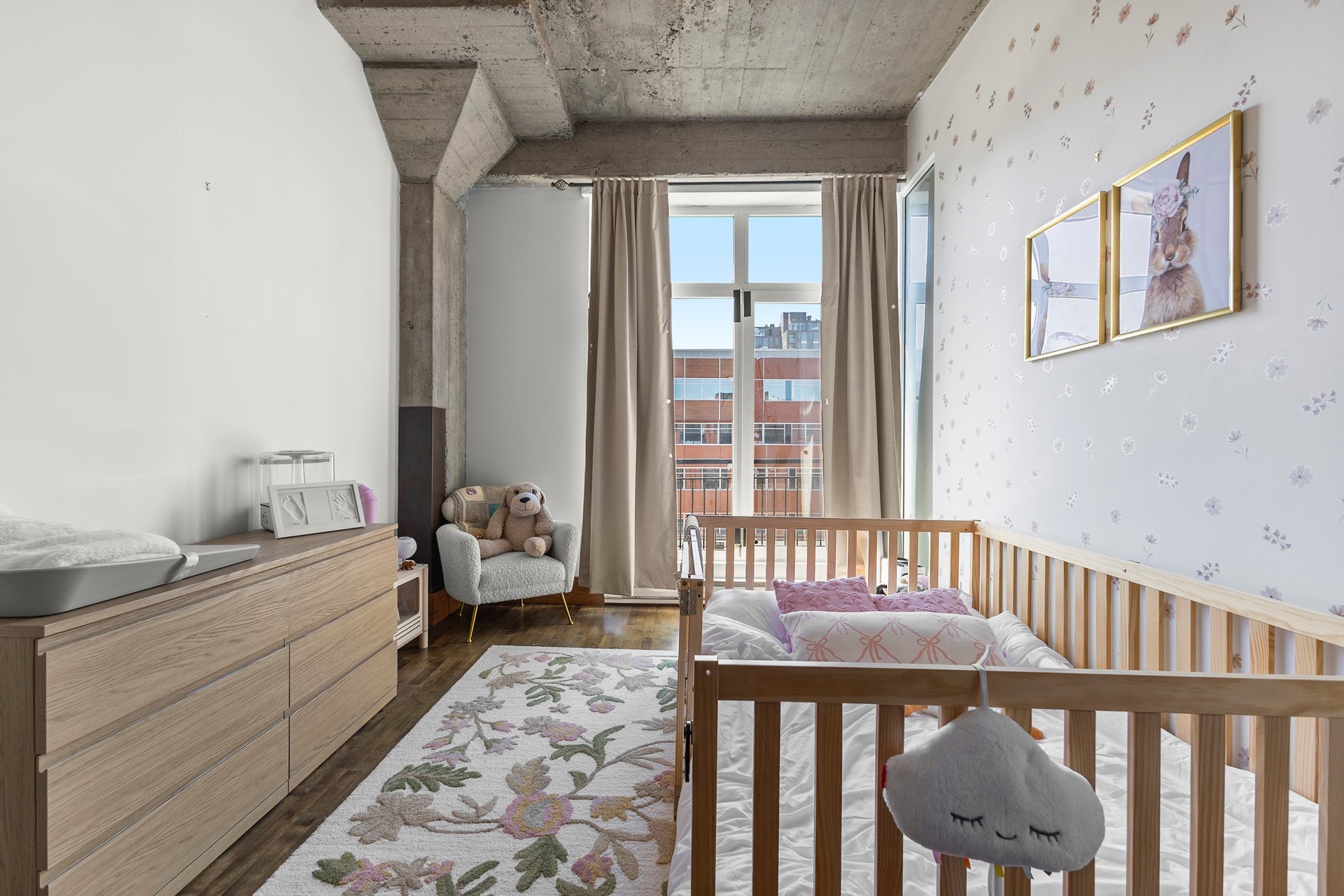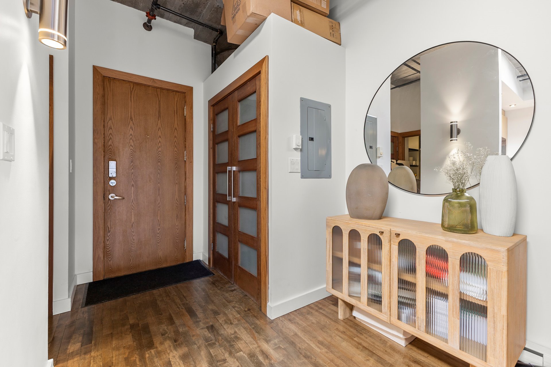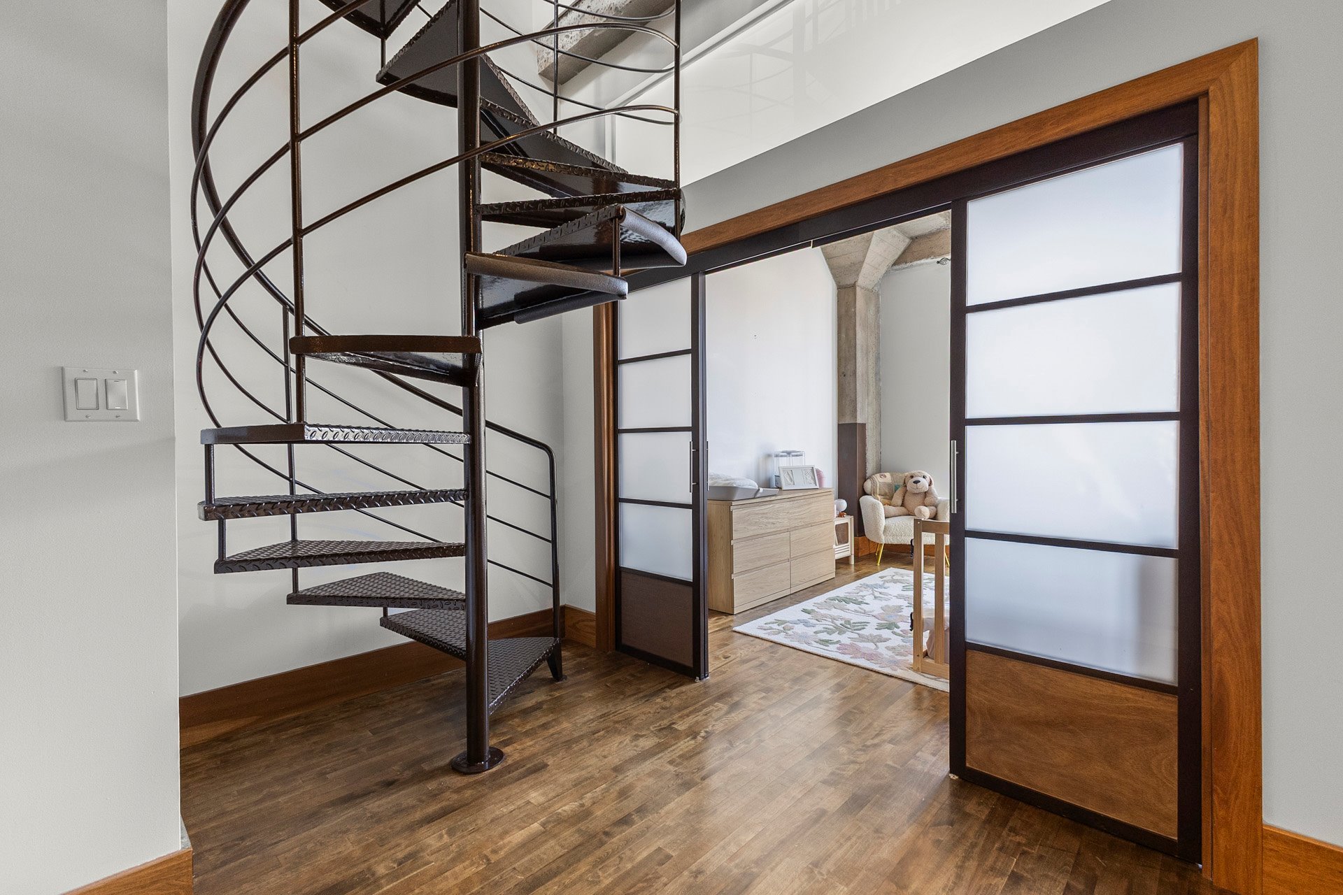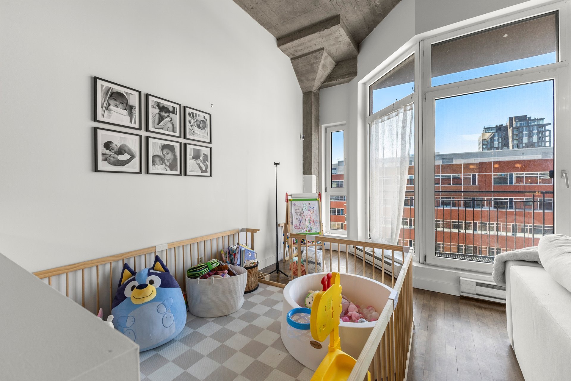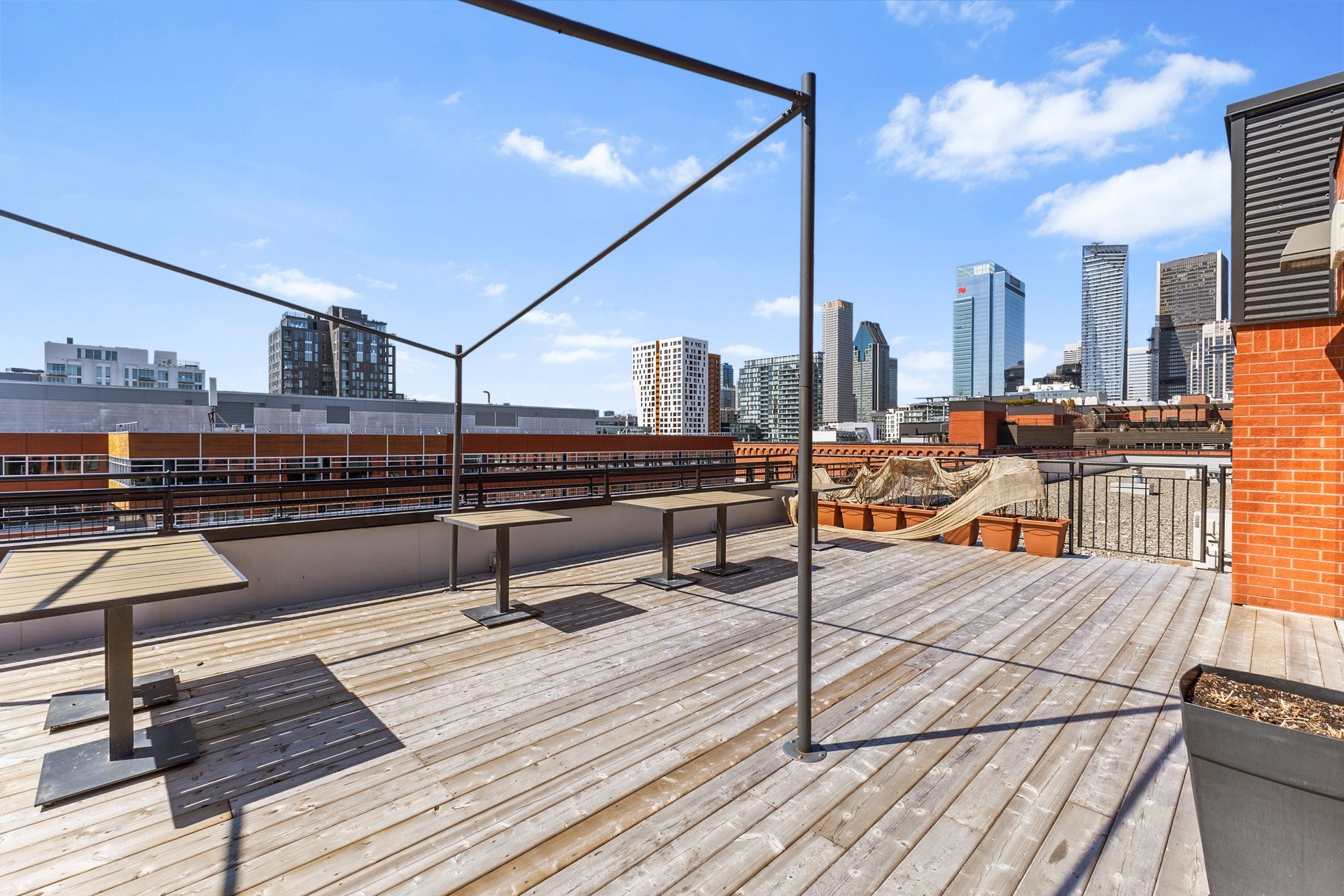 Rare 1,667 sq.ft. two-level condo in Old Montreal, created by combining 2 units. Bright upper-level living space with skylight, open concept, 10'8 concrete ceilings, gas fireplace, and balcony with west exposure. Lower level offers family room, 2 bedrooms, and 2nd bath. Includes 2 indoor parking spaces + 2 lockers. Rooftop terrace with pool and stunning water views. Walk Score 95+ near shops, dining & Bonaventure Metro Station. Unique opportunity in Montreal's sought-after Old Port.