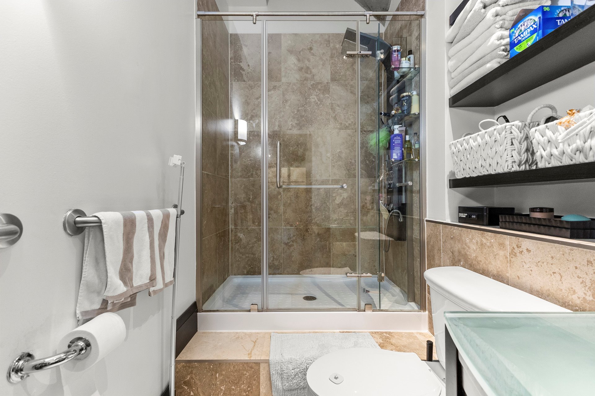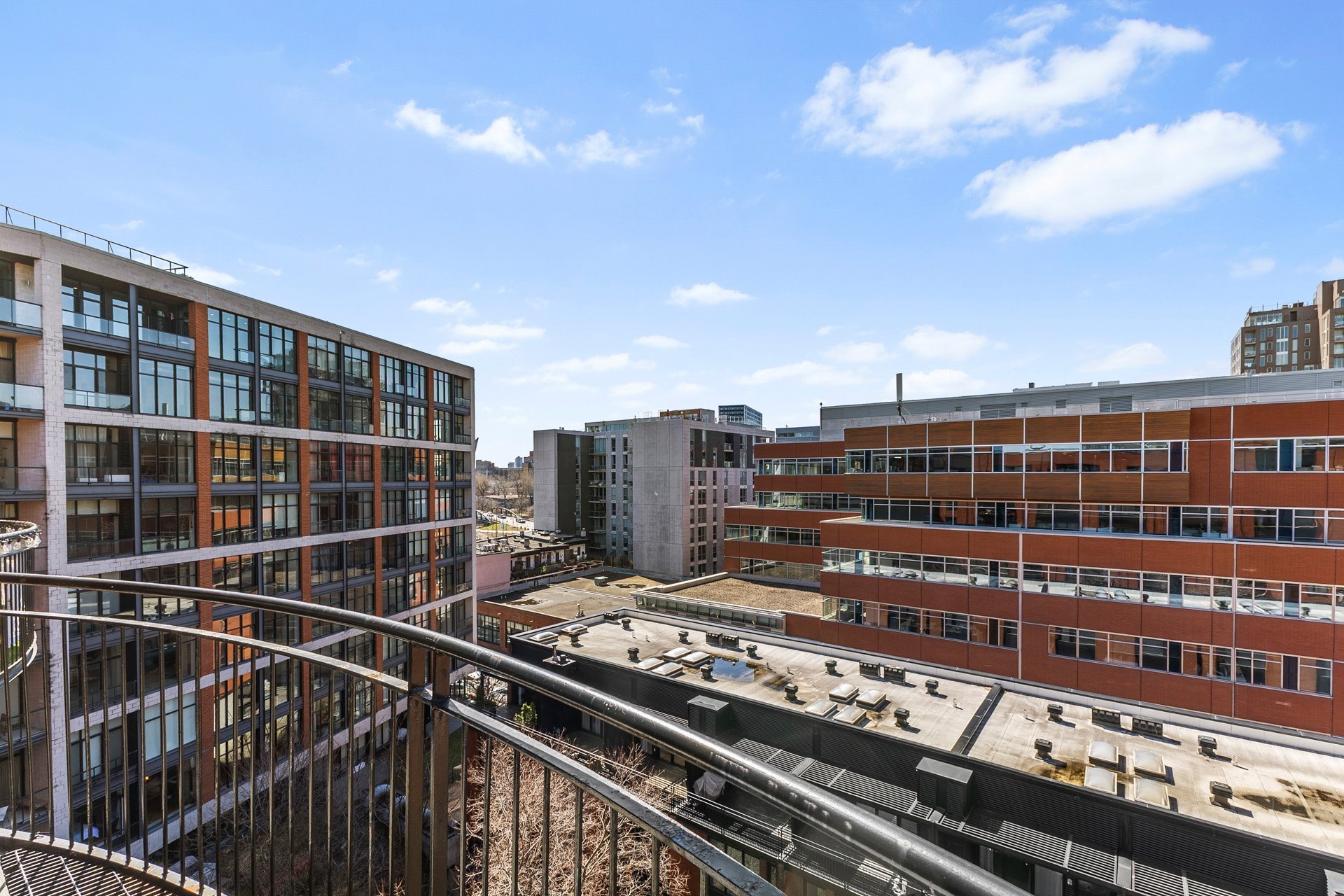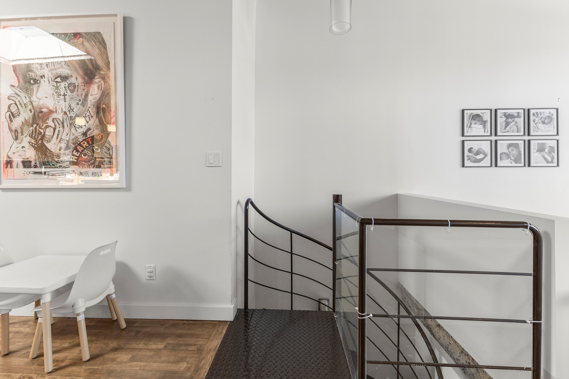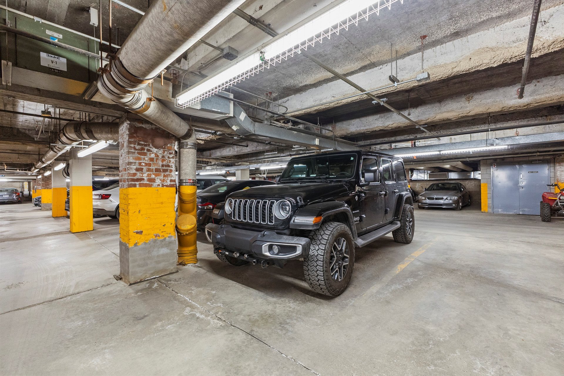 Rare 1,667 sq.ft. two-level condo in Old Montreal, created by combining 2 units. Bright upper-level living space with skylight, open concept, 10'8 concrete ceilings, gas fireplace, and balcony with west exposure. Lower level offers family room, 2 bedrooms, and 2nd bath. Includes 2 indoor parking spaces + 2 lockers. Rooftop terrace with pool and stunning water views. Walk Score 95+ near shops, dining & Bonaventure Metro Station. Unique opportunity in Montreal's sought-after Old Port.