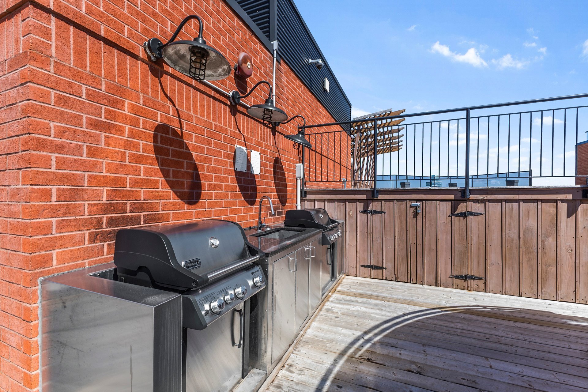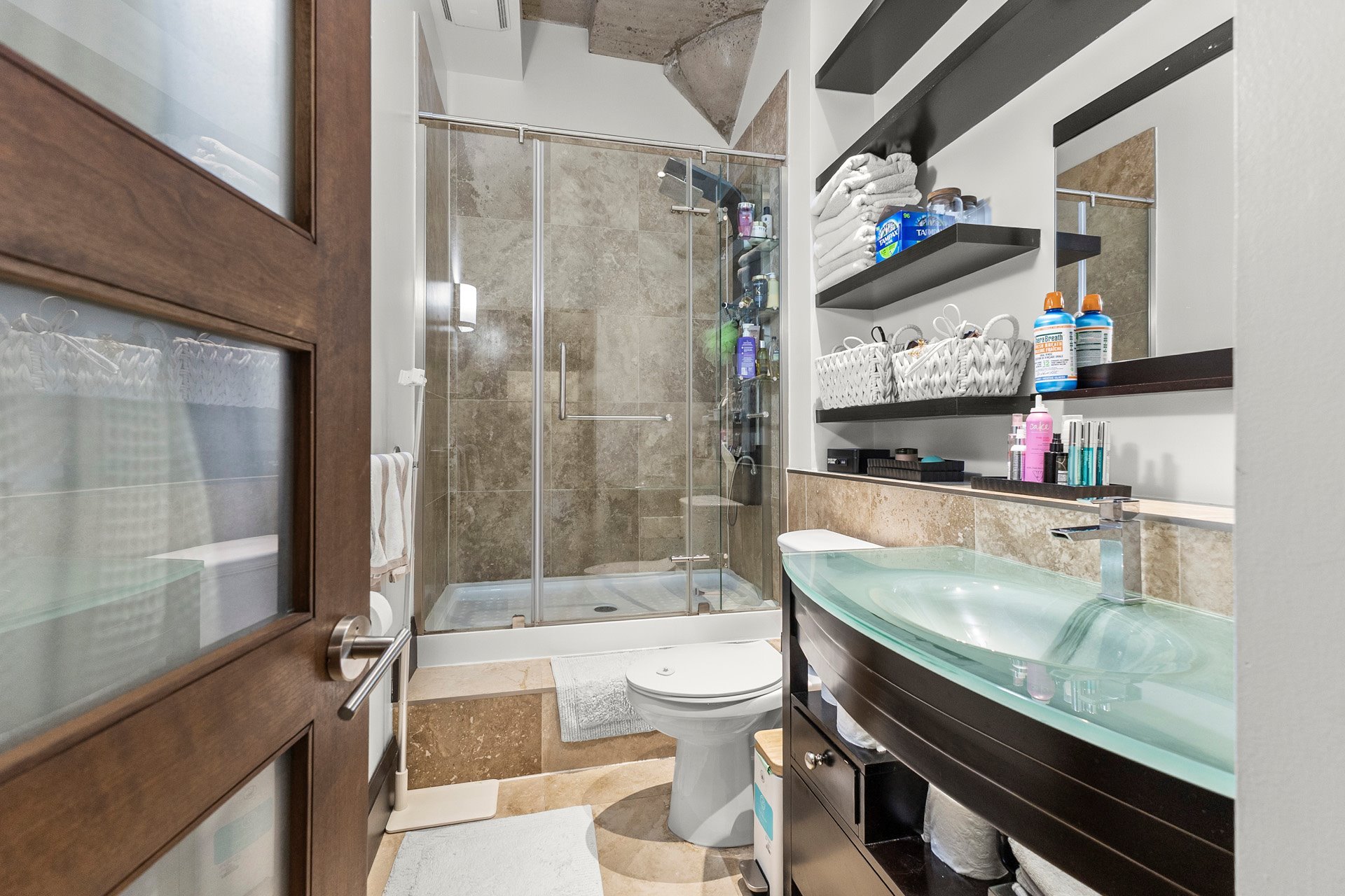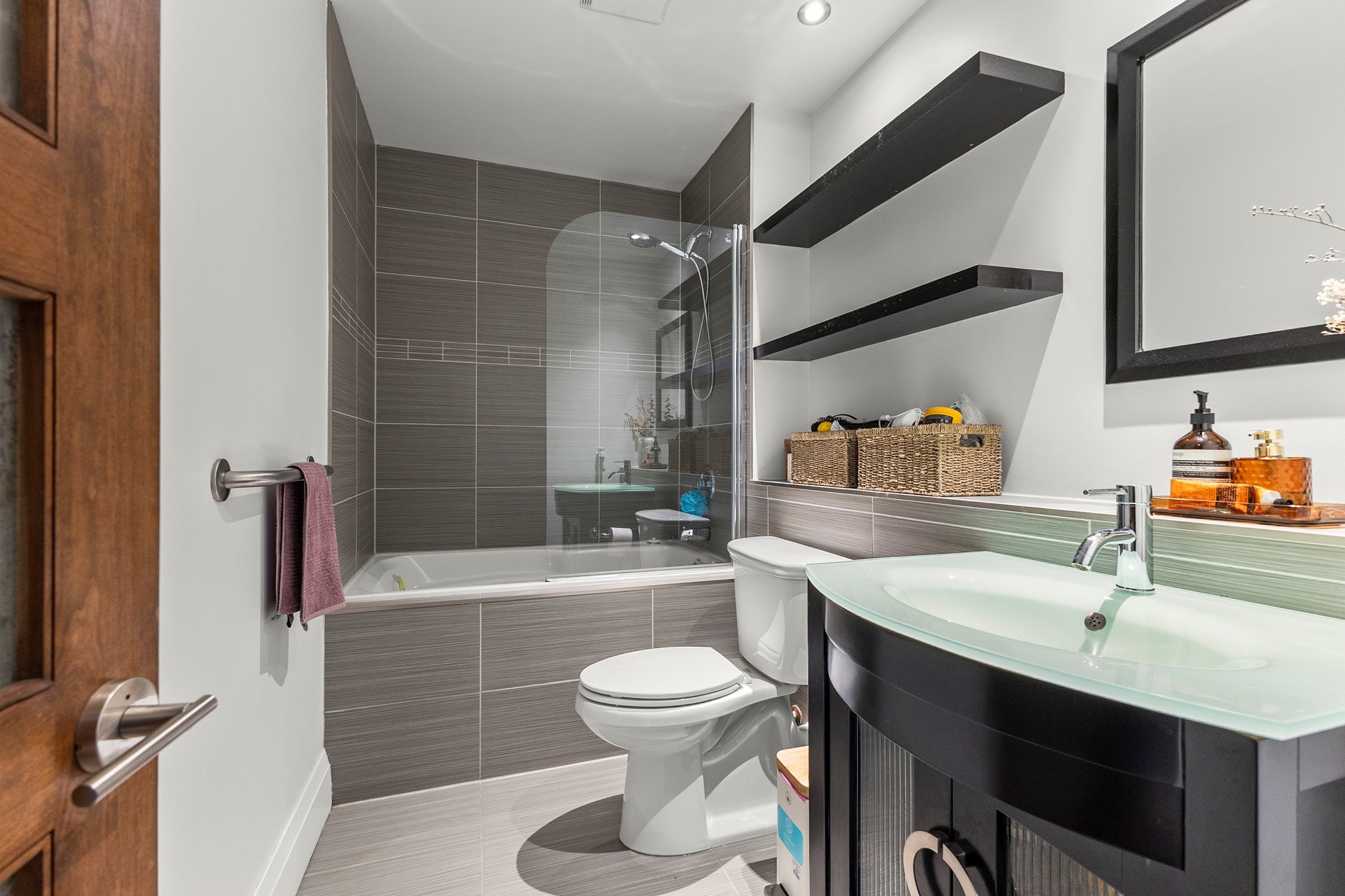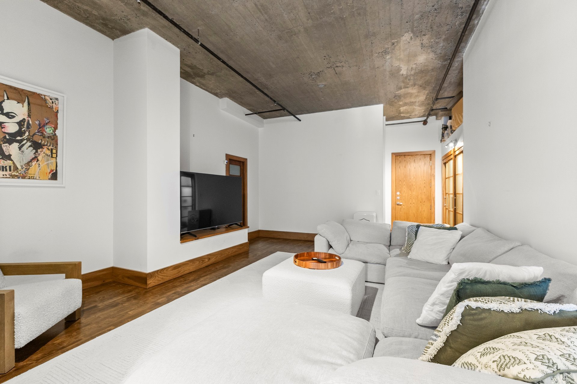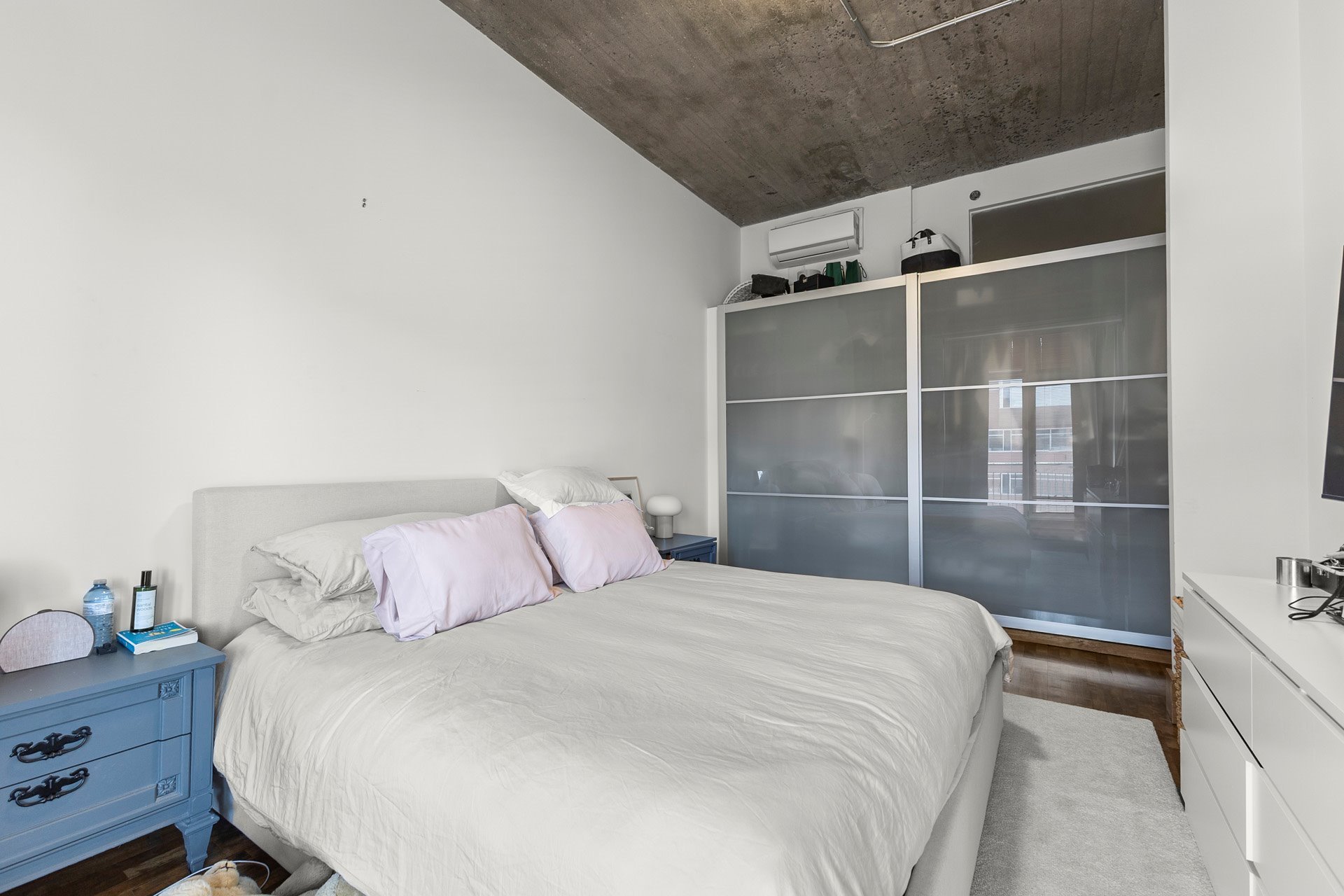 Rare 1,667 sq.ft. two-level condo in Old Montreal, created by combining 2 units. Bright upper-level living space with skylight, open concept, 10'8 concrete ceilings, gas fireplace, and balcony with west exposure. Lower level offers family room, 2 bedrooms, and 2nd bath. Includes 2 indoor parking spaces + 2 lockers. Rooftop terrace with pool and stunning water views. Walk Score 95+ near shops, dining & Bonaventure Metro Station. Unique opportunity in Montreal's sought-after Old Port.