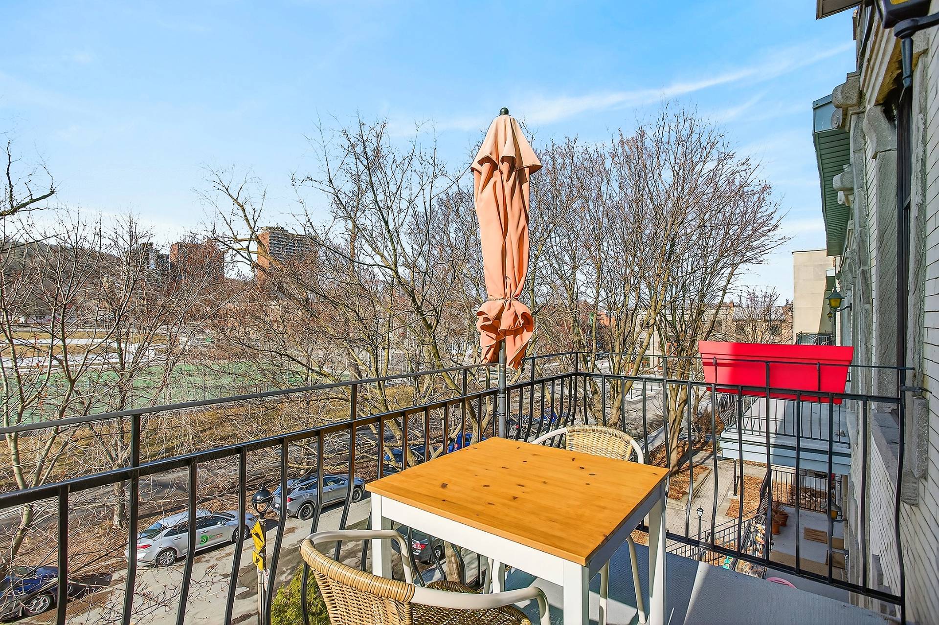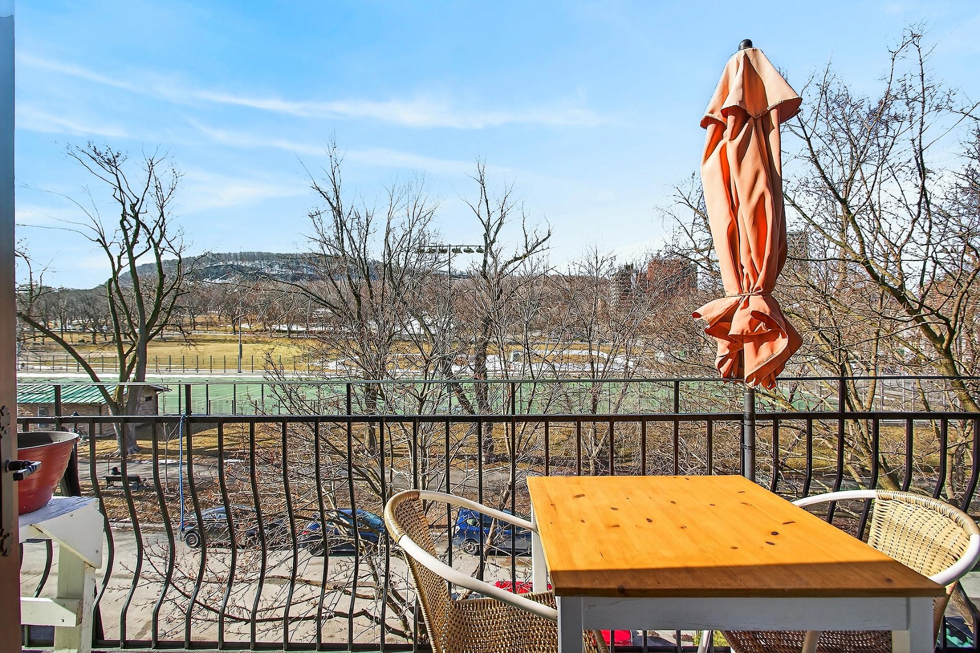 Mont-Royal Metro! Discover this superb, bright top-floor unit featuring 9-foot ceilings, two bedrooms, and a large balcony with breathtaking views of Mount Royal and Jeanne-Mance Park. A true luxury in the heart of the city! It's the dream location for sports and nature lovers. Jeanne-Mance Park offers approximately 14 hectares of land to relax, featuring various tennis, soccer, baseball, and volleyball courts, as well as an ice rink in the winter. Mount Royal provides tranquility with its walking trails, cross-country skiing, strolls with pets, or for bike lovers. A lifestyle
