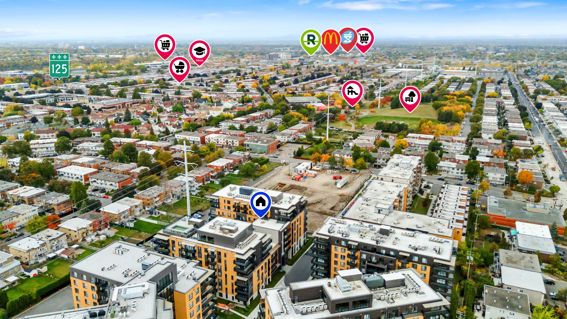 Bicycle path, Cegep, Daycare centre, Elementary school, High school, Highway, Park - green area, Public transport