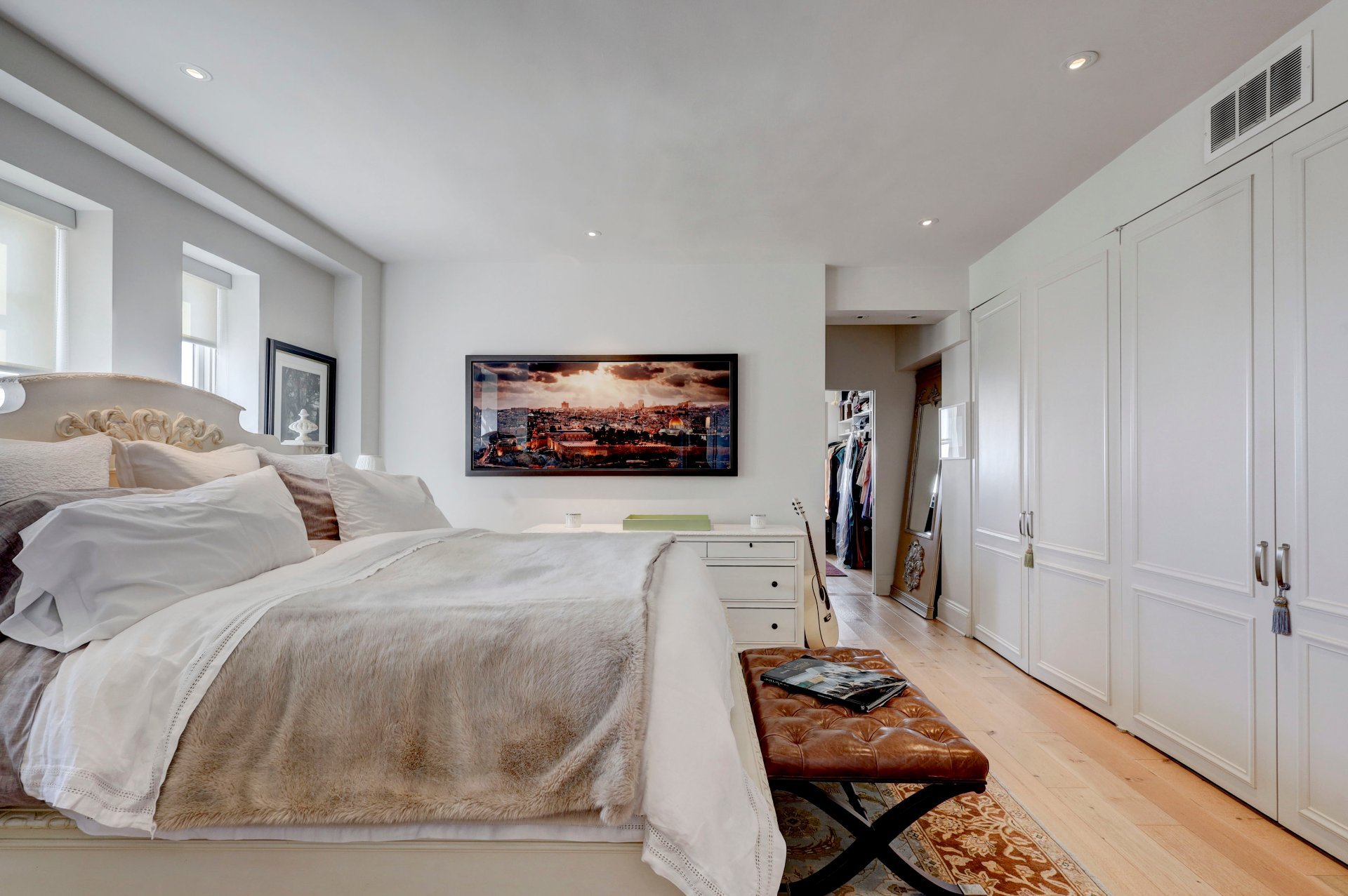 a walk-in closet. It also has its own bathroom.