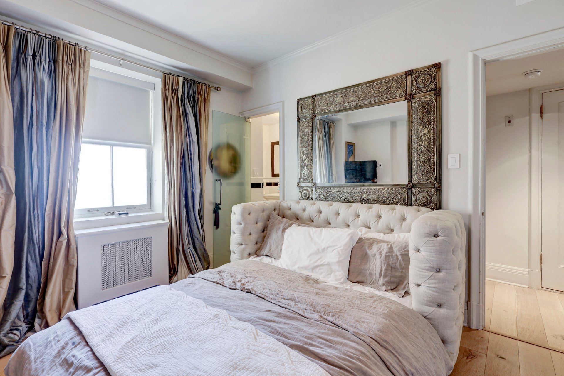 bedroom, a true haven of peace, features a full wall of