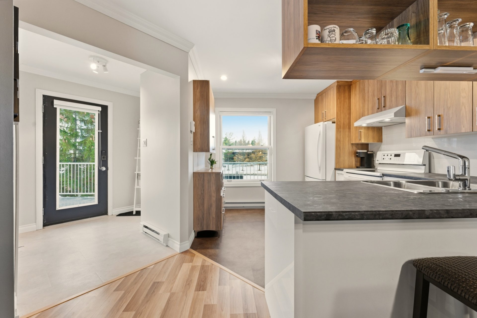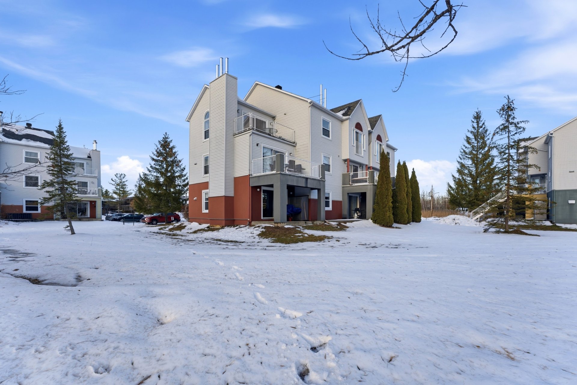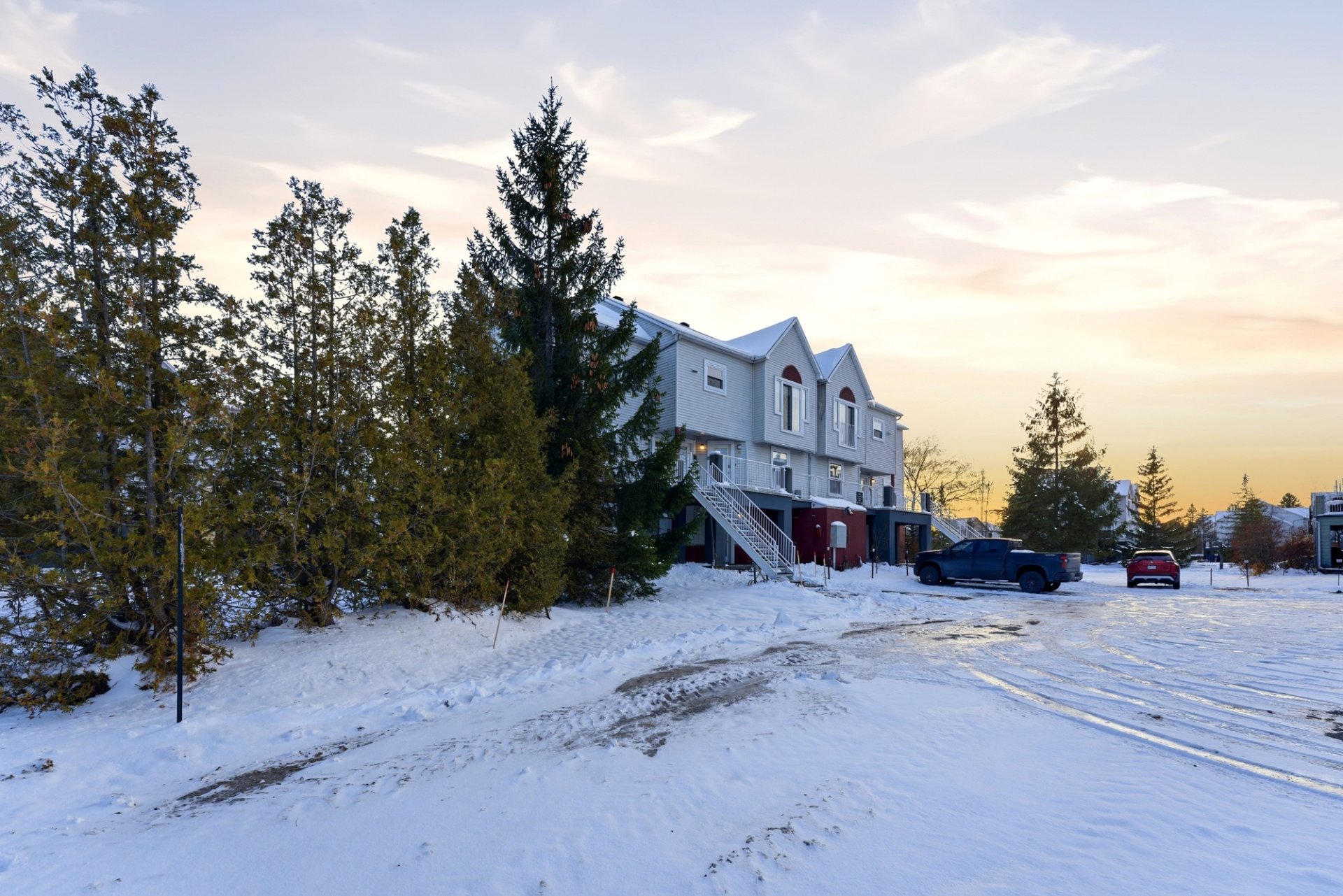 Offering a harmonious living environment in a peaceful area of Magog, this magnificent, bright, two-story condo impresses with its numerous renovations and contemporary style. The ground floor features a functional kitchen, a welcoming dining room, and a bright living room, along with a powder room. Upstairs, two spacious bedrooms with patio doors flood the space with natural light, and there is also a modern bathroom. A private balcony, driveway parking, and proximity to Mount Orford complete this sought-after address, ideal for enjoying nature while remaining close to amenities.