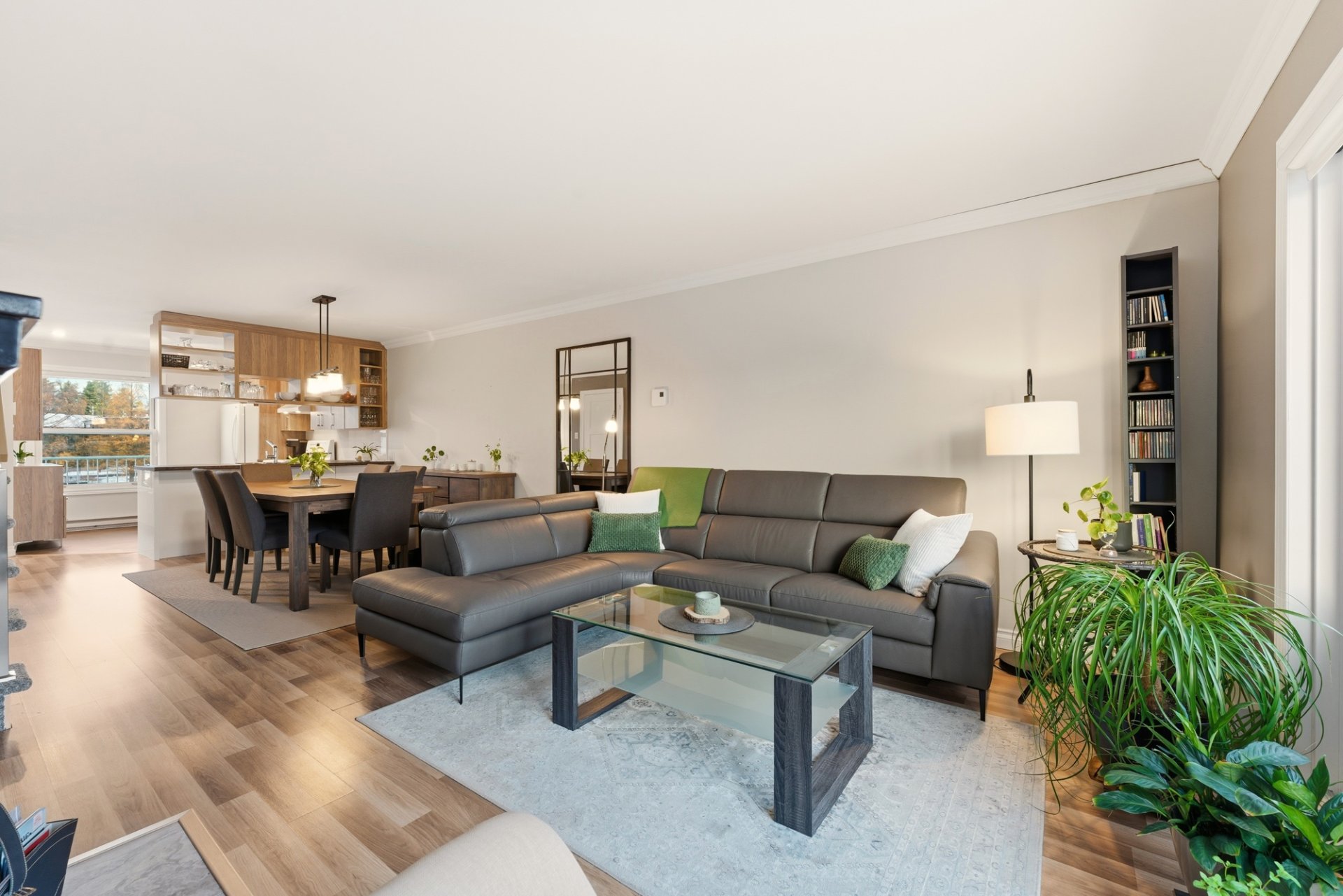 room and a living room bathed in natural light. A