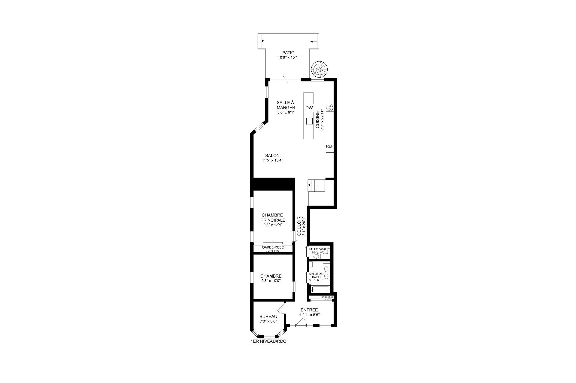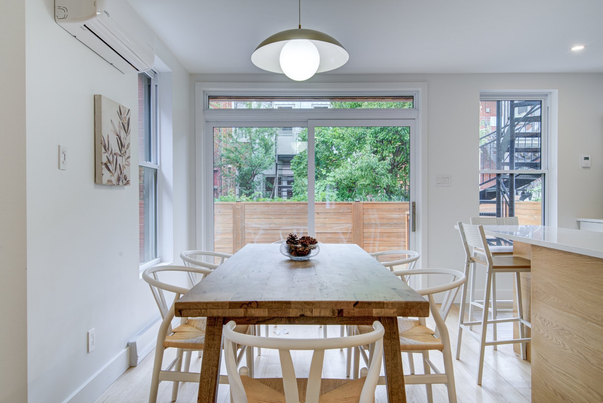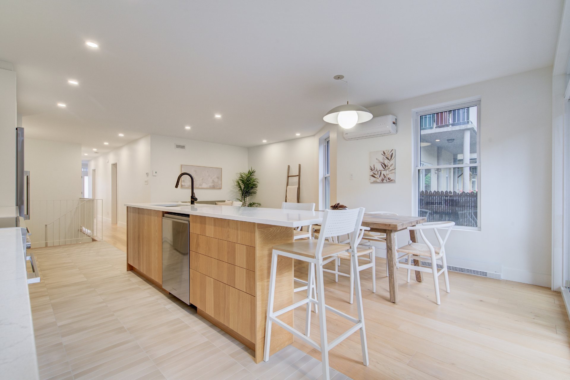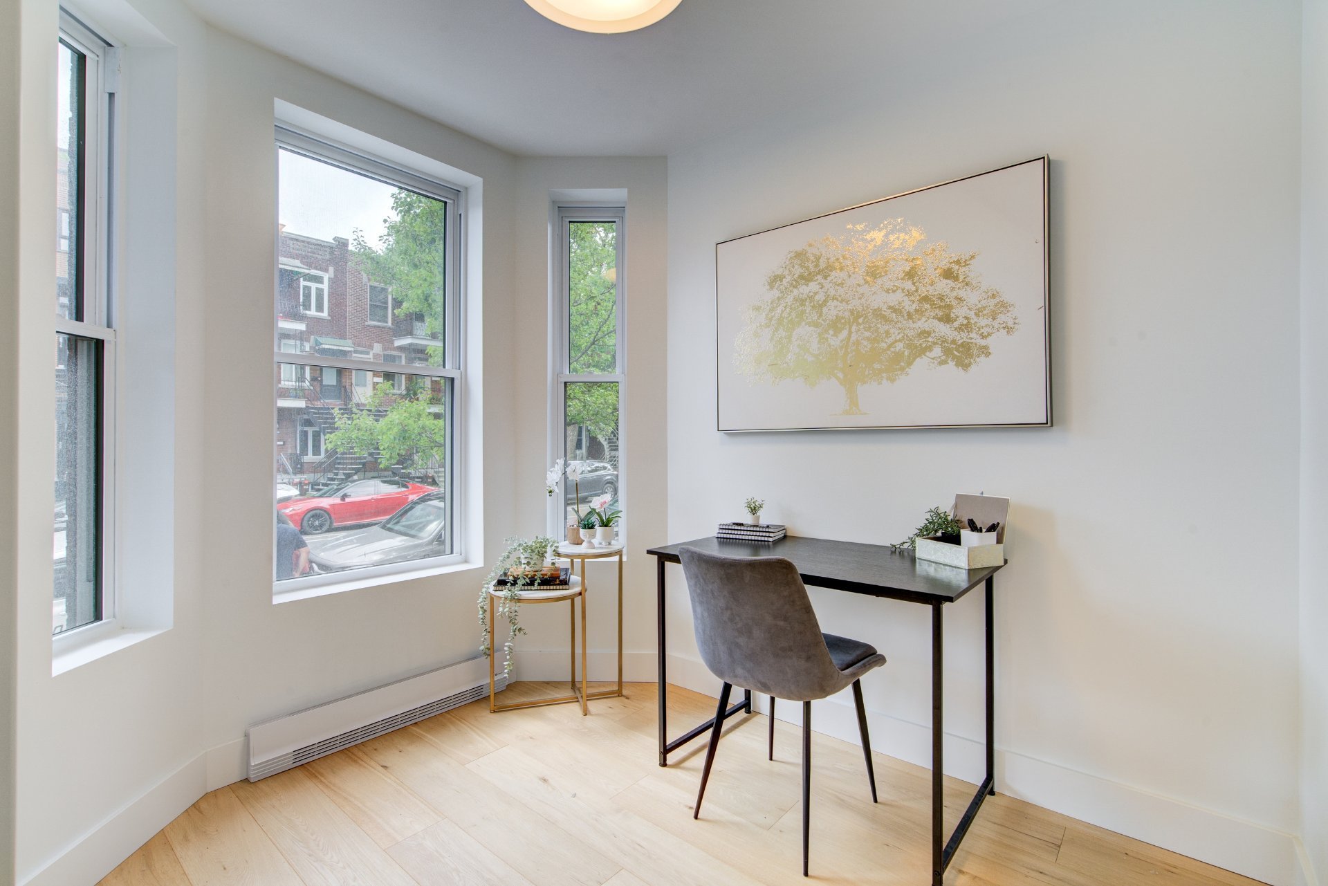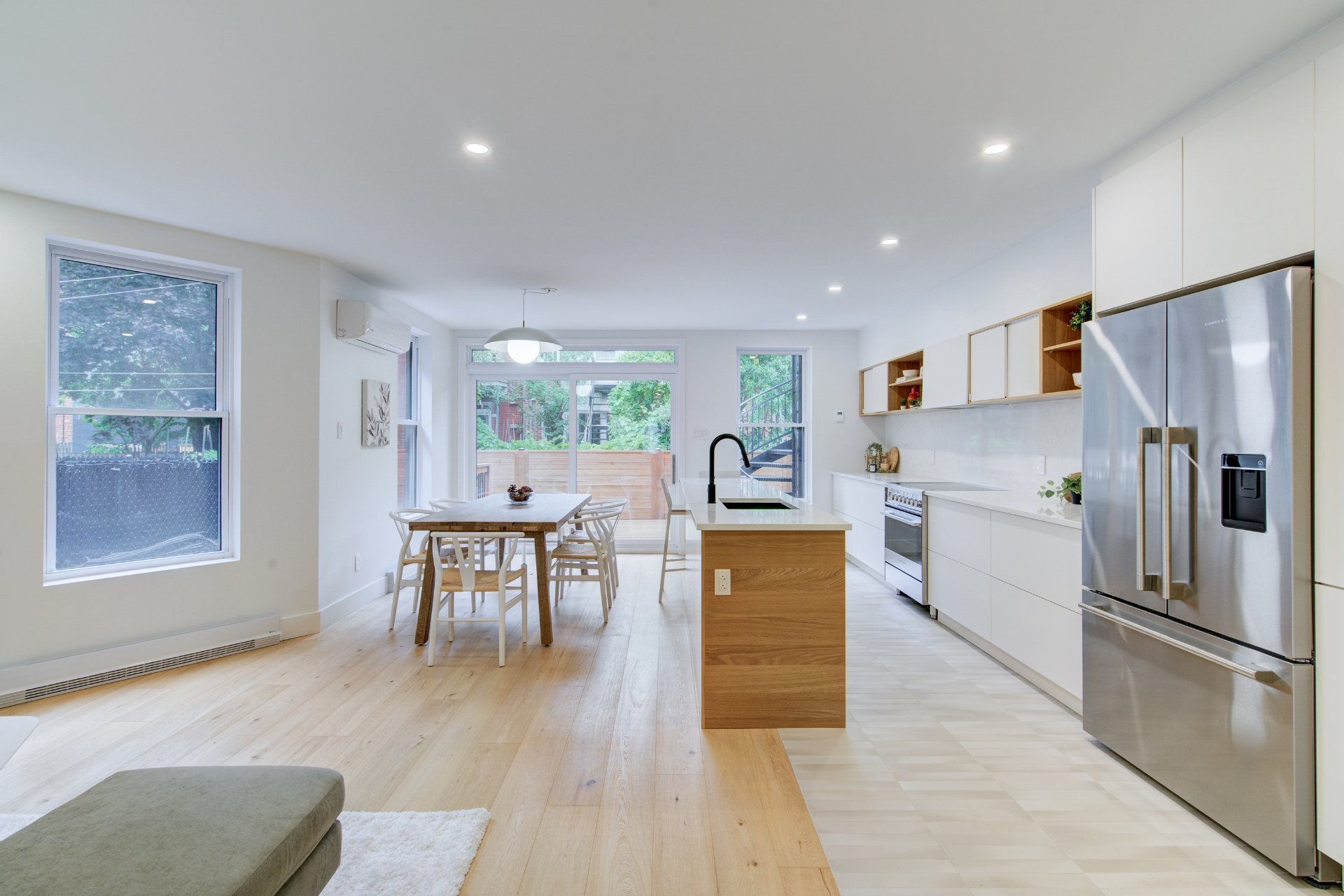 Unique condo with windows on three sides comprising the ground floor and basement for a total of 1850 square feet. Independent front access to the basement, ideal for a professional wishing to meet clients at home or simply for teenagers returning late at night! Dare to visit.