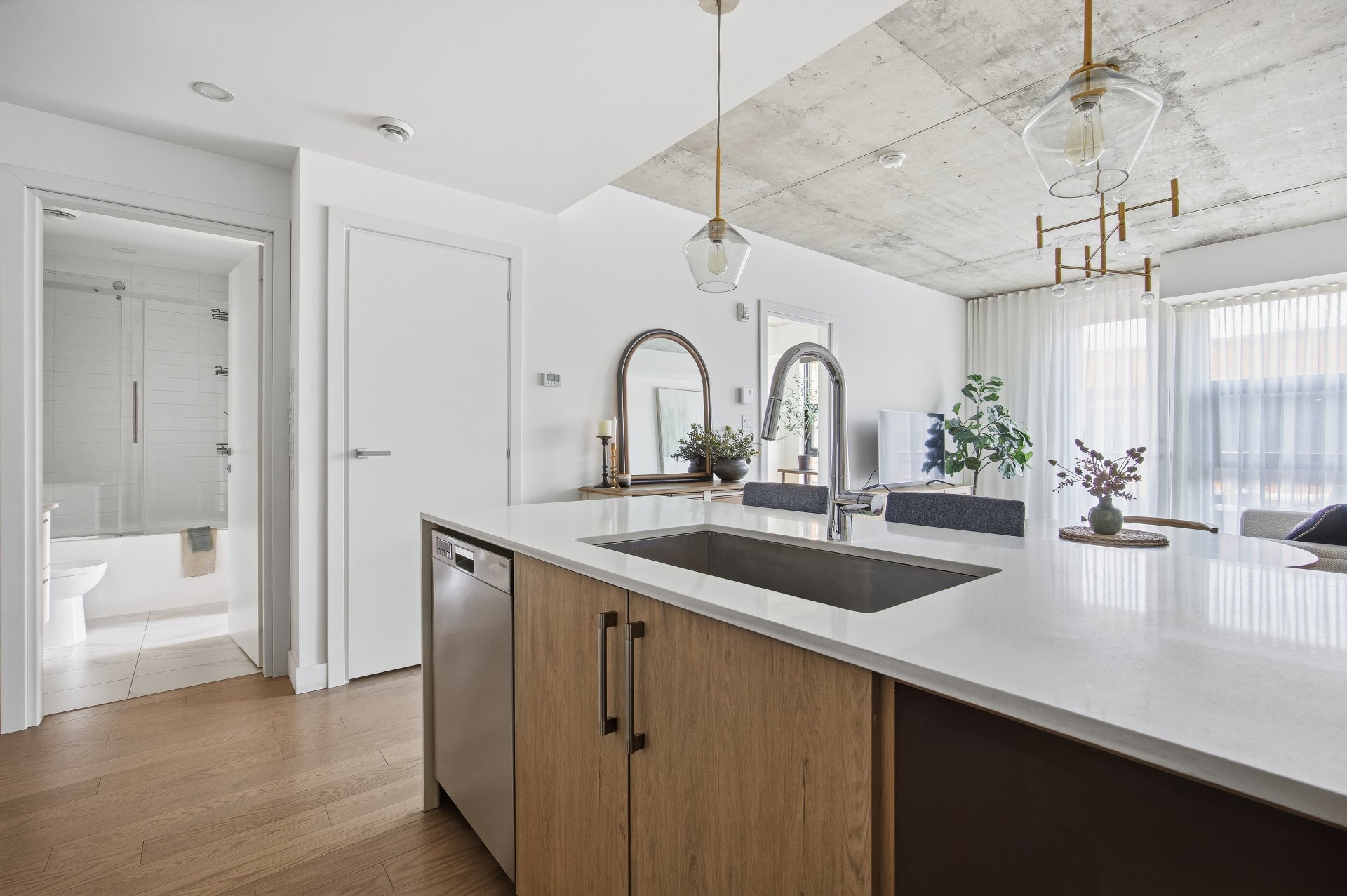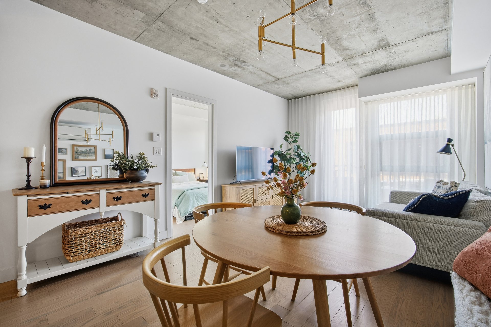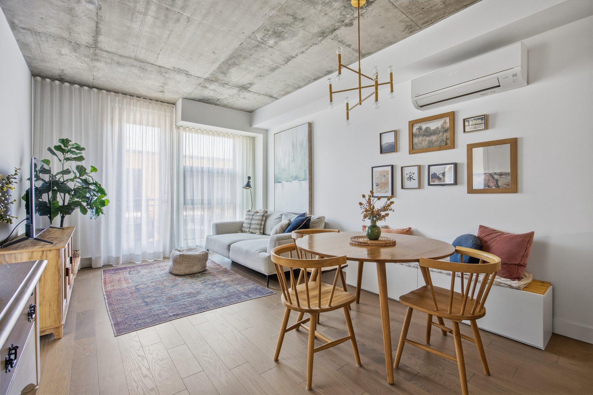 Elegant turnkey unit located in the sought-after Edwin project, in the heart of the Southwest borough. Bright and thoughtfully designed, it offers a modern and functional living space with a closed bedroom, 9-foot ceilings, a private balcony, and storage space. Its prime location allows residents to fully enjoy the Lachine Canal, Atwater Market, and Charlevoix metro station, all within walking distance. The building enhances the lifestyle with a common lounge, a gym, and a stunning rooftop terrace offering spectacular views of the canal and downtown.