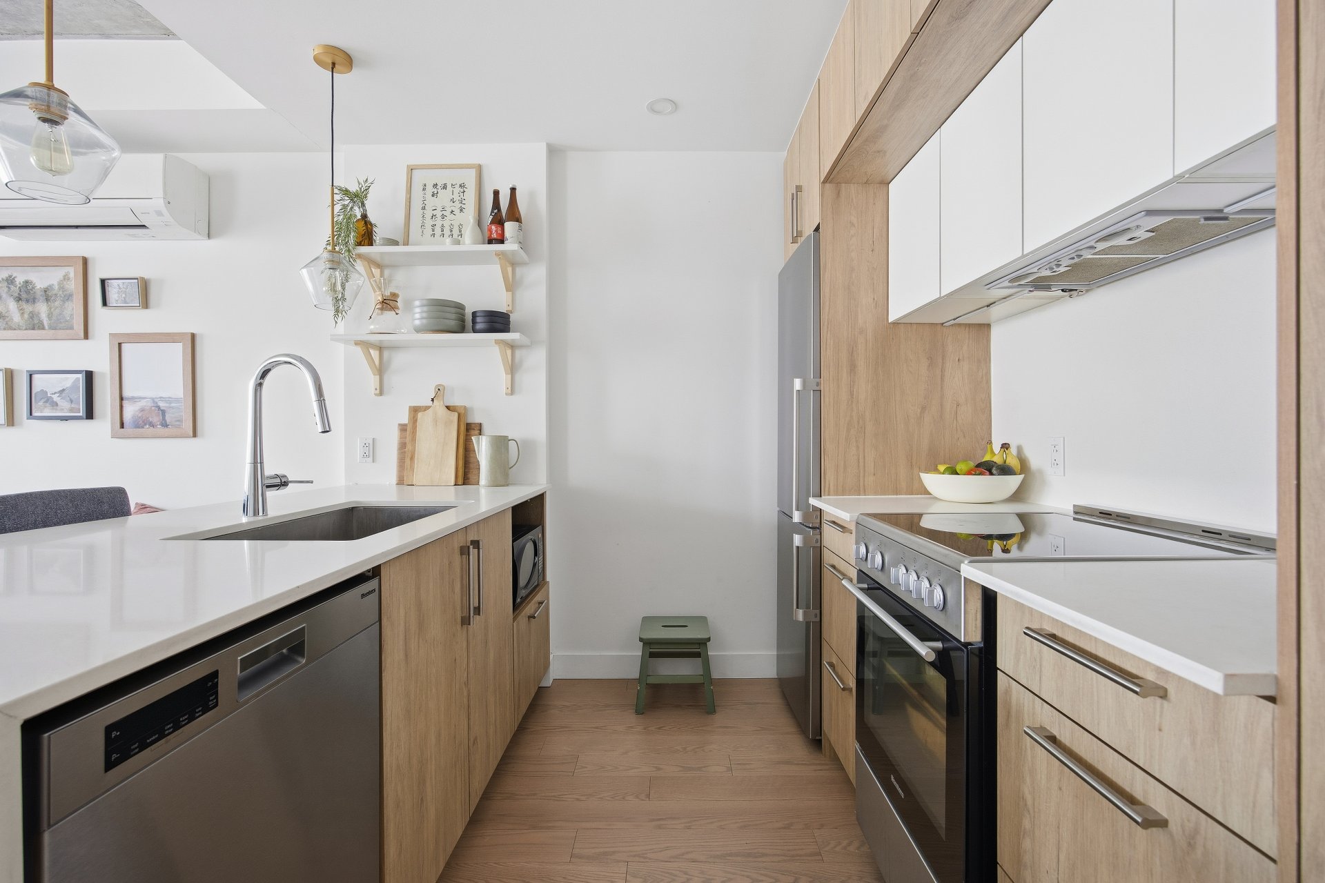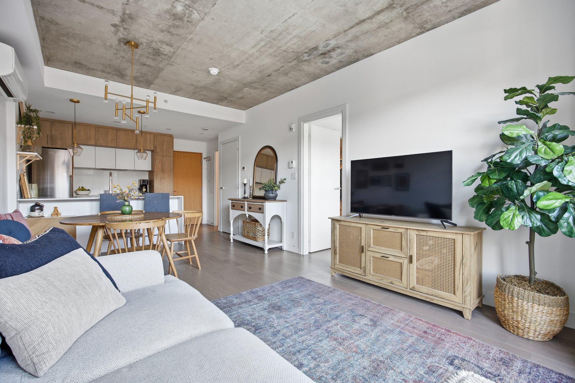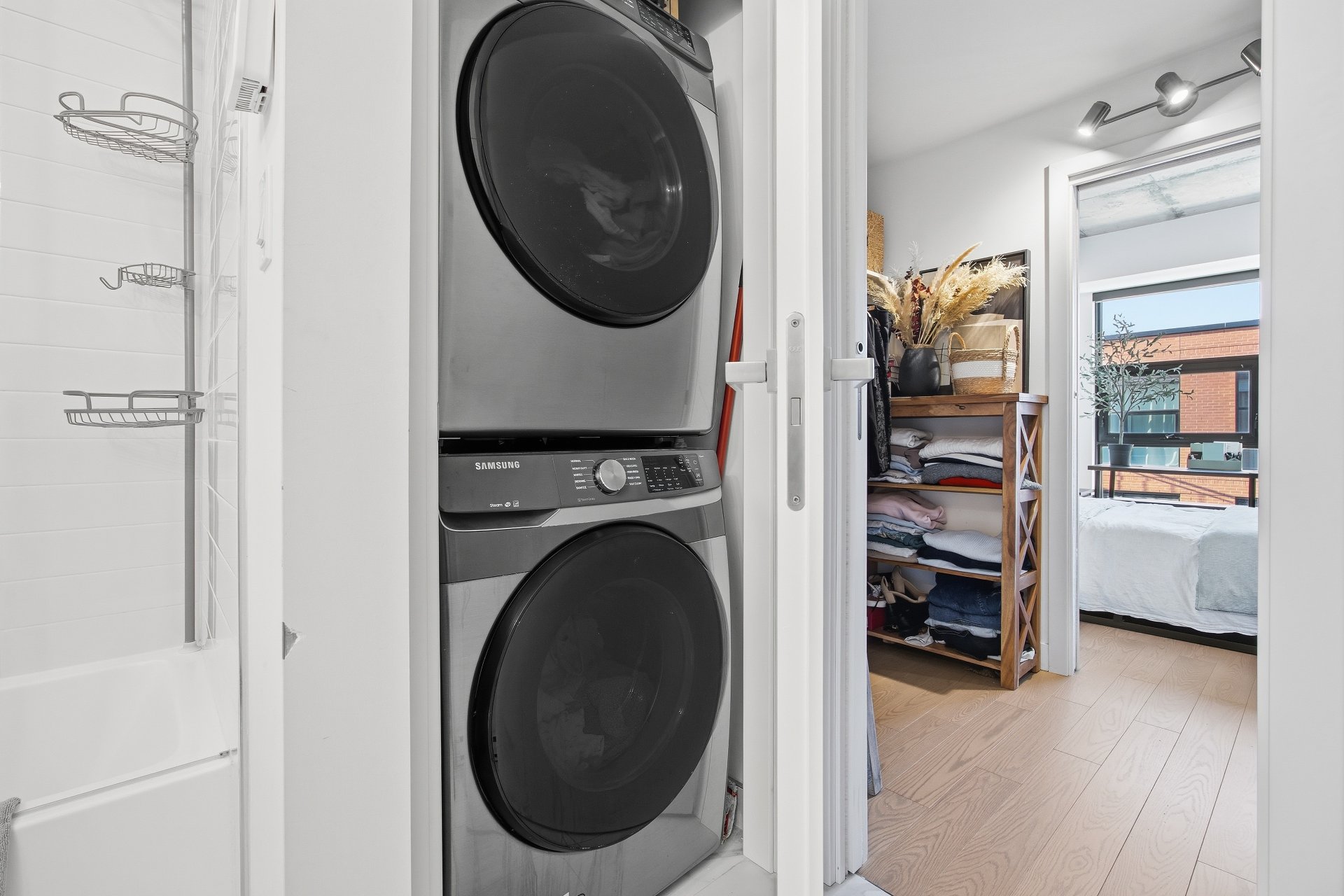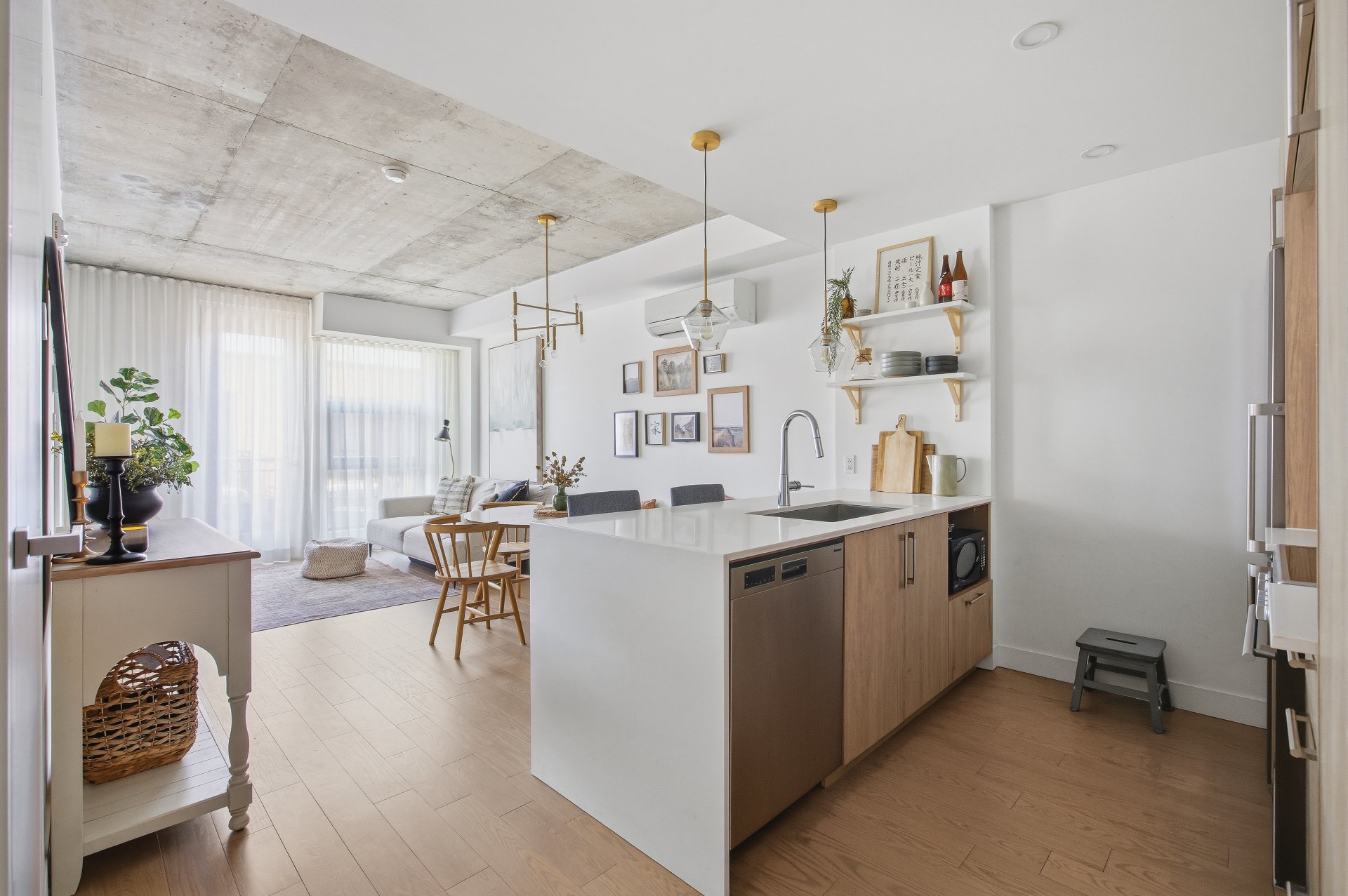 Elegant turnkey unit located in the sought-after Edwin project, in the heart of the Southwest borough. Bright and thoughtfully designed, it offers a modern and functional living space with a closed bedroom, 9-foot ceilings, a private balcony, and storage space. Its prime location allows residents to fully enjoy the Lachine Canal, Atwater Market, and Charlevoix metro station, all within walking distance. The building enhances the lifestyle with a common lounge, a gym, and a stunning rooftop terrace offering spectacular views of the canal and downtown.