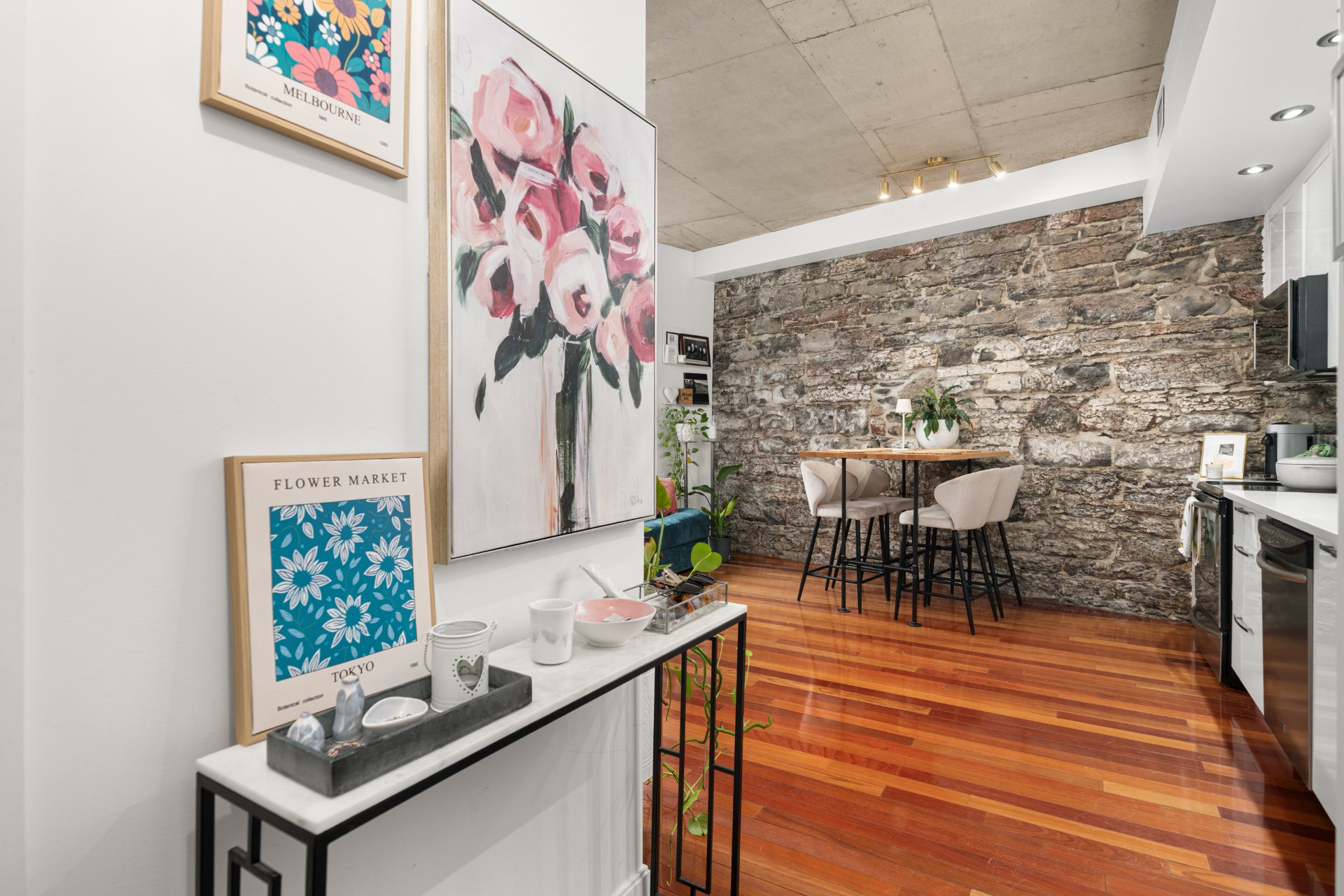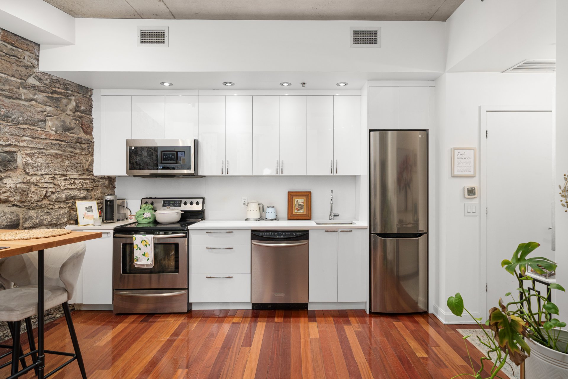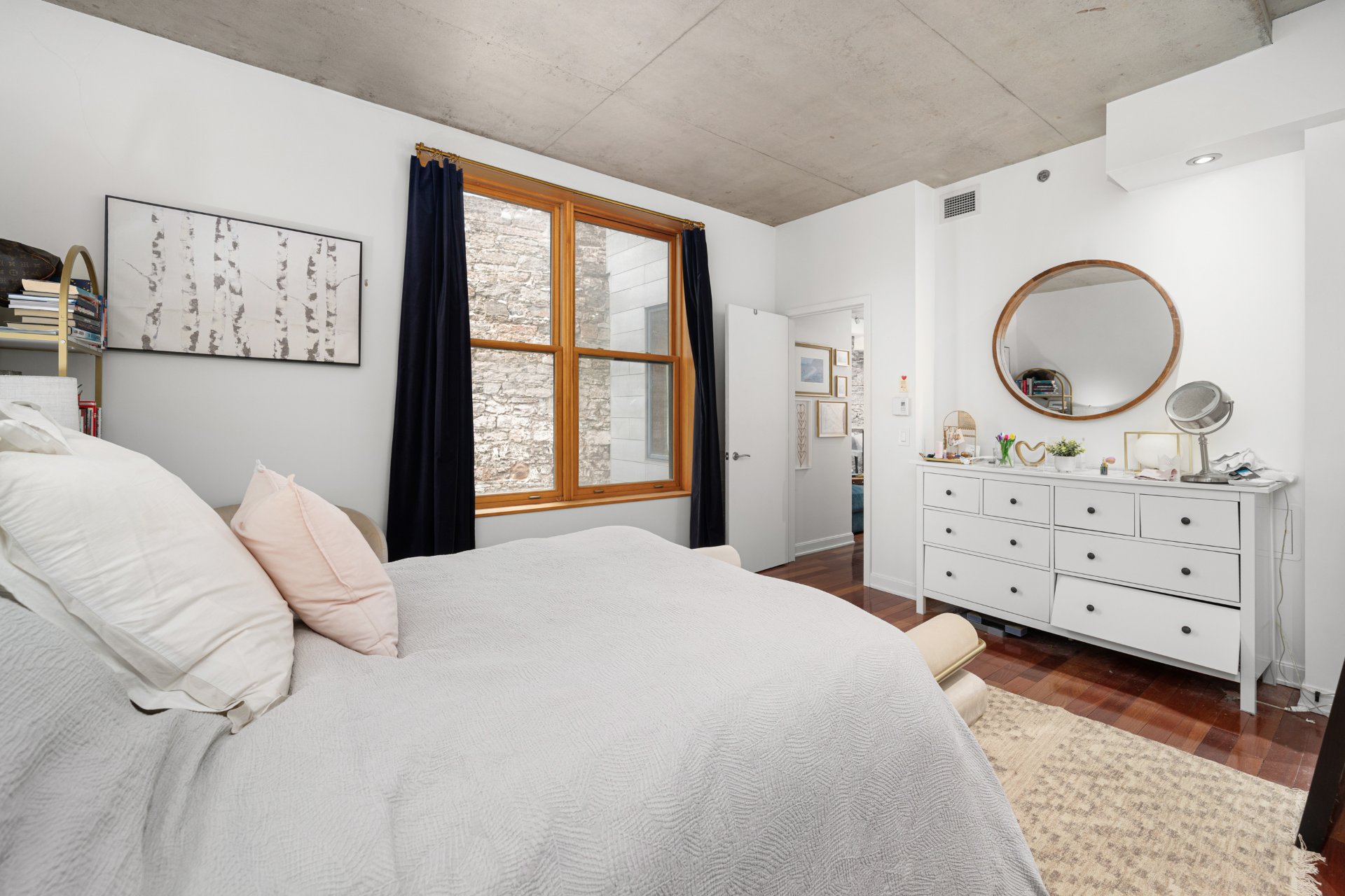 Perfectly located in the heart of Old Montreal within walking distance of the Port and all it's attraction, well-maintained condo is situated on the 4th floor of a historical renovated building with a rooftop deck. Open concept layout condo offers, hardwood floors, central heating and a/c.