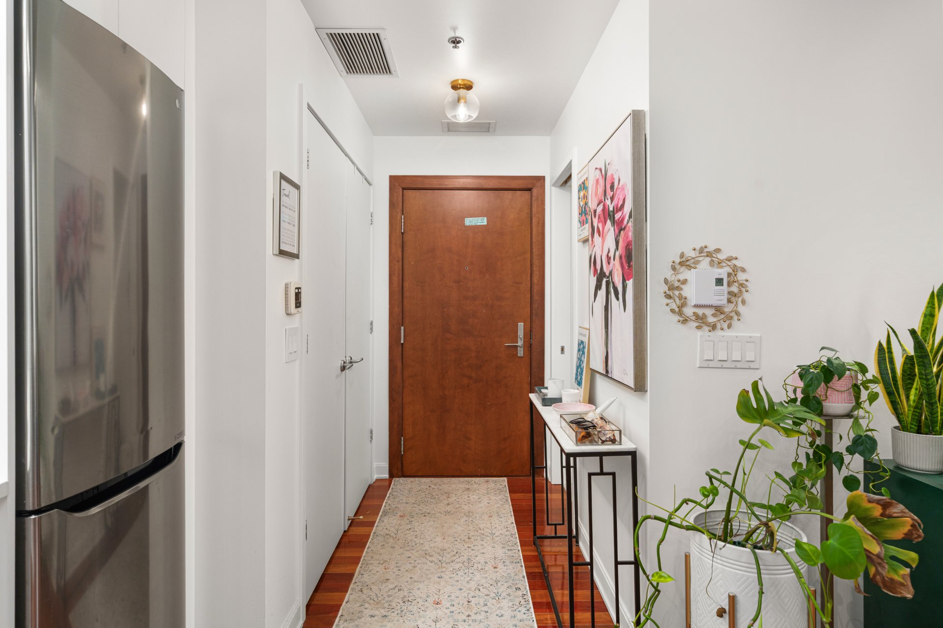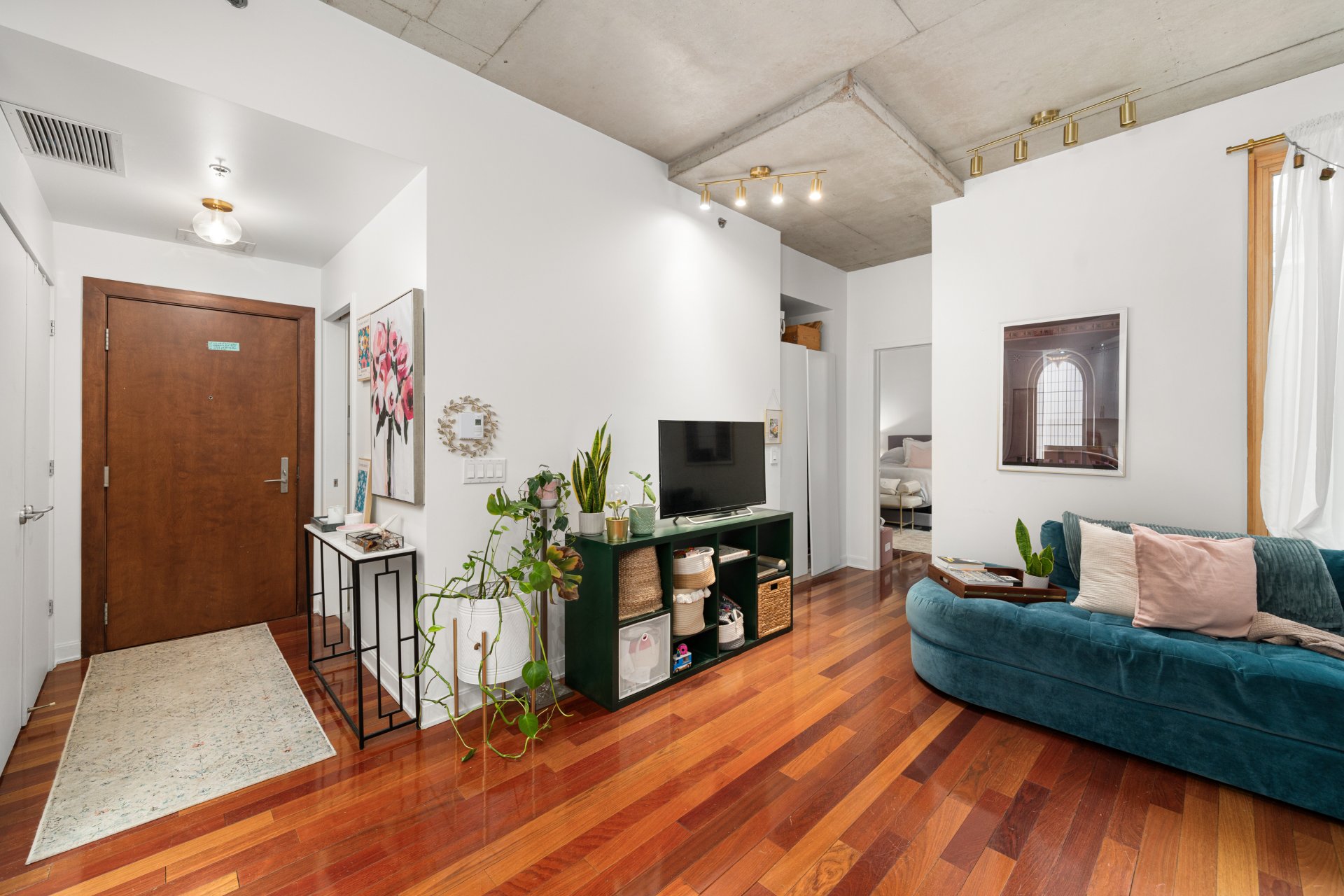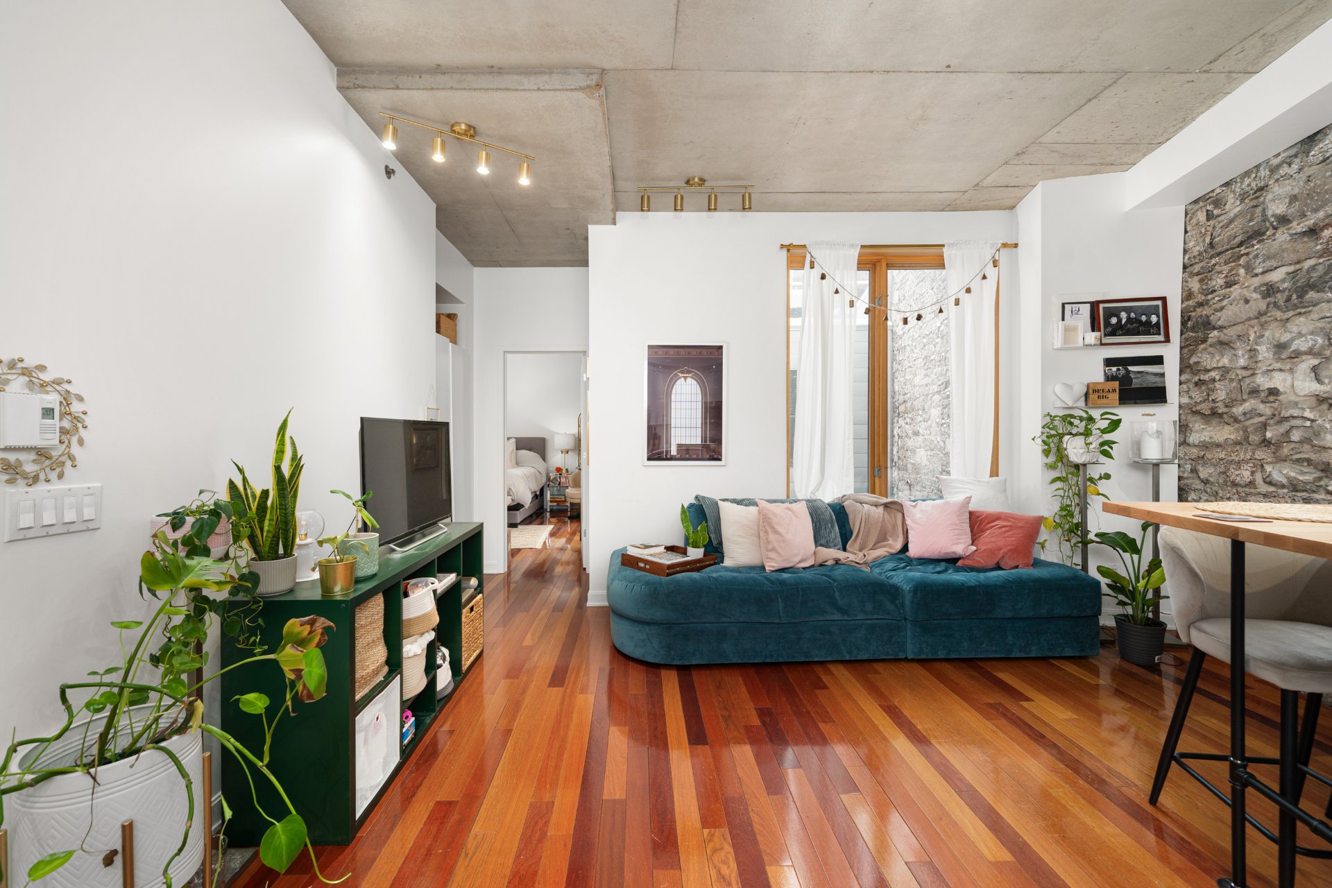 Perfectly located in the heart of Old Montreal within walking distance of the Port and all it's attraction, well-maintained condo is situated on the 4th floor of a historical renovated building with a rooftop deck. Open concept layout condo offers, hardwood floors, central heating and a/c.