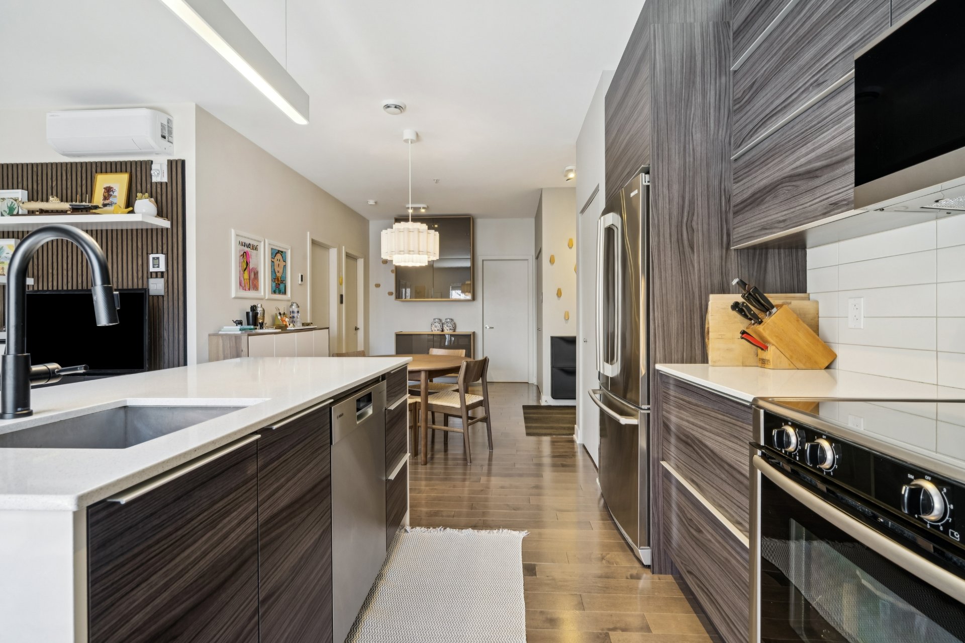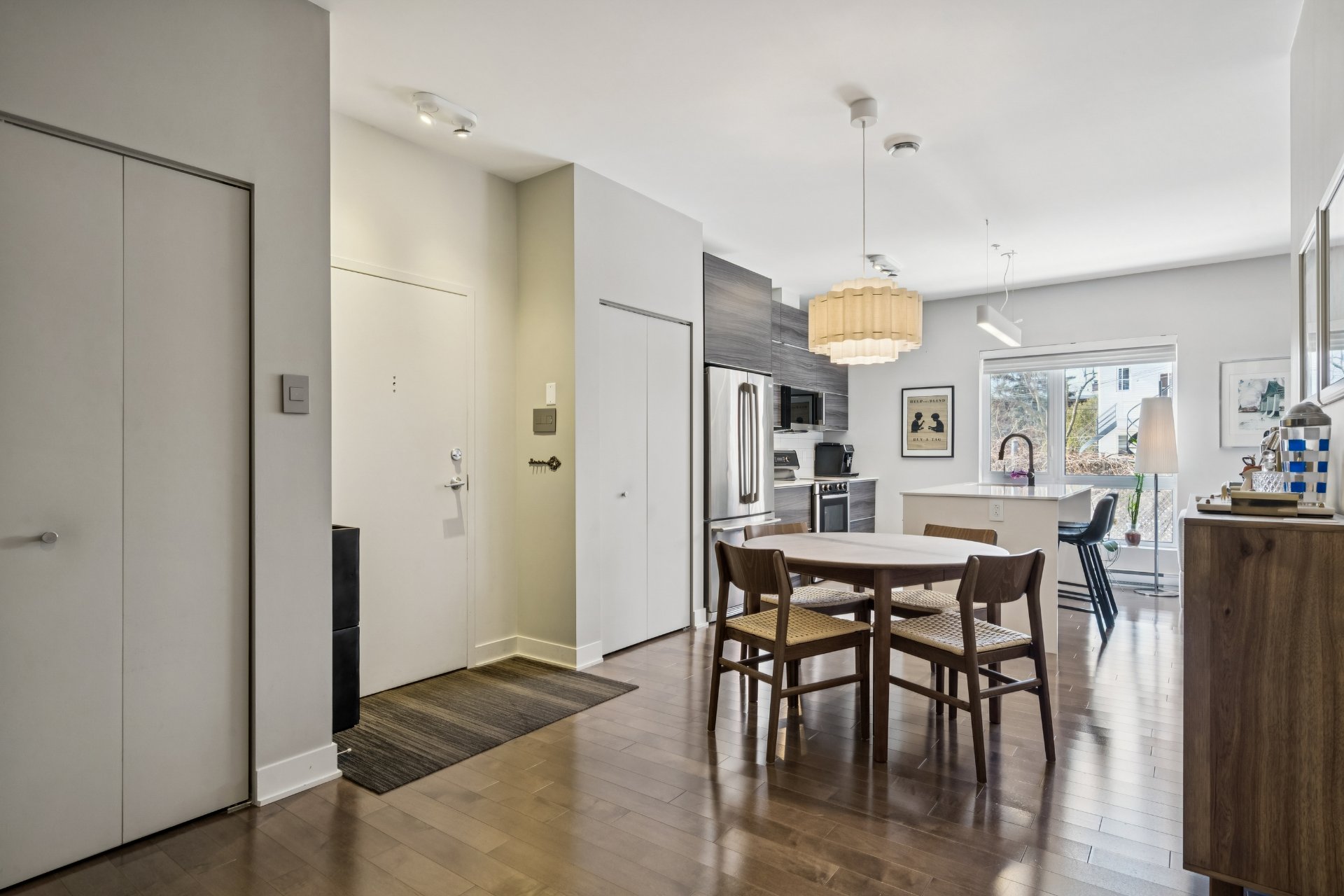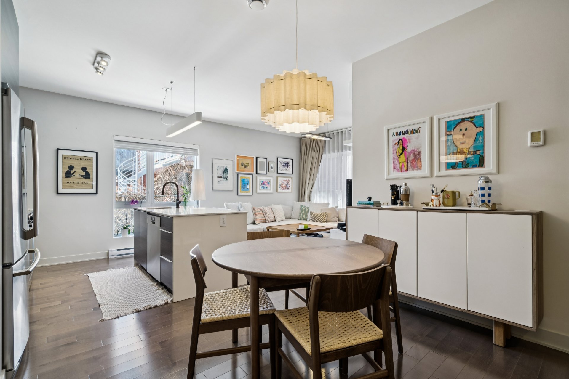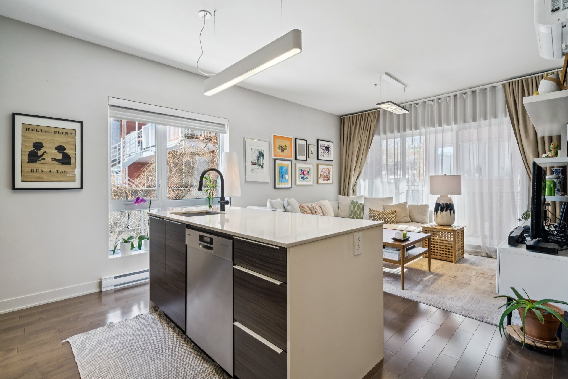 Stunning turnkey condo located in the heart of the highly sought-after Petite-Patrie. Prime location just steps from Père-Marquette Park, the Réseau vert bike path for walking or cycling, and vibrant Beaubien Street with its cafés, restaurants, and shops. The bright and welcoming open-concept living space features a contemporary kitchen with a breakfast counter. Two bedrooms and a modern bathroom with a tub-shower complete the unit. Shared rooftop terrace with panoramic views, perfect for summer evenings. Balcony, storage space, two bike racks, and one garage parking space included!