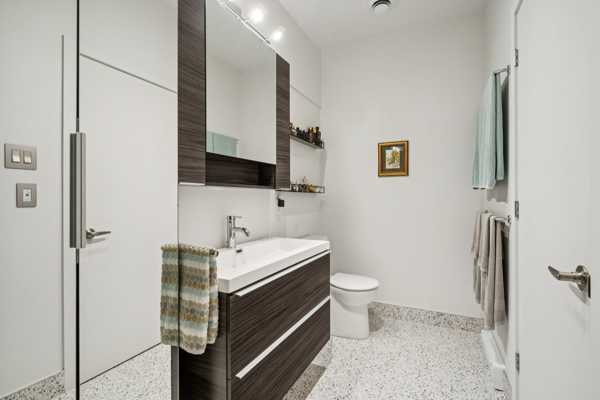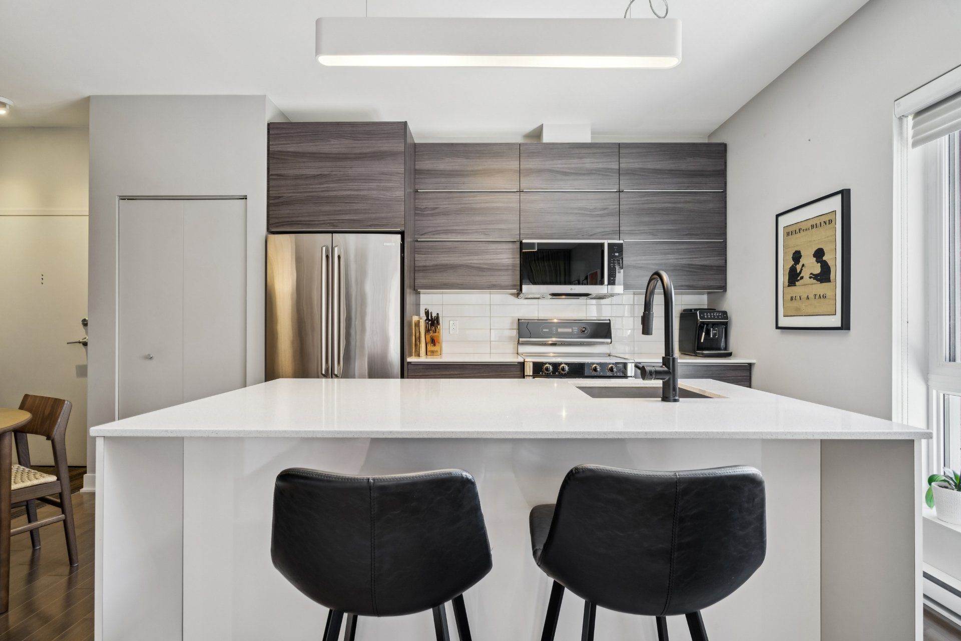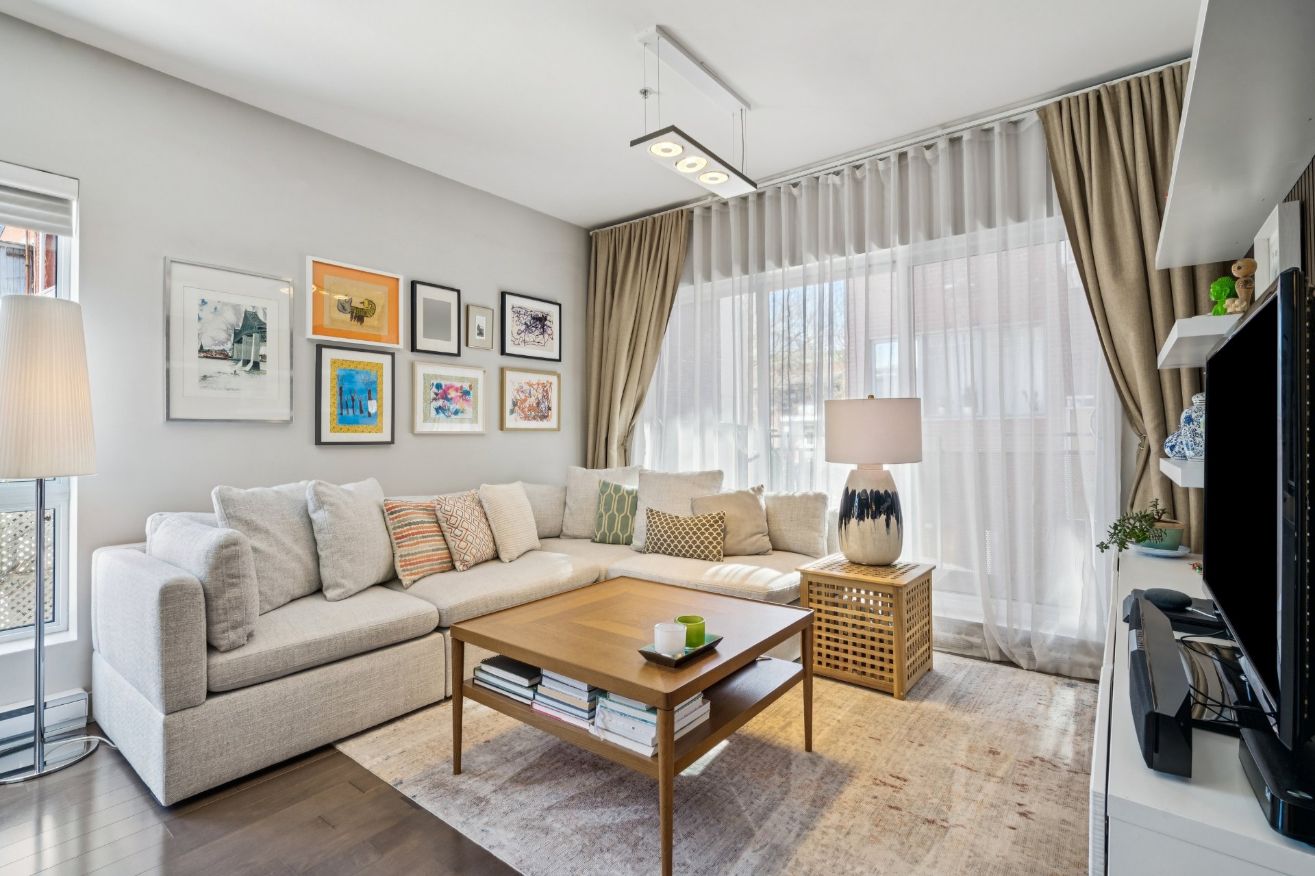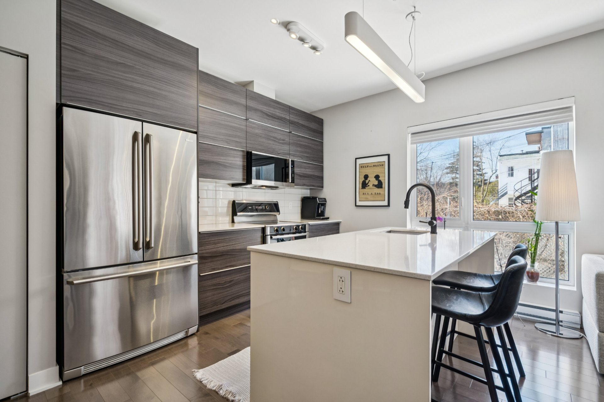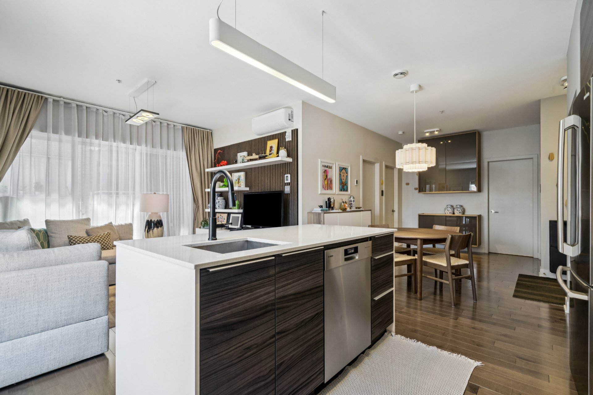 Stunning turnkey condo located in the heart of the highly sought-after Petite-Patrie. Prime location just steps from Père-Marquette Park, the Réseau vert bike path for walking or cycling, and vibrant Beaubien Street with its cafés, restaurants, and shops. The bright and welcoming open-concept living space features a contemporary kitchen with a breakfast counter. Two bedrooms and a modern bathroom with a tub-shower complete the unit. Shared rooftop terrace with panoramic views, perfect for summer evenings. Balcony, storage space, two bike racks, and one garage parking space included!