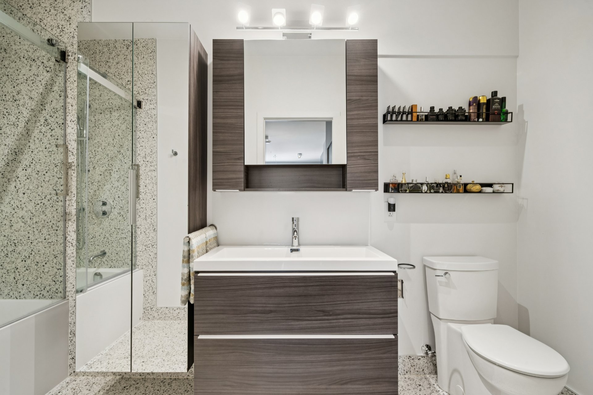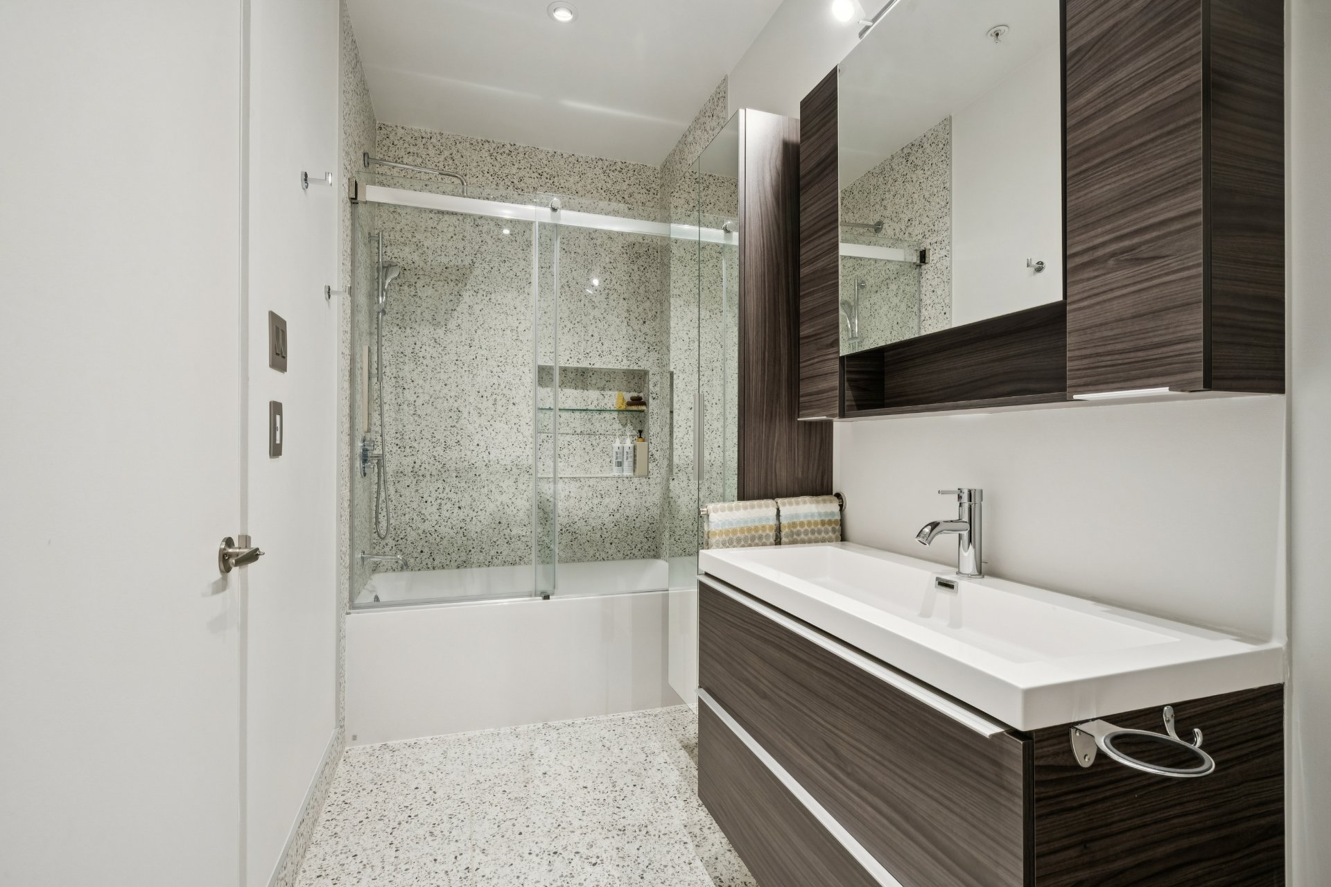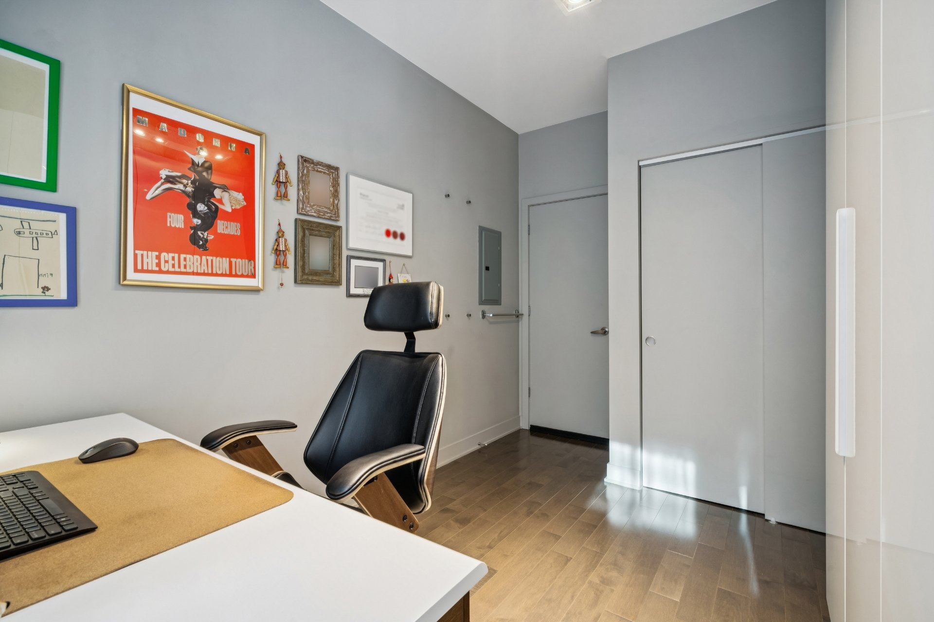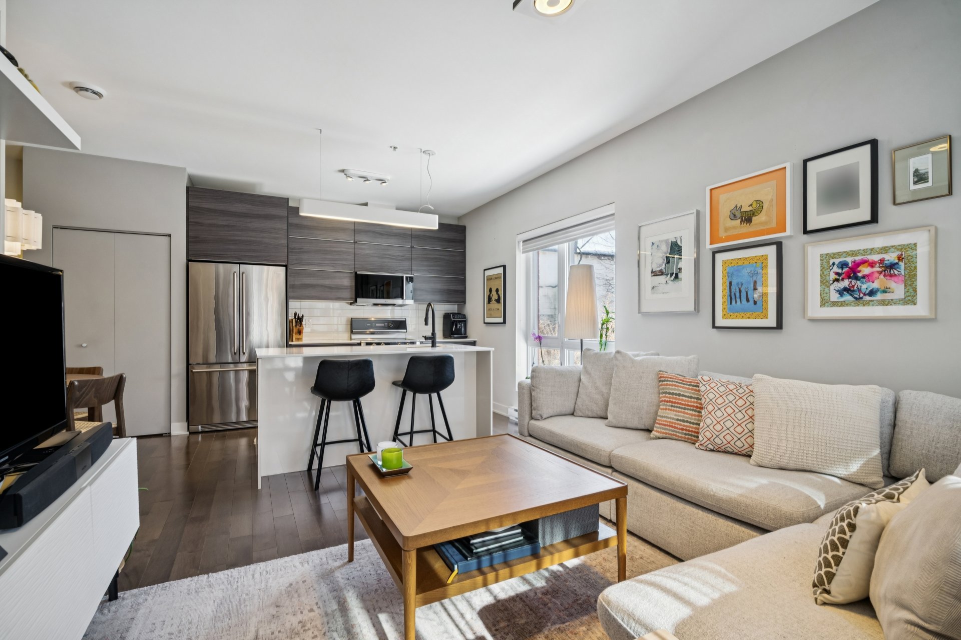 Stunning turnkey condo located in the heart of the highly sought-after Petite-Patrie. Prime location just steps from Père-Marquette Park, the Réseau vert bike path for walking or cycling, and vibrant Beaubien Street with its cafés, restaurants, and shops. The bright and welcoming open-concept living space features a contemporary kitchen with a breakfast counter. Two bedrooms and a modern bathroom with a tub-shower complete the unit. Shared rooftop terrace with panoramic views, perfect for summer evenings. Balcony, storage space, two bike racks, and one garage parking space included!
