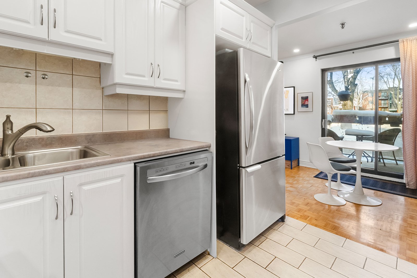 Discover this well-maintained unit where functionality meets a sought-after location! The interior offers a welcoming living space filled with natural light, with a simple layout that allows for easy furnishing. You'll find two bedrooms, a full bathroom, and plenty of built-in storage. An indoor parking space and additional storage complete the property. Located directly across from Médéric-Martin Park and within walking distance of Frontenac metro station, the location is ideal for fully enjoying the neighborhood, green spaces, and nearby services, with an impressive Walk Score of 93!