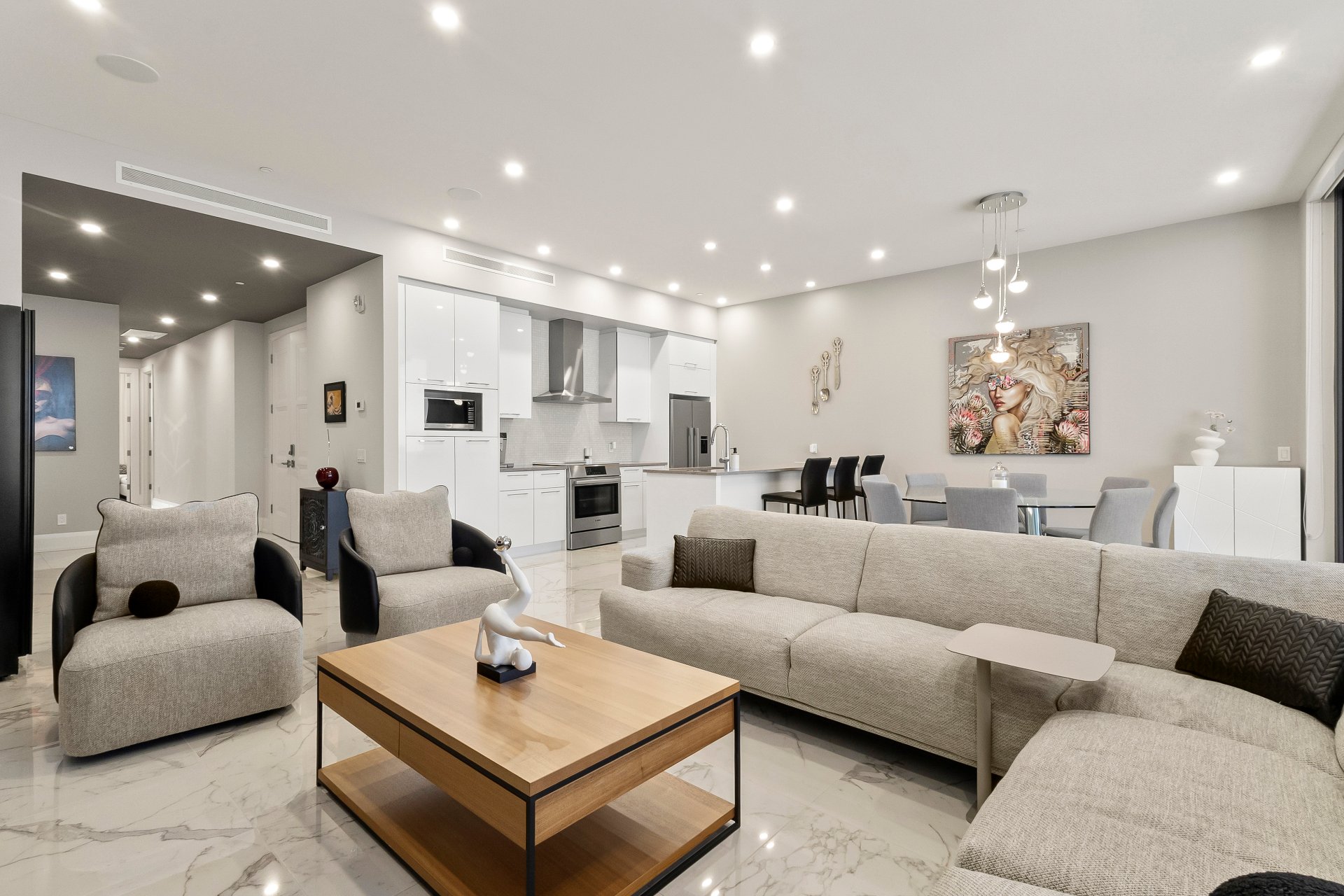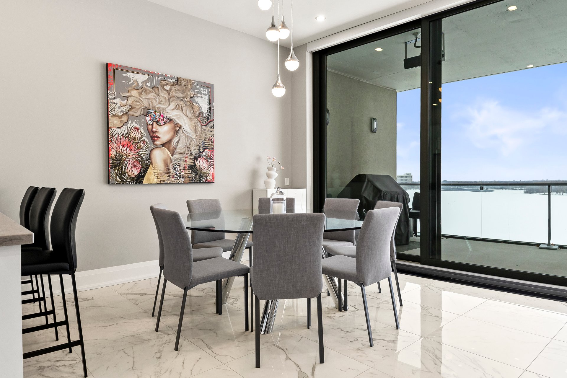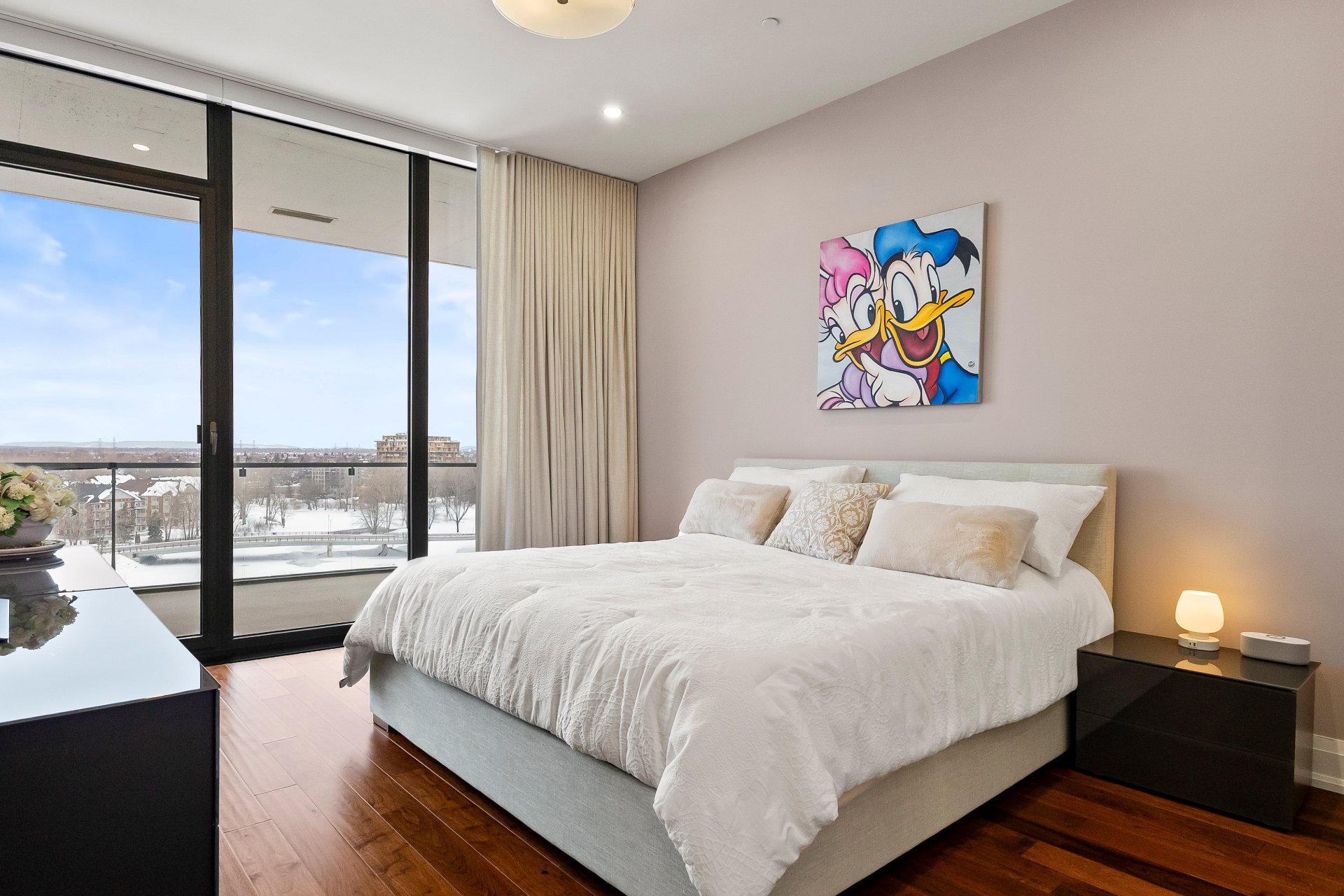 Set on prestigious Île Paton, this contemporary residence captivates with its striking architecture and refined finishes. Expansive open-concept living, oversized flooring, and abundant natural light create a remarkable sense of space. The high-end kitchen flows seamlessly into the sunlit living and dining areas, extending onto a generous balcony with sweeping views of the Rivière-des-Prairies. Two bedrooms with walk-in closets, two full bathrooms, two private balconies, and two indoor parking spaces complete this exceptional offering. Residents also enjoy access to an indoor pool, sauna, and virtual golf for a truly elevated lifestyle.