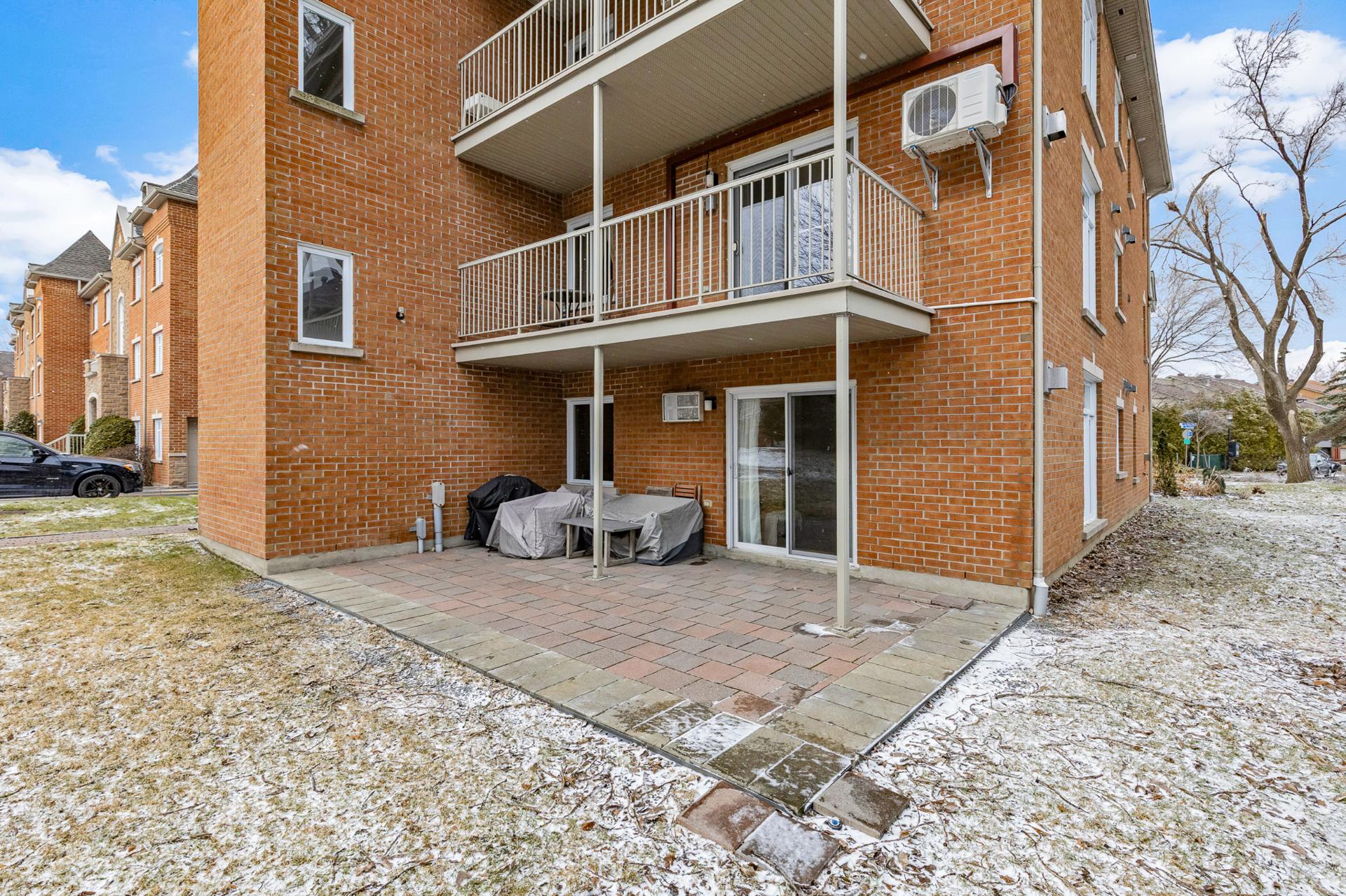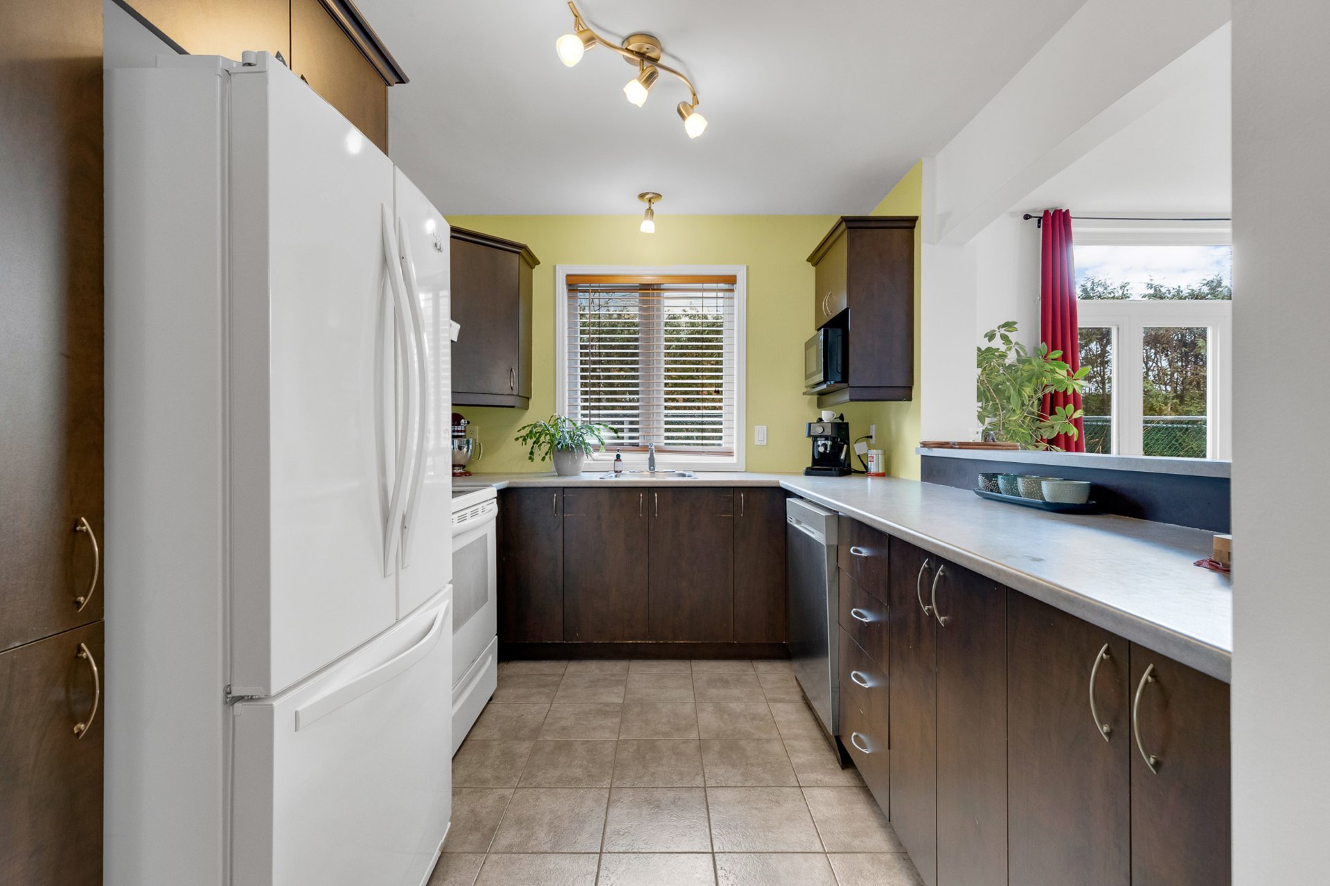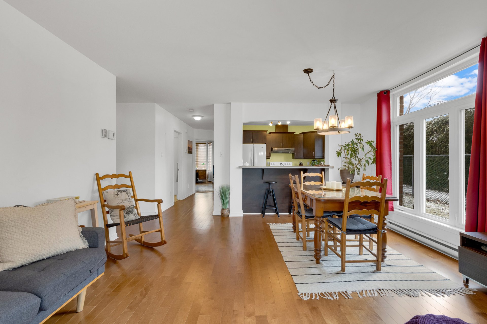 Beautiful 2-bedroom ground-floor condo offering 1,116 sq.ft. of living space in a well-managed divided co-ownership. Bright open-concept living area with abundant windows providing excellent natural light, a gas fireplace and patio door leading to a private terrace. Includes one indoor garage parking space. Access to a heated inground pool. Roof replaced in 2022. The condominium is compliant with Loi 16 requirements. Quiet residential area close to parks, bike paths and services, with quick access to Brossard and major highways.