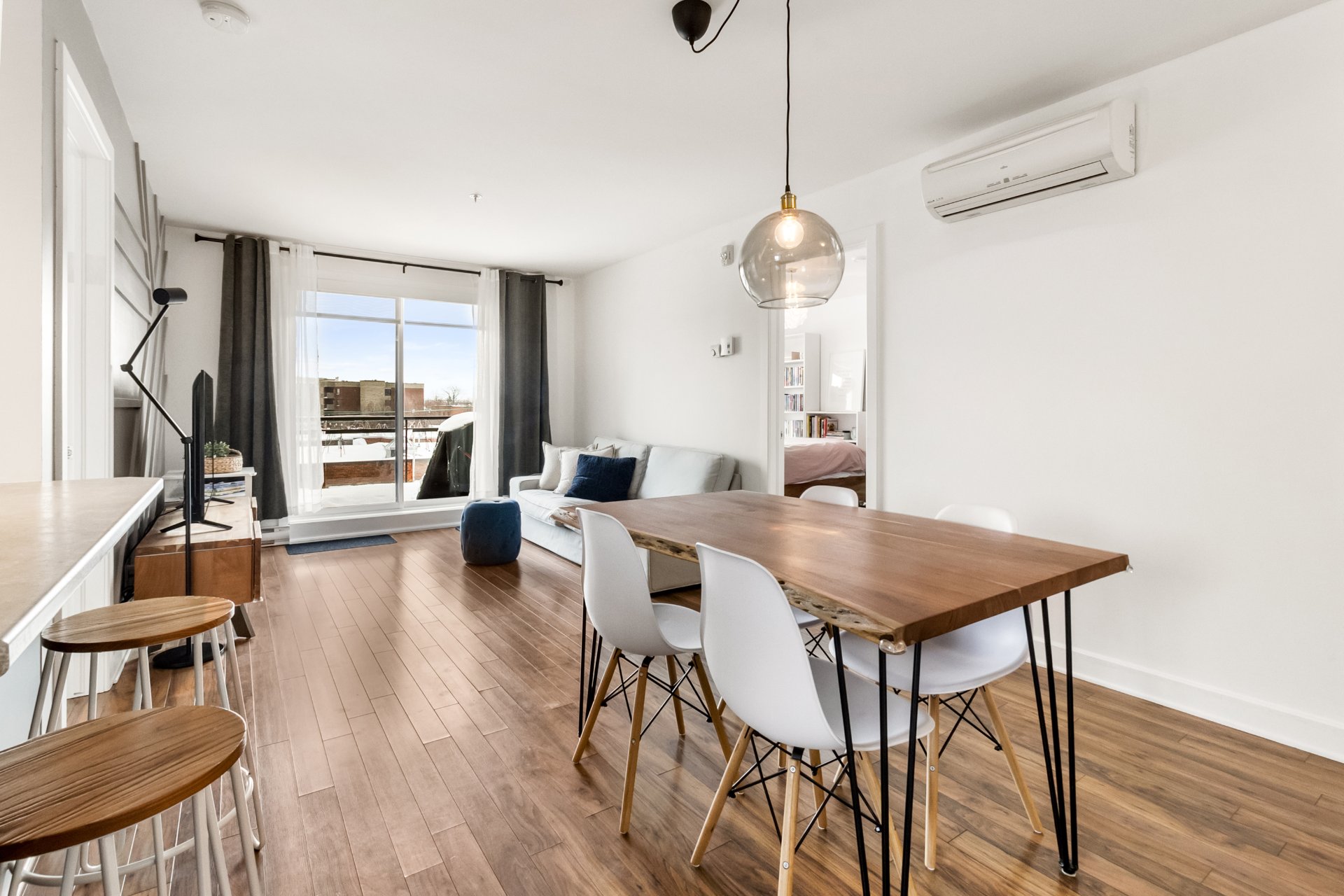 Located in Montréal's sought-after Sud-Ouest, this 5th-floor condo offers a well-designed layout combining comfort and functionality. The unit features 2 bedrooms, 1 full bathroom, and a bright living area opening onto a private balcony. One interior storage space and one outdoor parking space are included. Ideally situated near the Lachine Canal, parks, bike paths, shops, restaurants, public transit, and major highways, this property offers an excellent quality of life with quick access to downtown Montréal.