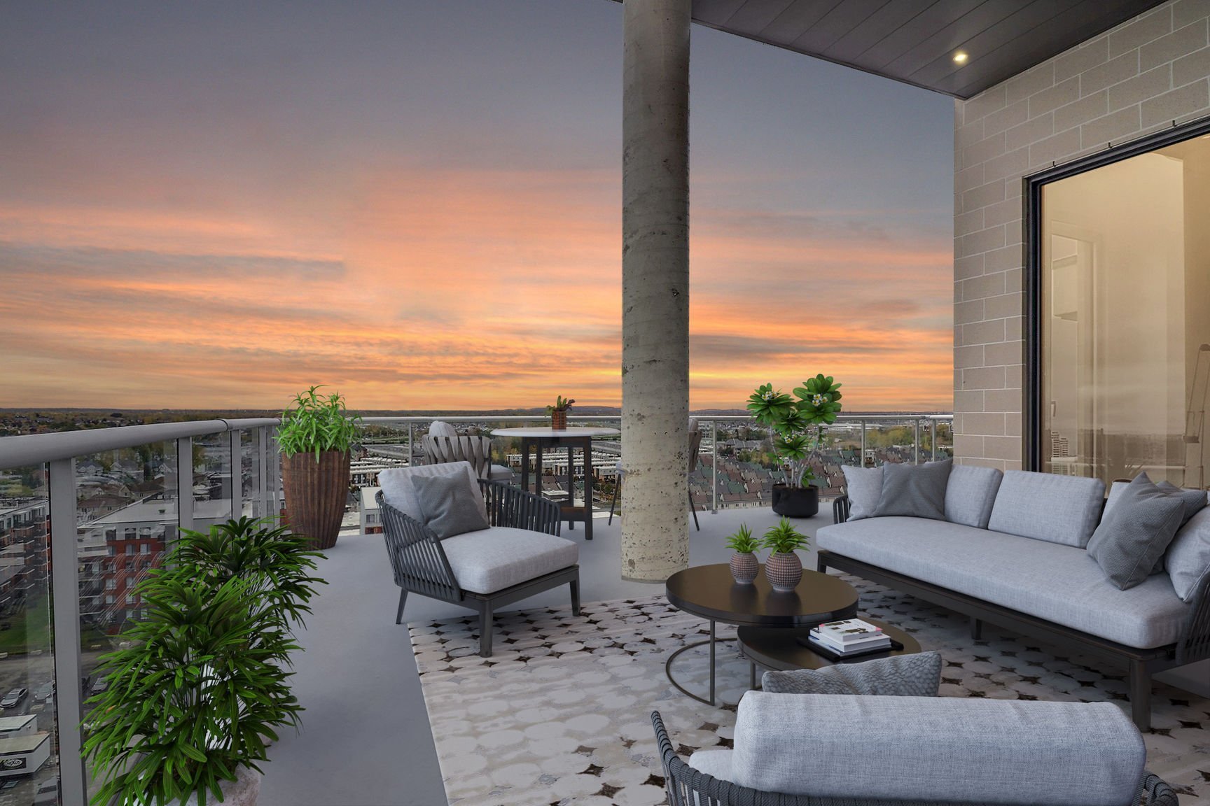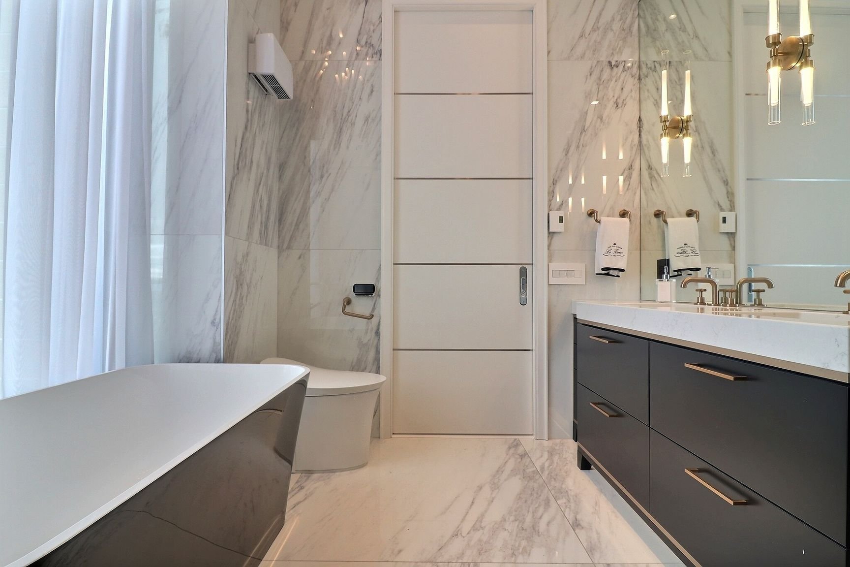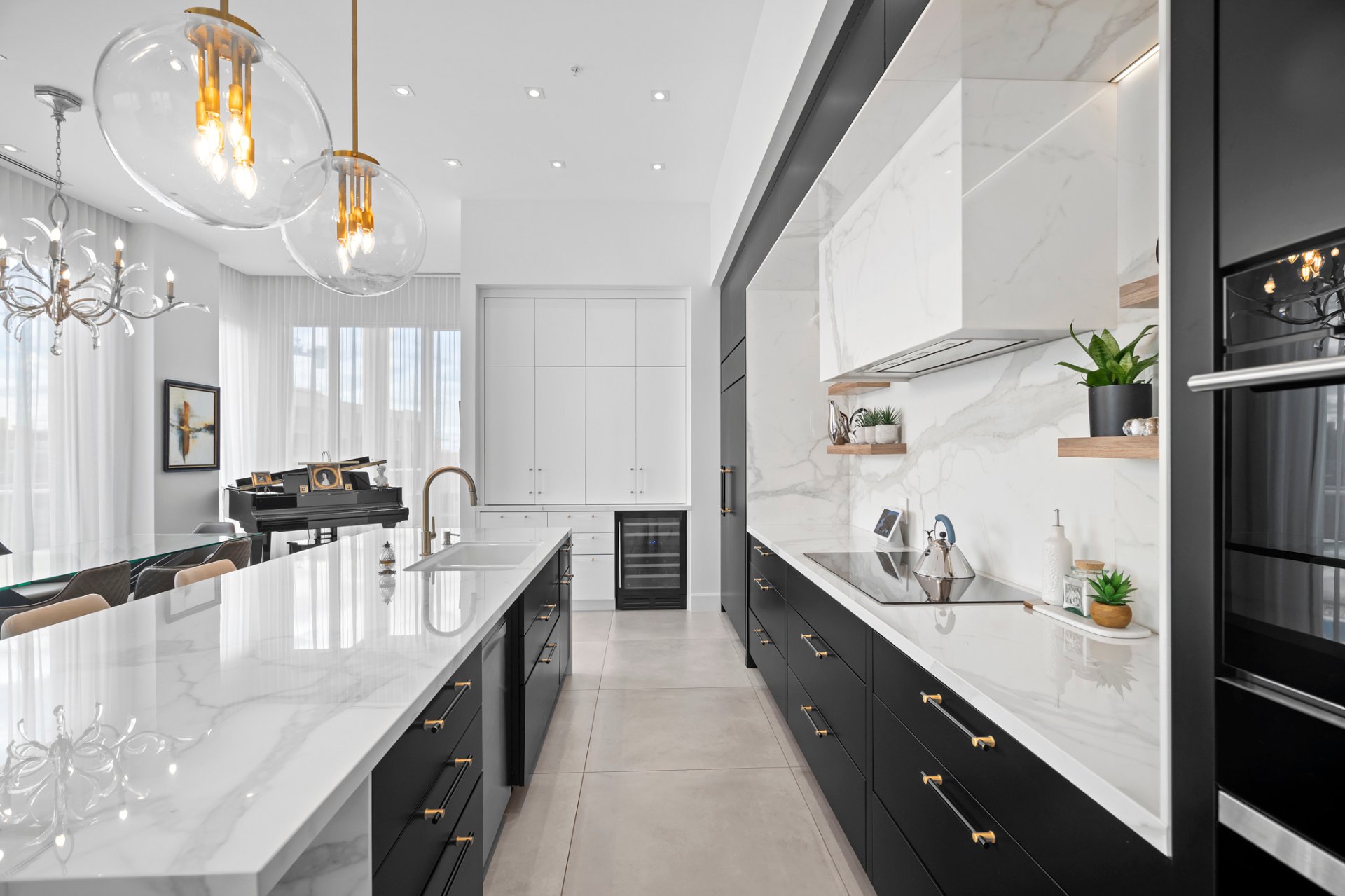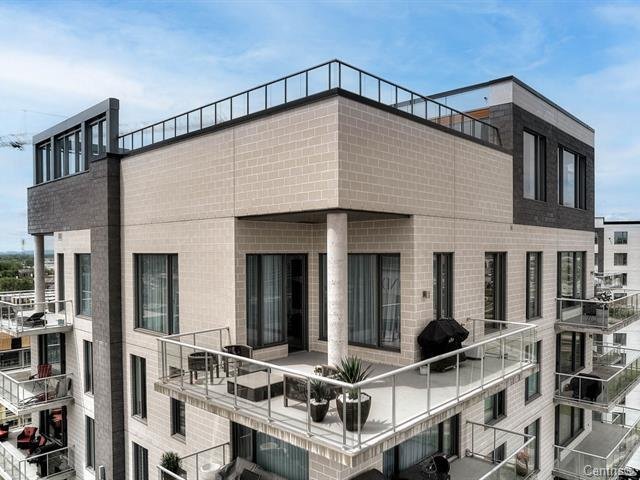 Sublime 2547 sq ft PENTHOUSE on one level with breathtaking views and 3 large outdoor terraces. The concept is unique with high-quality noble materials imported from Italy, 12-foot ceilings, a kitchen designed by a renowned artisan worthy of top magazines, curtains equipped with LED lights and electric blinds. You will be amazed by the 8-foot windows, 3 bedrooms, glassed-in office, and 3 bathrooms. This spacious penthouse is also suitable for a person with reduced mobility. It is very rare to see such luxurious common areas with 3 parking spaces in the garage and an outdoor parking space.